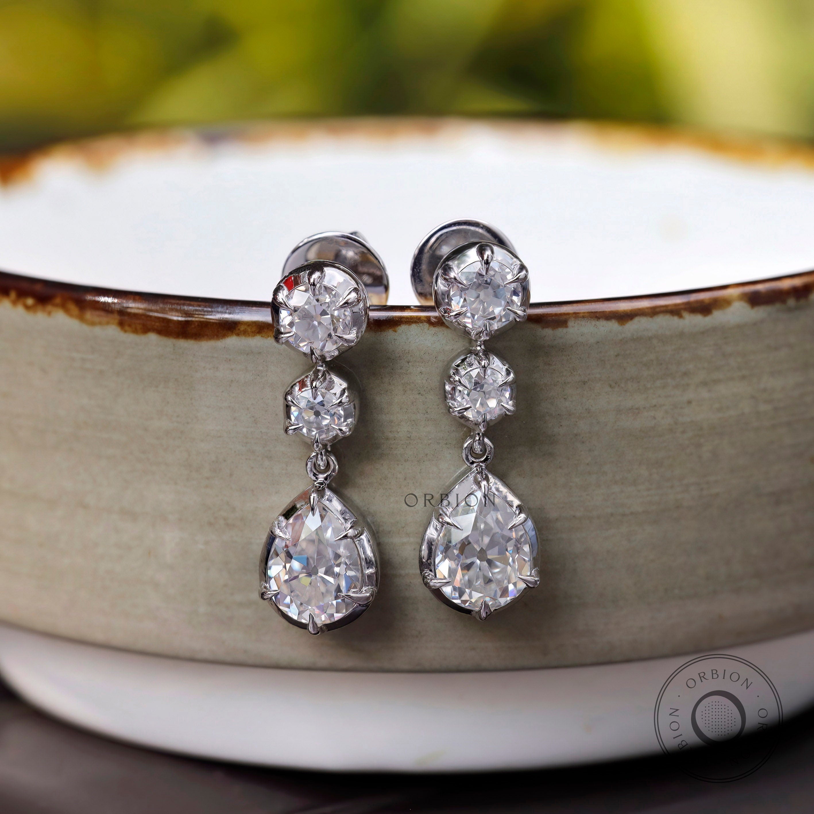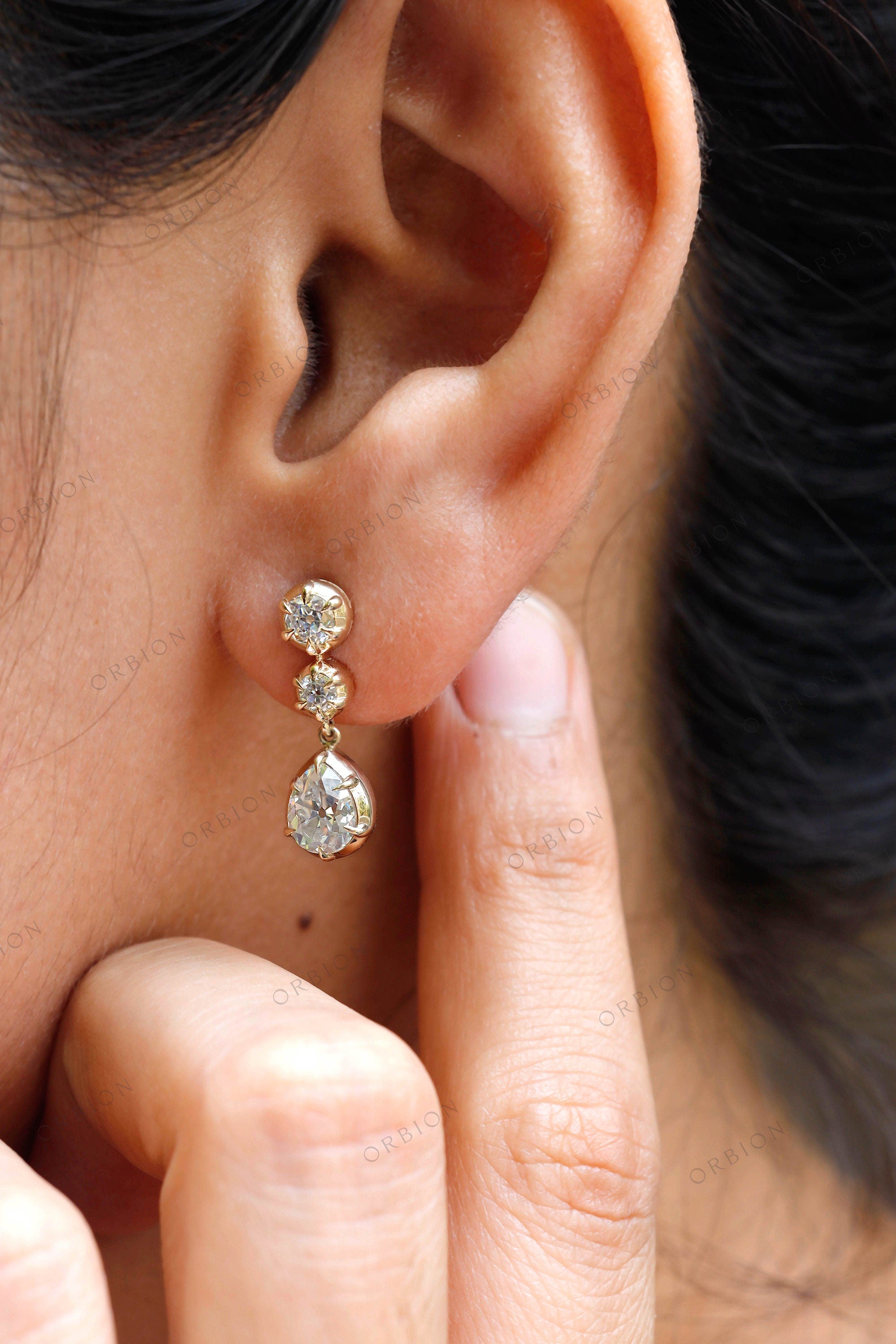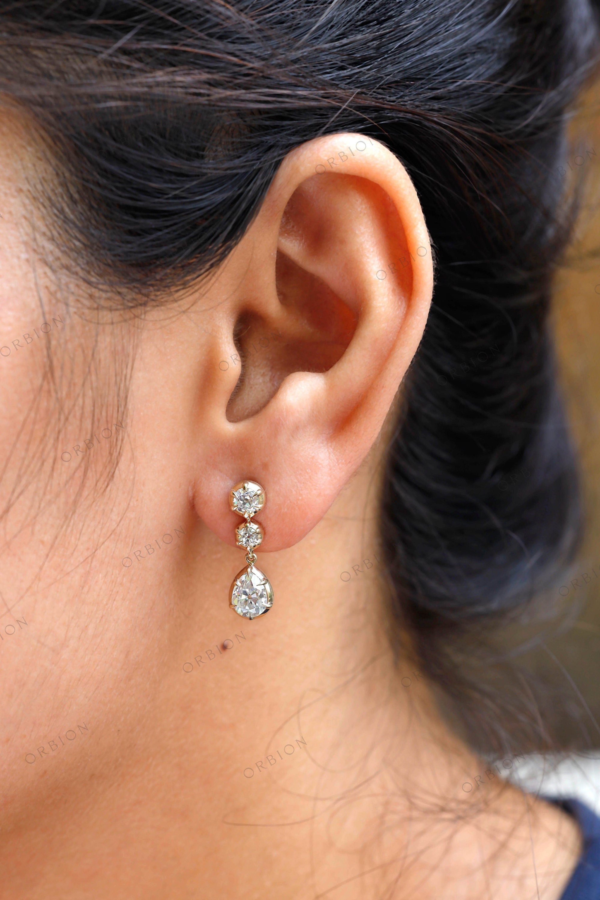 Old Mine Cut Pear Shaped Dangle Earrings, 14K Solid Gold Dangle Drop Earrings, OEC Round Statement Earrings, Unique Teardrop Earrings, Vintage Earrings, Handmade Earrings, Anniversary Gift For Women, Bridal Earrings, Moissanite Earrings, Bridal Earrings, OMC Moissanite