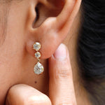 Old Mine Cut Pear Shaped Dangle Earrings, 14K Solid Gold Dangle Drop Earrings, OEC Round Statement Earrings, Unique Teardrop Earrings