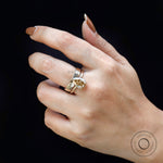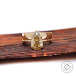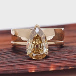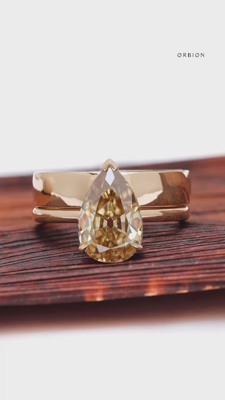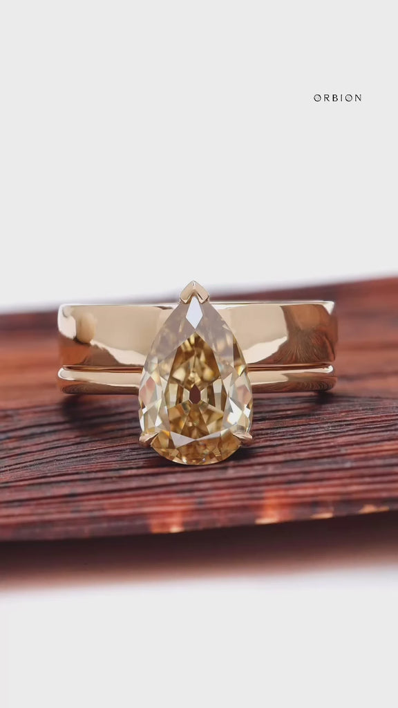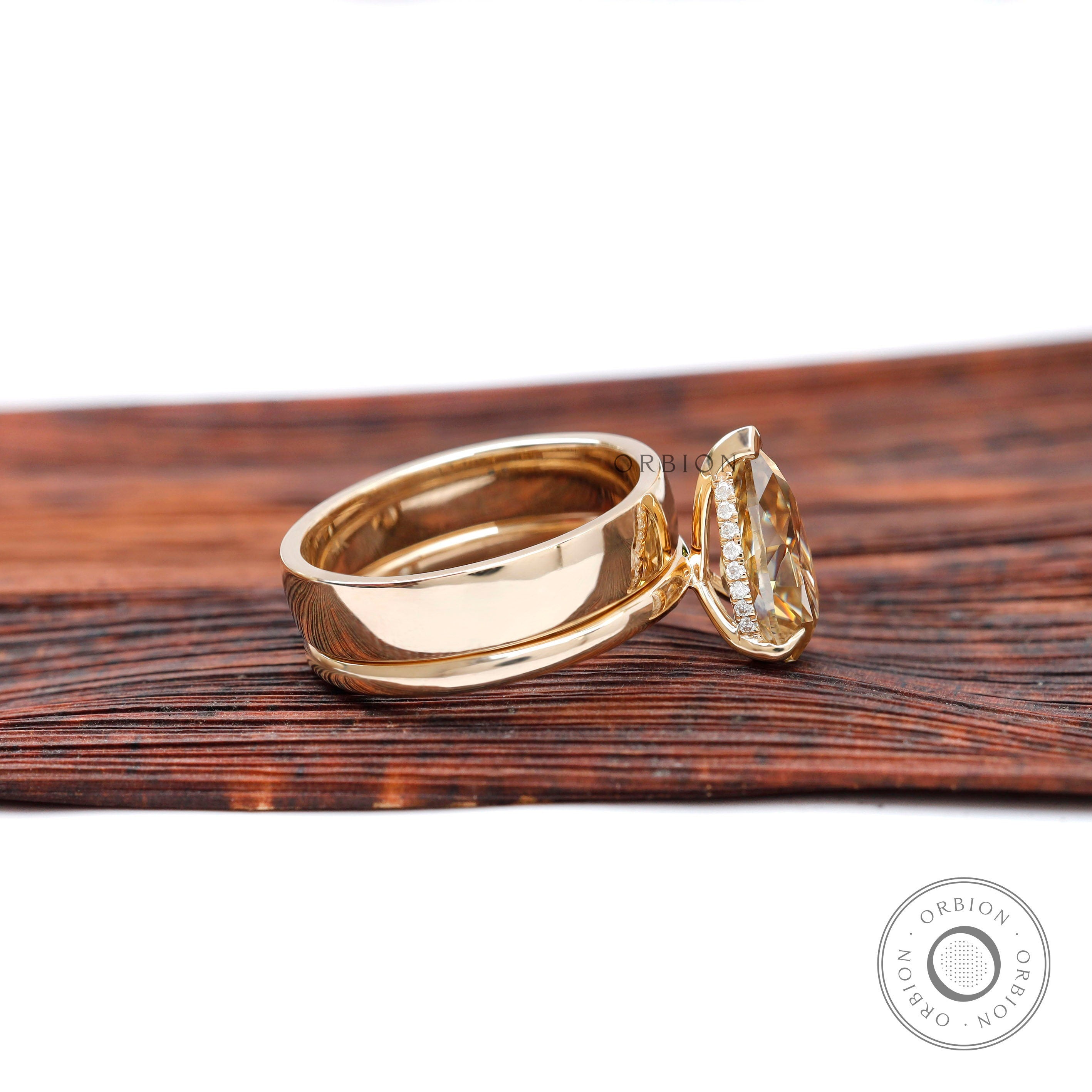 Old Mine Cut Pear Champagne Moissanite Ring Set, Wide Band Rings For Women, Solitaire Pear Champagne Ring With Wide Gold Band, Color Moissanite Ring, Gold Ring Ret, Bridal Jewelry Set, Engagement Ring Set, Wedding Ring set, Moissanite Ring Set, Stacking Ring Set, Yellow Gold Ring Set, Plain Gold Wedding Band, Pear Champagne Moissanite, Old Cut Ring For Women, Wide Gold Band