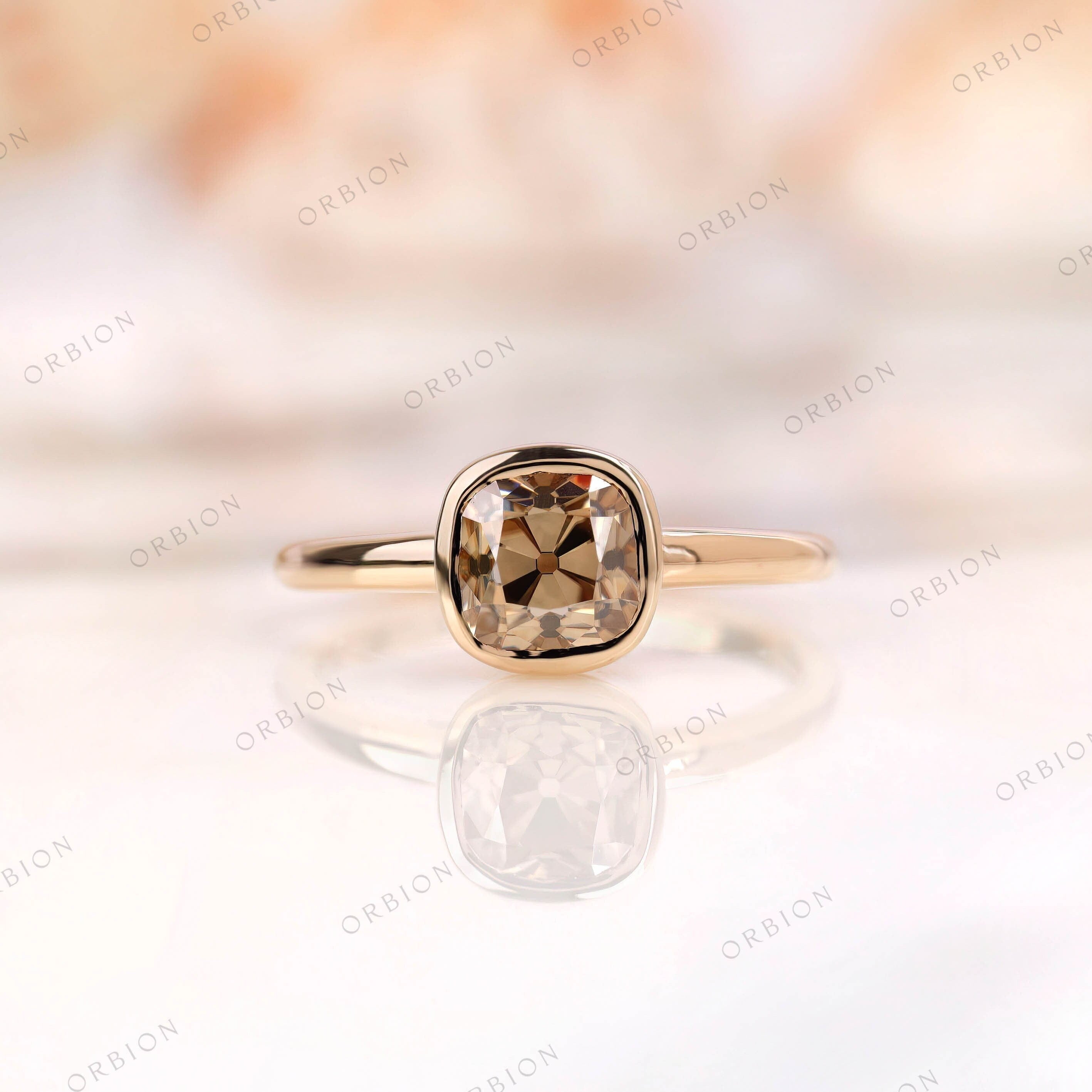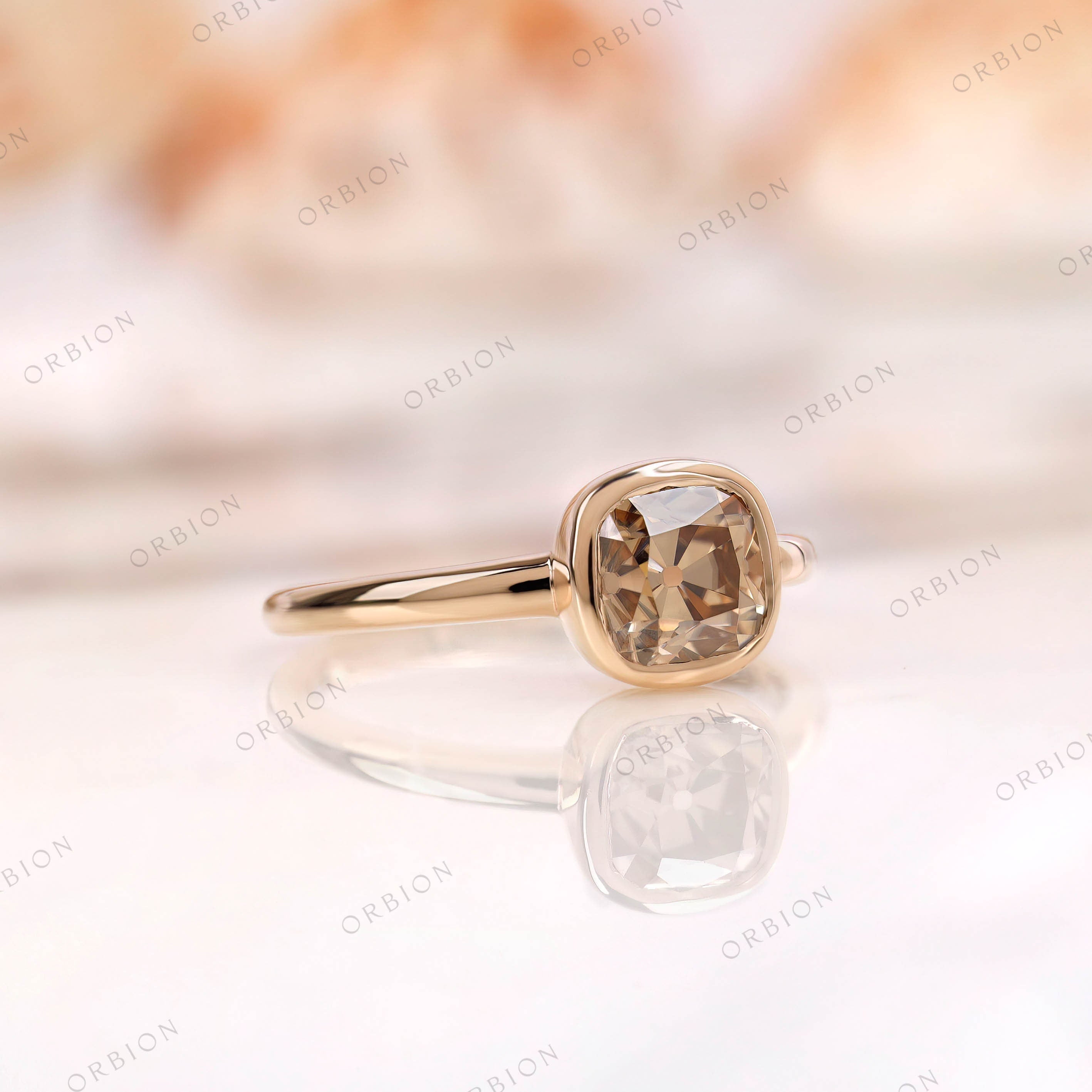 Bezel Set Champagne Engagement Ring, Dark Champagne Moissanite Ring, 10k/14k/18k Solid Gold Ring, Old Mine Cut Champagne Wedding Ring, Champagne Cushion Cut Ring, Cushion Champagne Ring, Unique Wedding Ring, Antique Style Ring, Anniversary Gift, Gift for Her, Promise Ring, Proposal Ring, Moissanite Ring For Women, Solitaire Ring, Cushion Cut Ring, Closed Basket Ring.Β