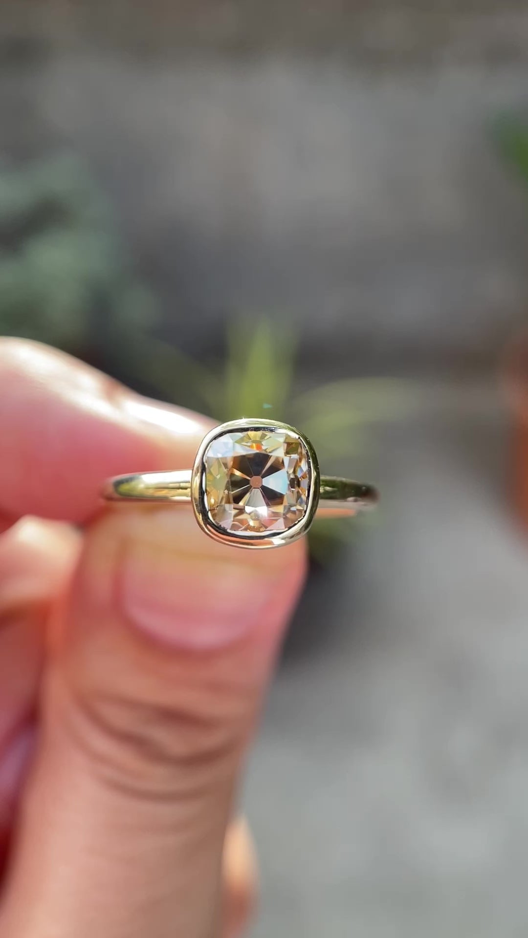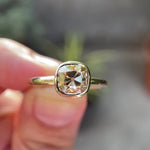 OMC Cushion Champagne Moissanite Ring, Champagne Engagement Ring, Champagne Bezel Ring, Closed Basket Ring, Old Cut Yellow Gold Rings