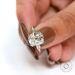 OMC Elongated Cushion Cut Moissanite Engagement Ring, 14K White Gold Three Stone Ring, Anniversary Gift, Unique Wedding Ring
