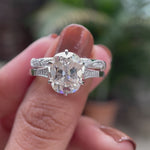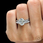 OMC Elongated Cushion Moissanite Ring Set, Tulip Set Engagement Ring With Stacking Band, White Gold Rings, Art Deco Ring Set, Bridal Rings
