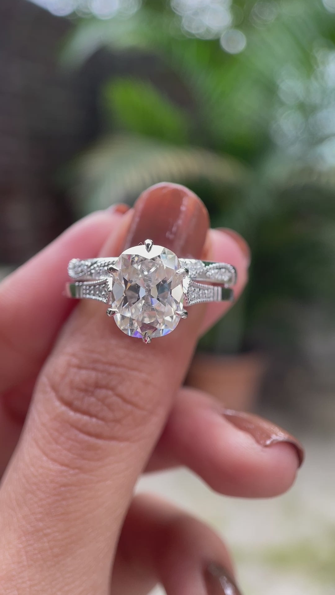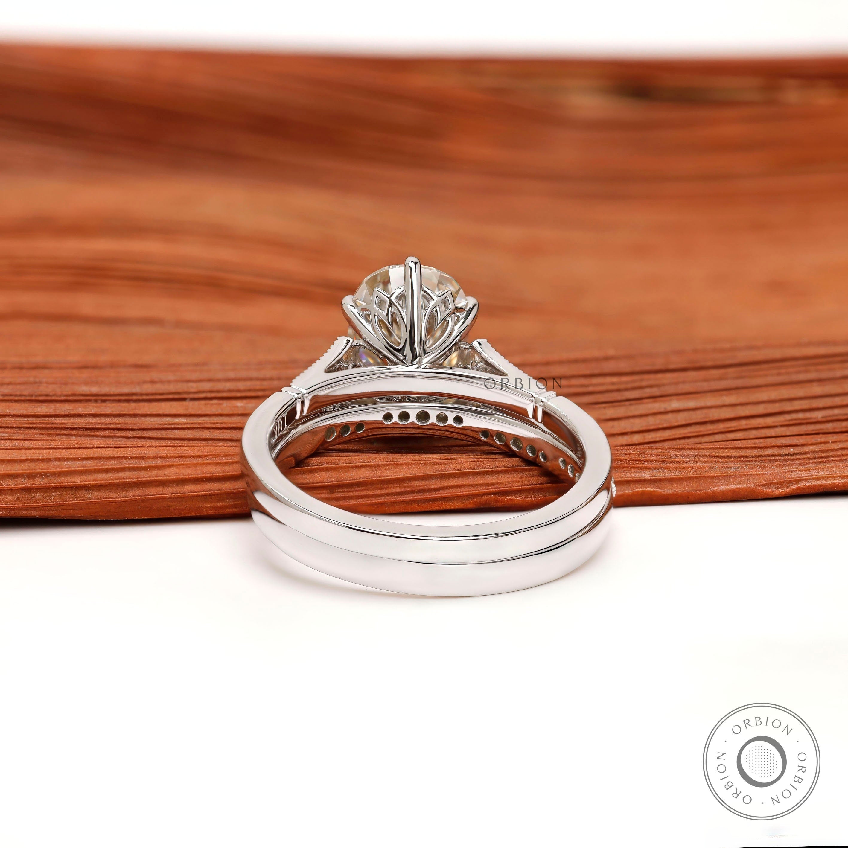 OMC Elongated Cushion Moissanite Ring Set, Vintage Style Wedding Ring Set, Unique Claw Prong Ring Set, Promise Ring Set, Art Deco Ring Set, Unique Engagement Ring Set, Solid Gold Ring Set, Antique Style Ring Set, 10k/14k/18k White Gold Ring Set, Handmade Jewelry, Tulip Set Ring, Milgrain Gold Ring, Cathedral Shank Ring