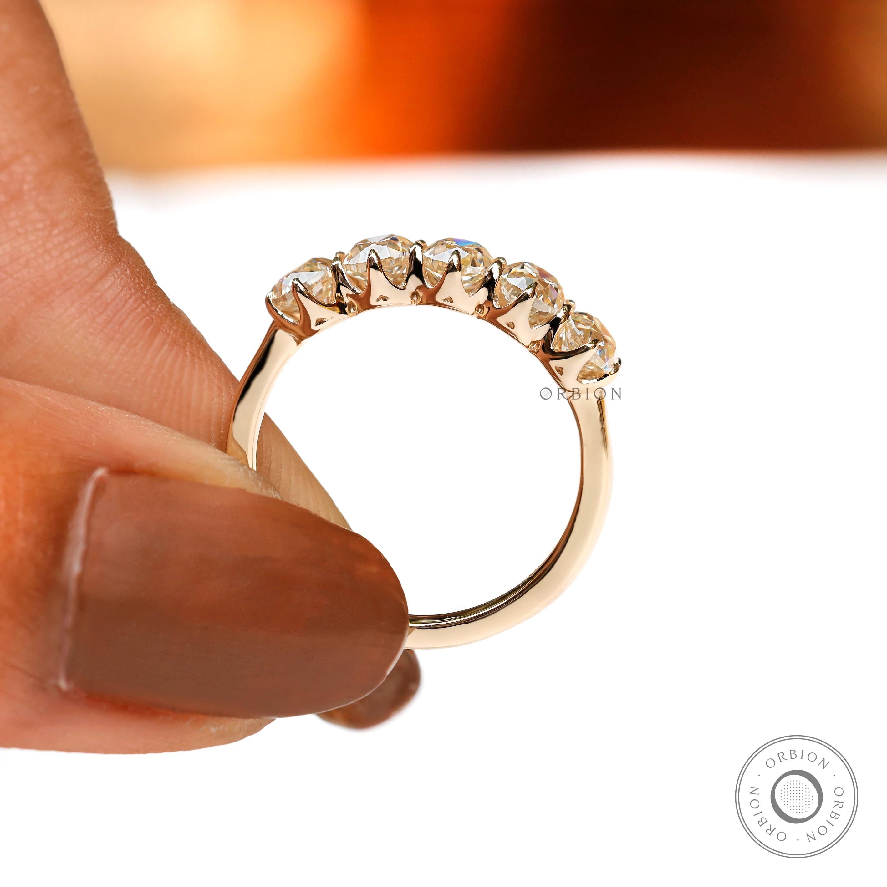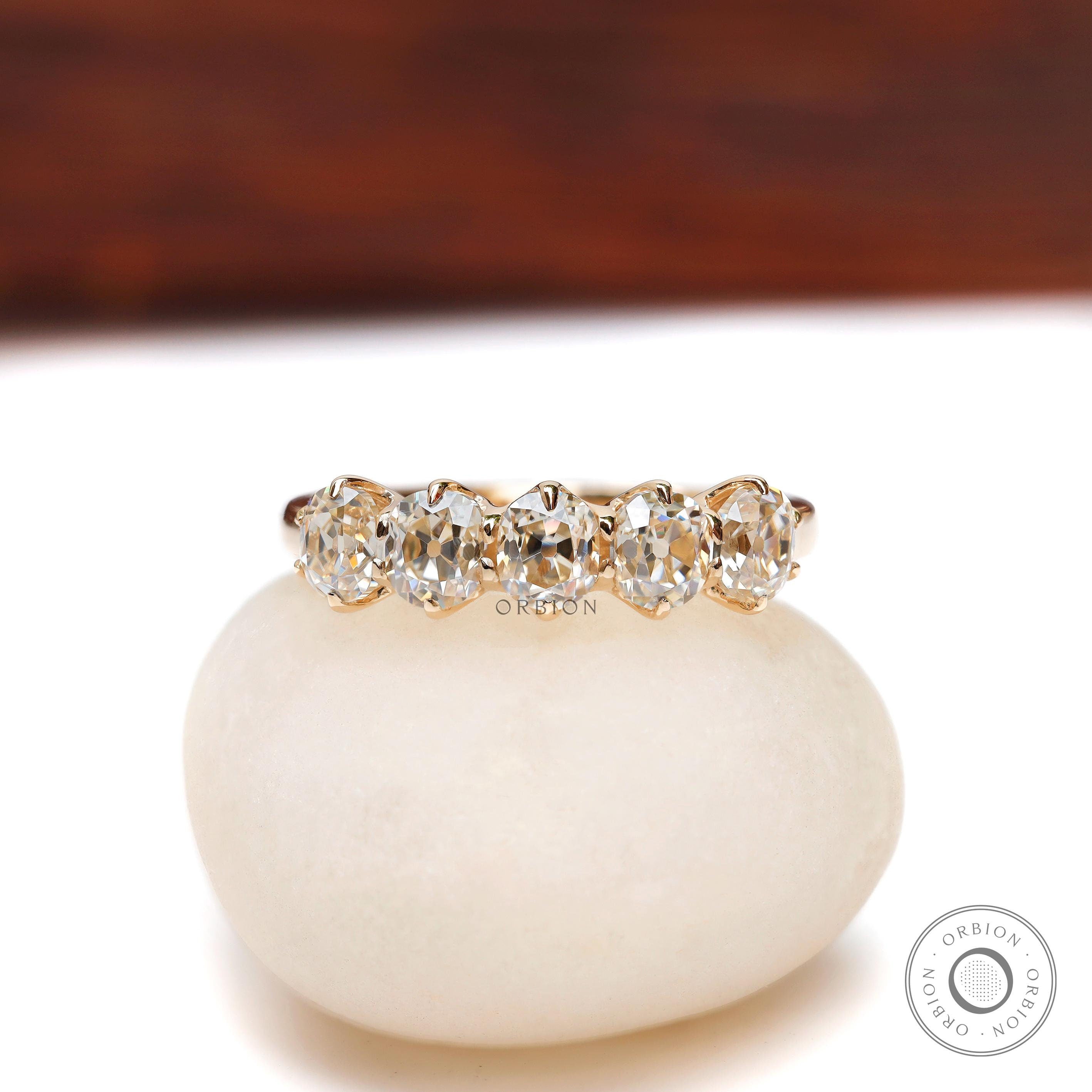 Five Stone Moissanite Band Old Mine Cut Unique Cushion Cut Wedding Band Women 5 Stone Antique Ring Vintage Wedding Band 14k Yellow Gold