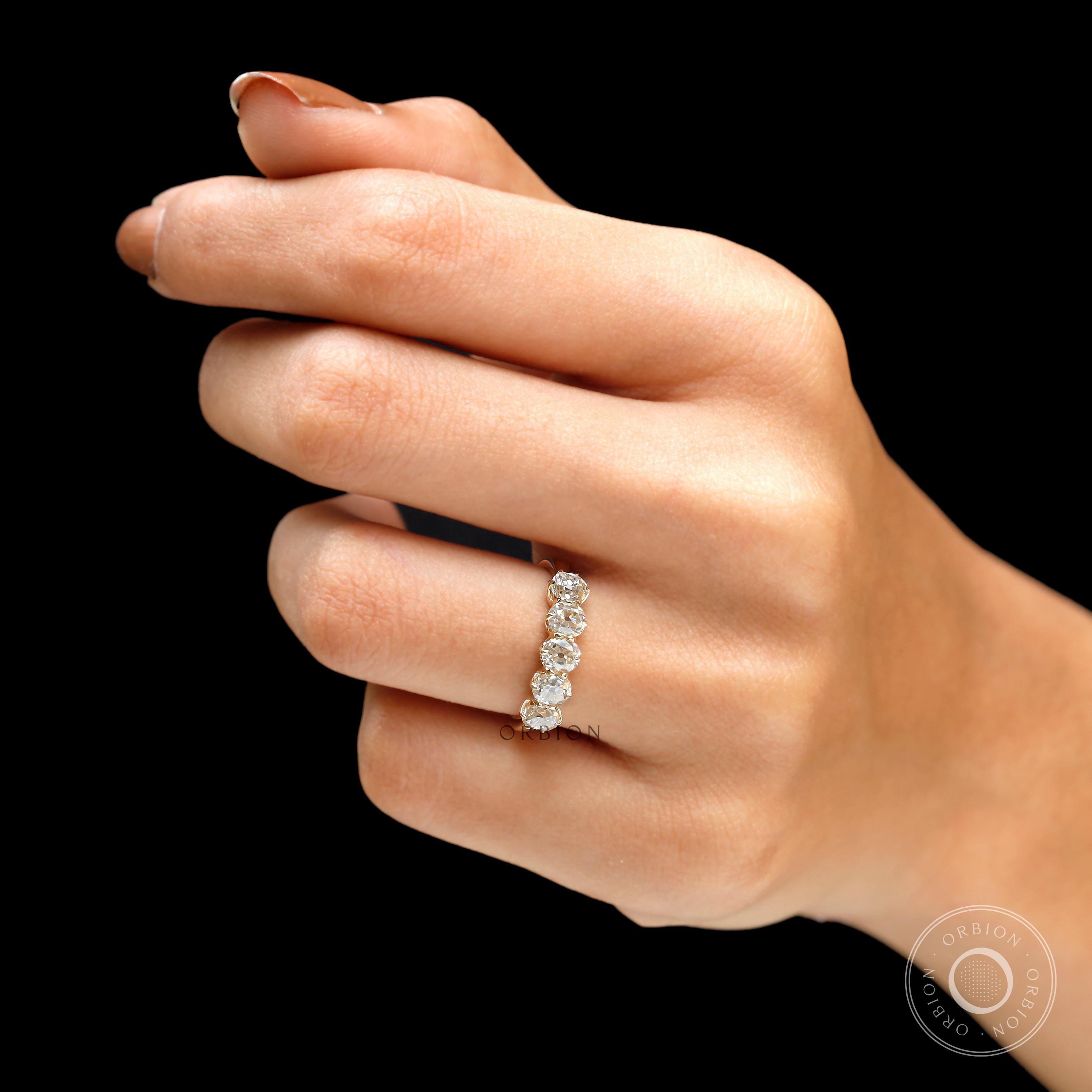 Old Mine Cut Elongated Cushion Moissanite Wedding Band, Five Stone Band, Claw Prong Set Band, GHI Color Moissanite Band, 5 Stone Engagement Ring, Old Mine Cut Antique Ring, Old Cut Moissanite Women Band, Antique Anniversary Band, Stacking Band For Her, Vintage Moissanite Ring, Stackable Ring For Women, Antique Jewelry, Vintage Jewelry, Handmade Jewelry.