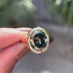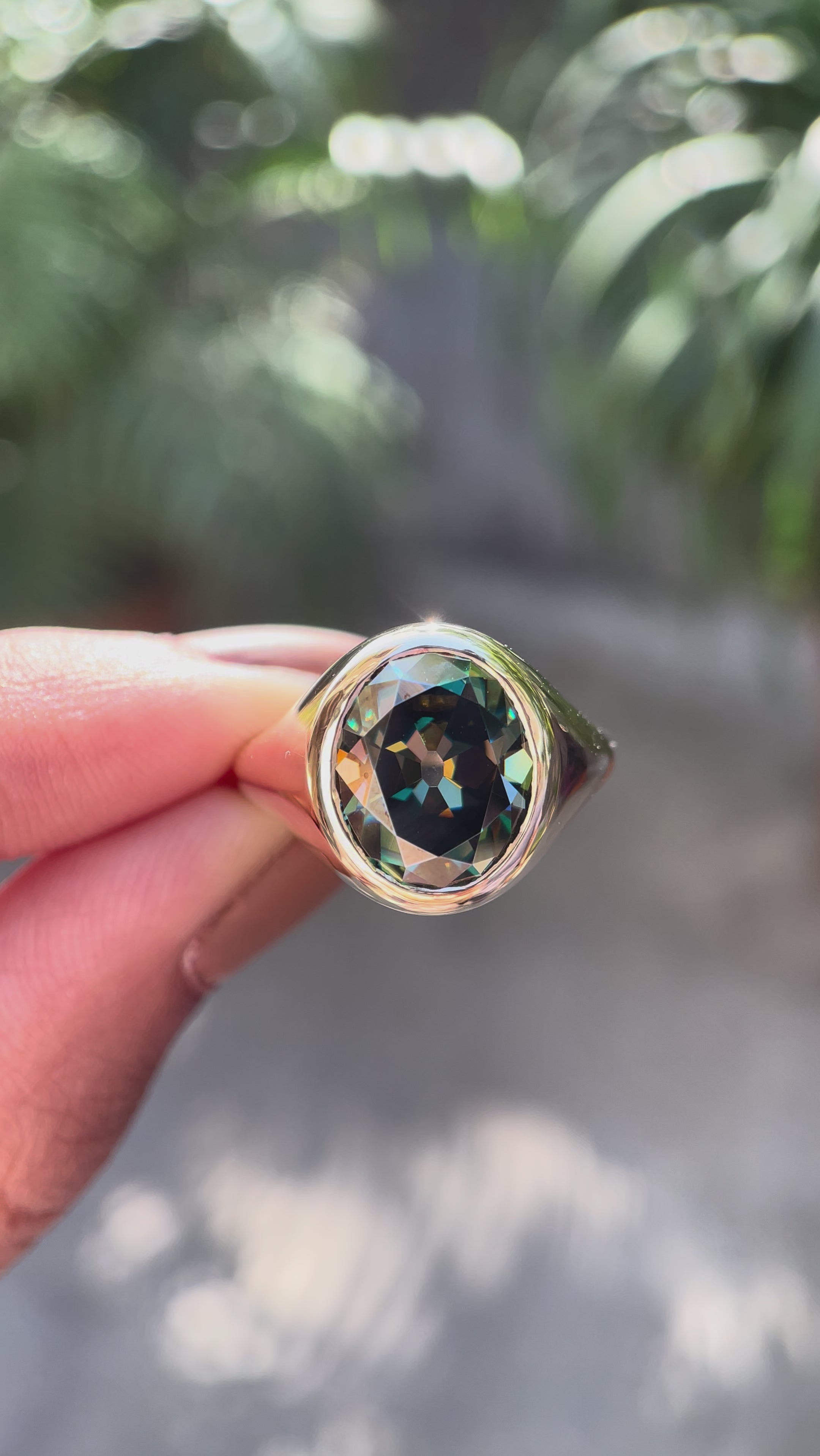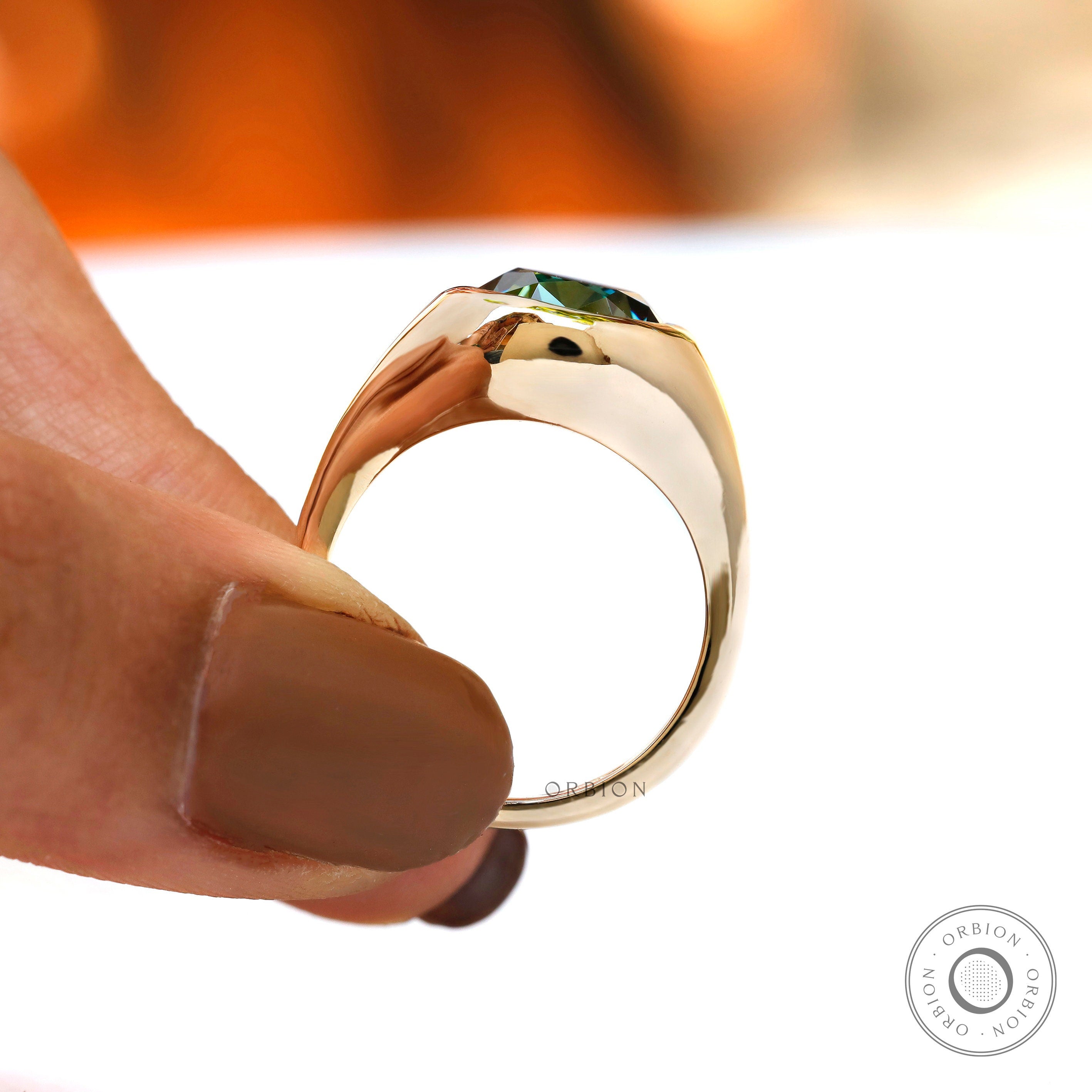 Old Mine Cut Oval Blue Green Moissanite Ring, 10k/14k/18k Solid Yellow Gold Signet Ring, Oval Teal Moissanite Ring, Unique Promise Ring For Women, Vintage Statement Ring, Signet Ring For Men & Women, Bezel Set Ring, Solitaire Oval Ring, OMC Moissanite Ring, Vintage Wedding Ring, Antique Signet Ring, Blue Green Oval Moissanite Ring, Unisex Ring, Fancy Color Stone Ring