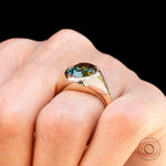 OMC Oval Blue Green Moissanite Signet Ring, 14K Yellow Gold Chunky Ring, Unique Statement Ring For Women, Color Stone Engagement Rings