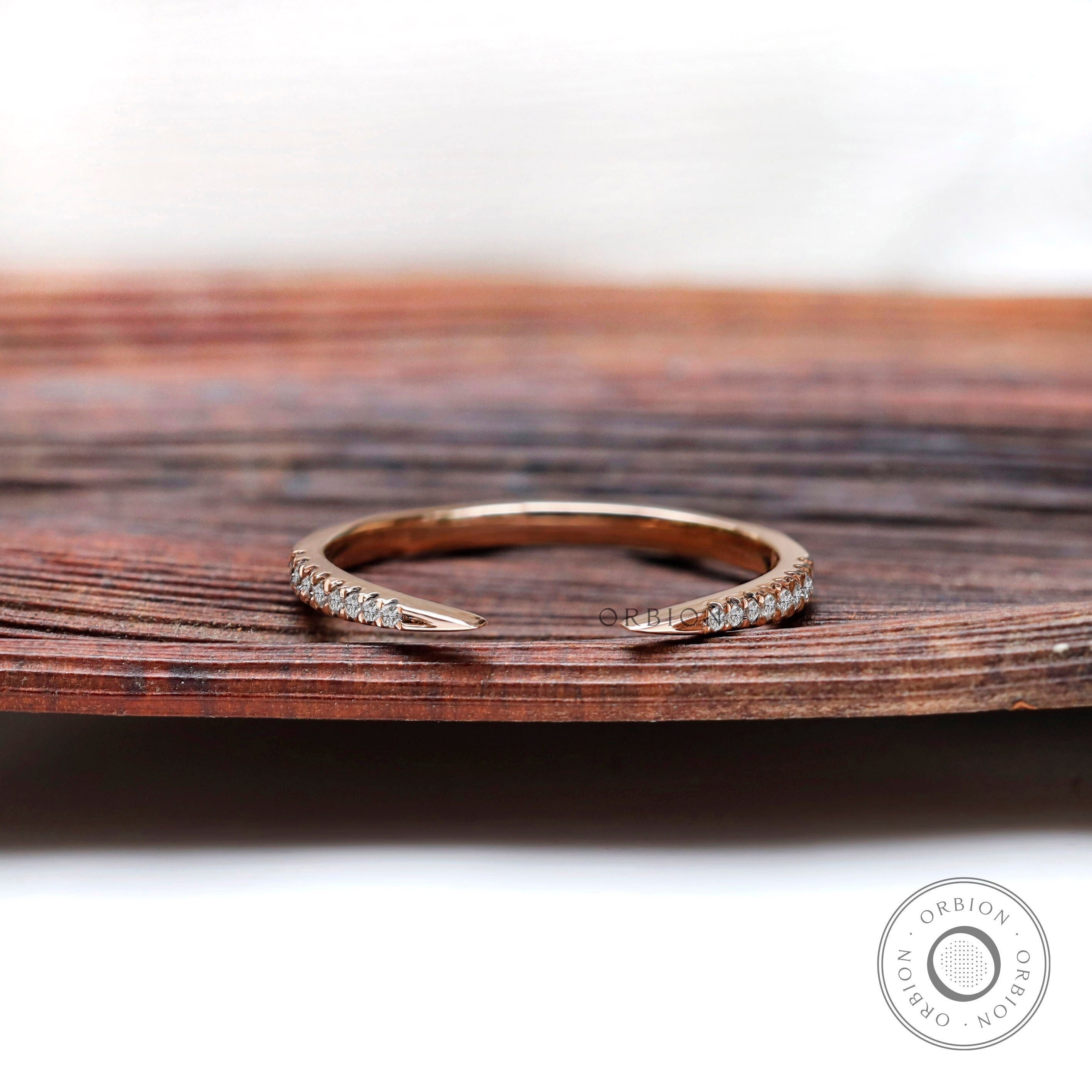 Open Pave Wedding Band, Moissanite Open Spacer Ring, Delicate Open Cuff Ring, Open Claw Ring, Gap Rings, Half Eternity Band, 14k Gold Band