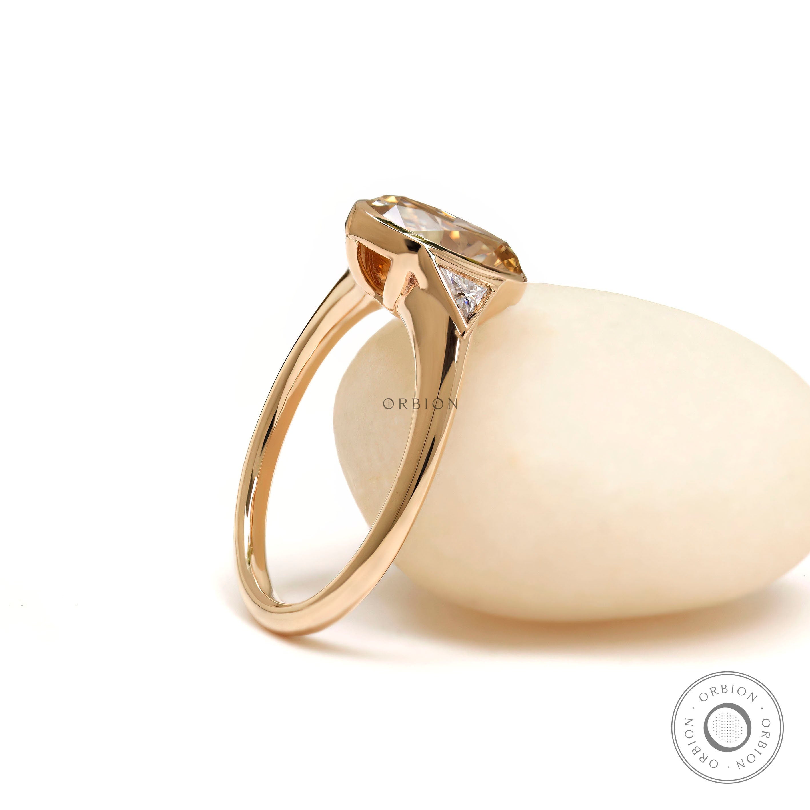 Oval Champagne Engagement Ring, Fancy Color Moissanite Ring, Solid Gold Ring, 3 Stone Wedding Ring, 3 Stone Bezel Ring, Trilogy Engagement Ring, Trilogy Oval Ring, Oval Bezel Ring, Bezel Set Ring, Champagne Diamond Ring, Unique 3 Stone Ring Designs, Brilliant Cut Oval Champagne Moissanite Ring, Anniversary Gift, Gift For Her, Promise Ring, Proposal Ring, Bridal Ring For Women.