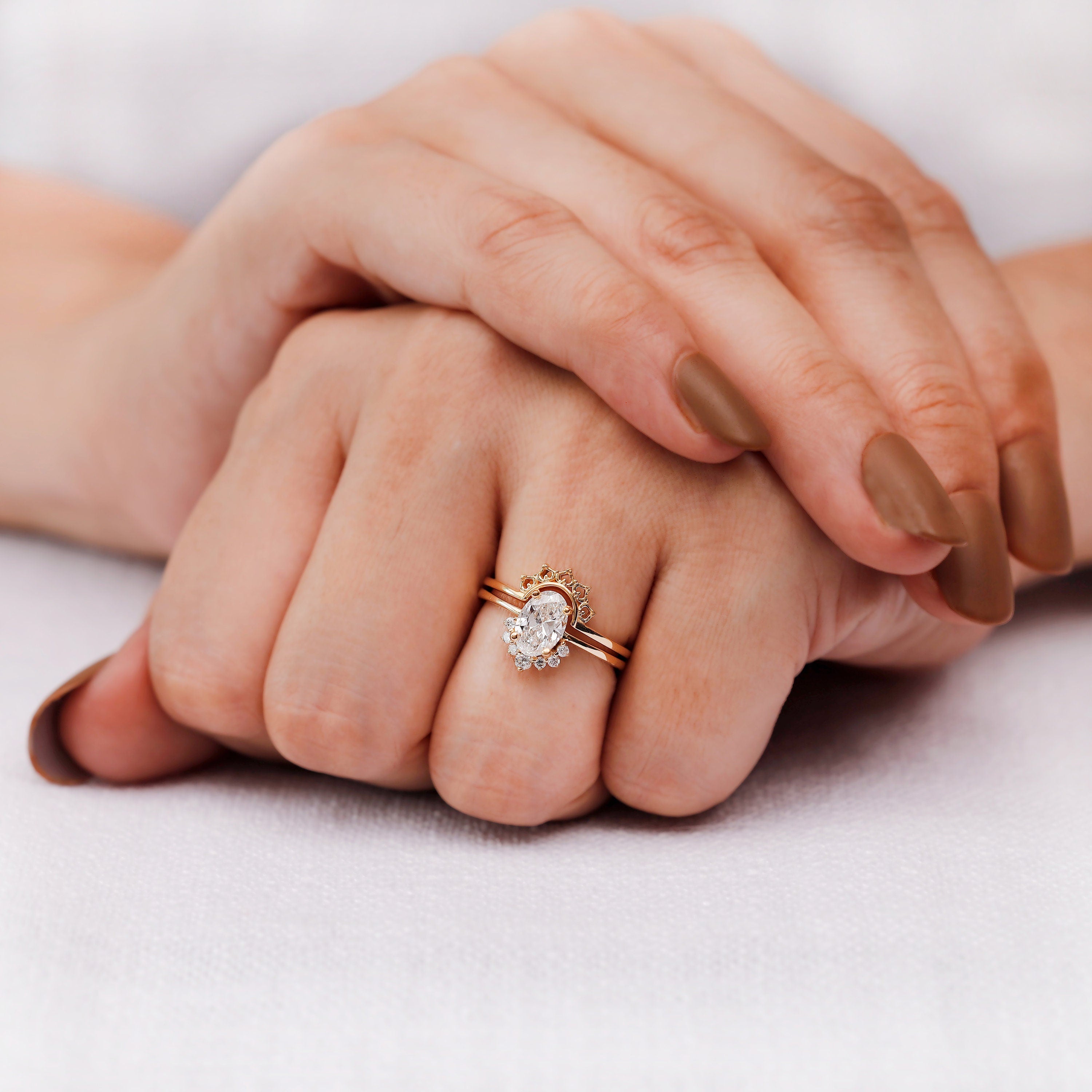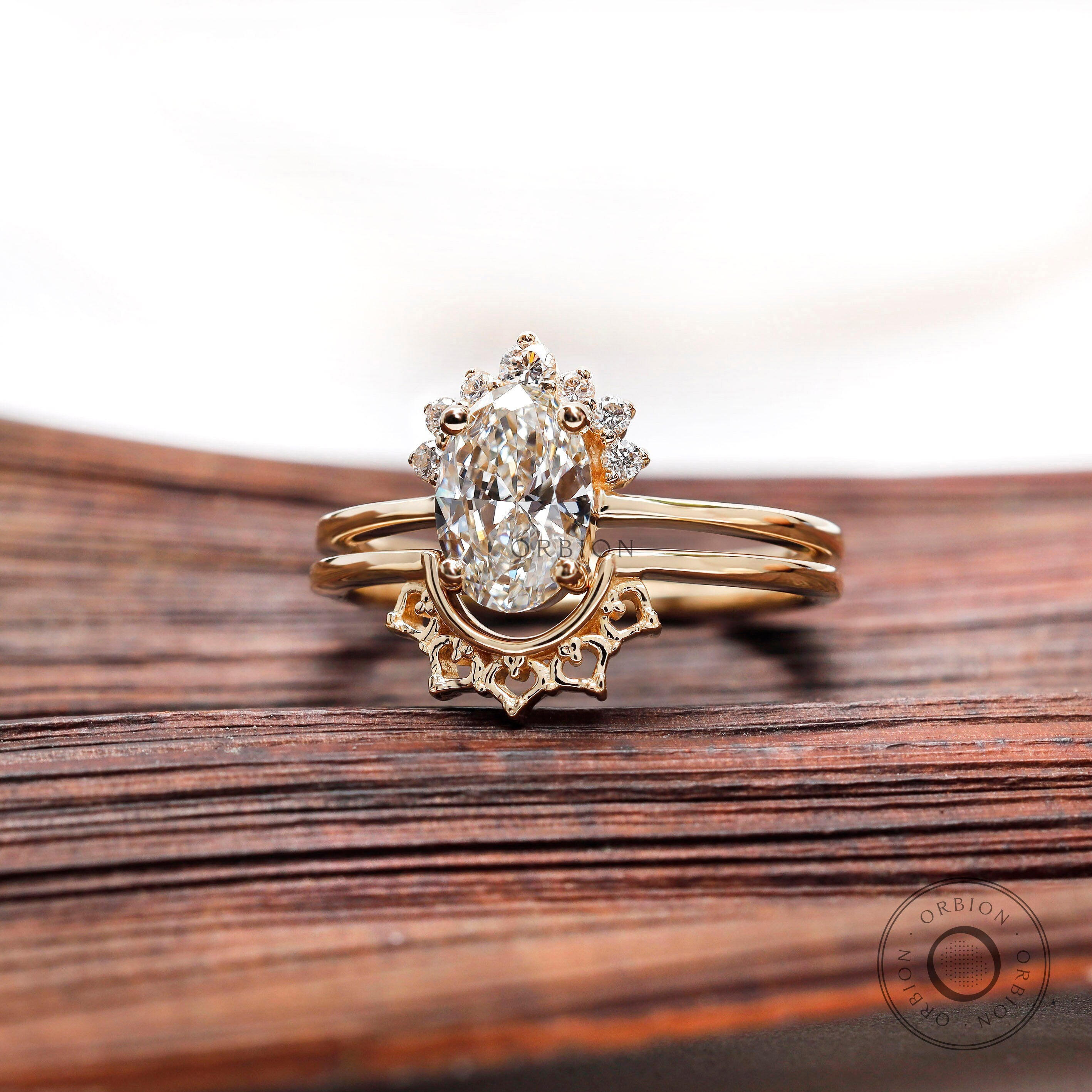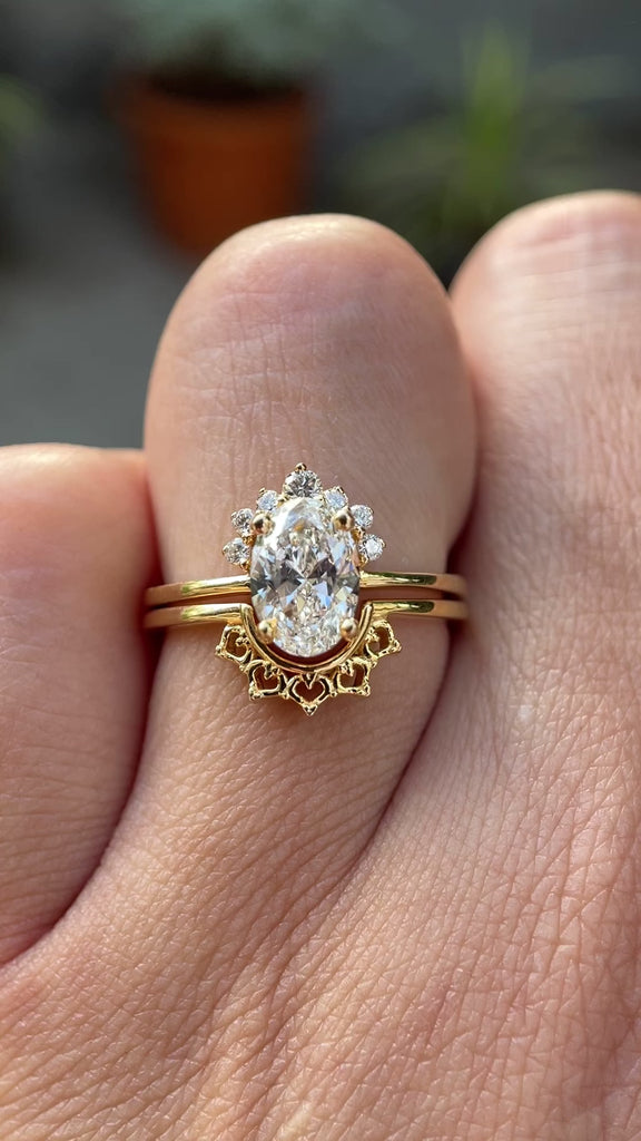 Oval engagement ring with Wedding Band, 1 carat lab grown diamond, Hidden Halo Ring, Matching Half Eternity Band, Diamond Bridal Set for Her, lab grown diamond Ring, lab grown diamond Bridal Set, oval engagement ring, Conflict Free Diamond, Made with Love by Orbion