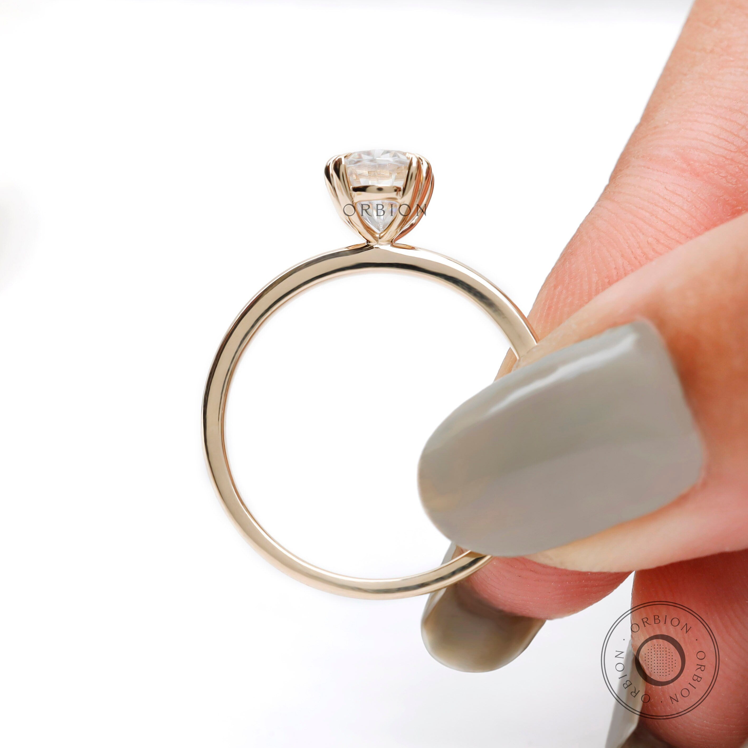 1.5 Ct Solitaire Oval Cut Moissanite Engagement Ring 14k Yellow Gold Single Stone Double Claw Prong Martini Basket Set Promise Ring