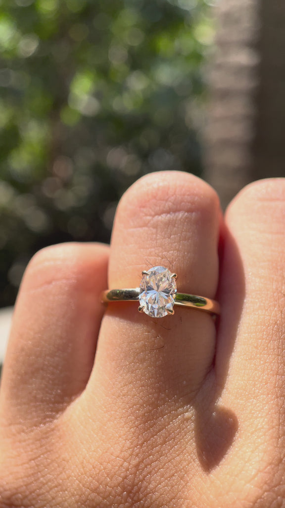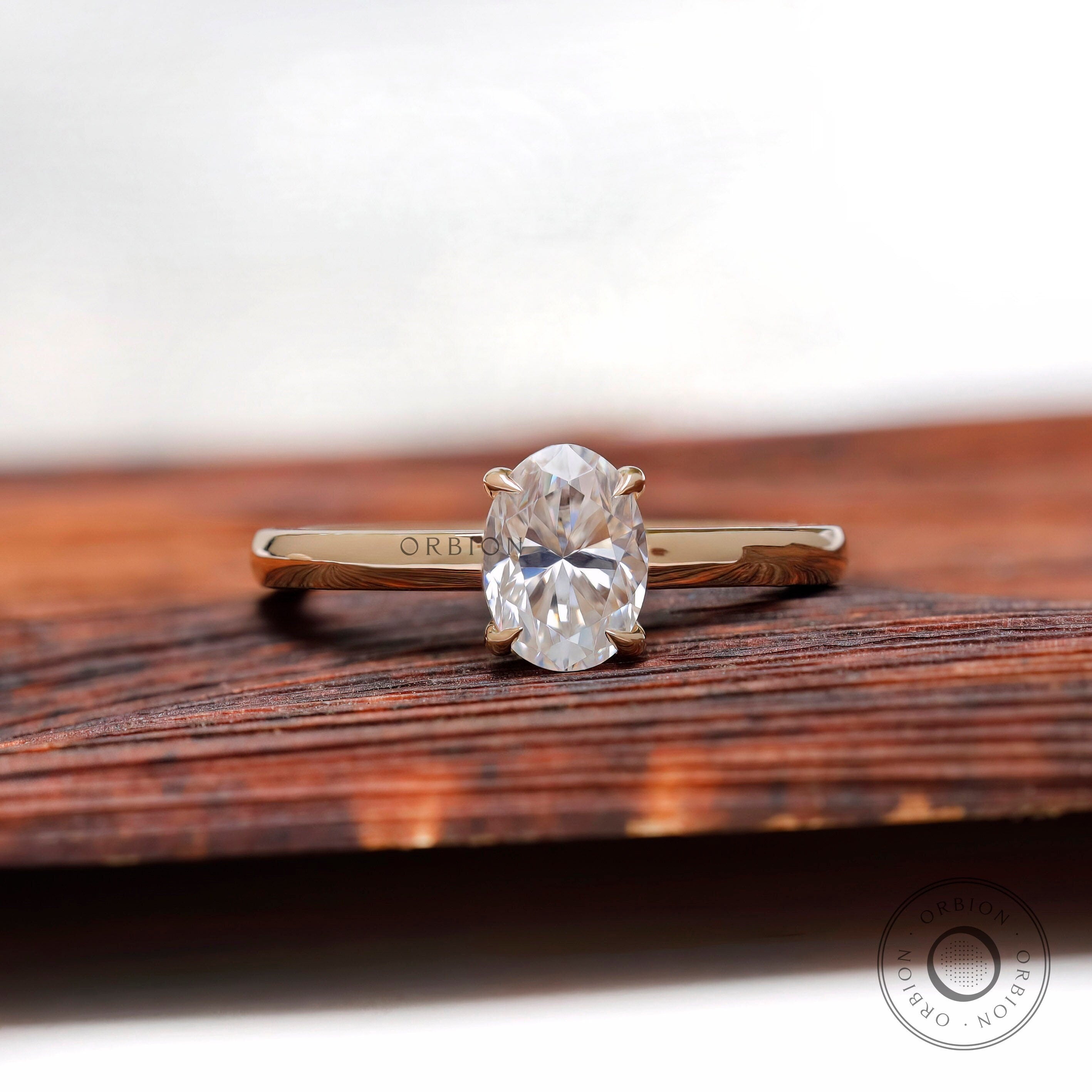 Oval Moissanite Engagement Ring in Yellow Gold Simple Rings For Women Promise Ring Oval 4 Prong Ring Dainty Oval Martini Setting Ring