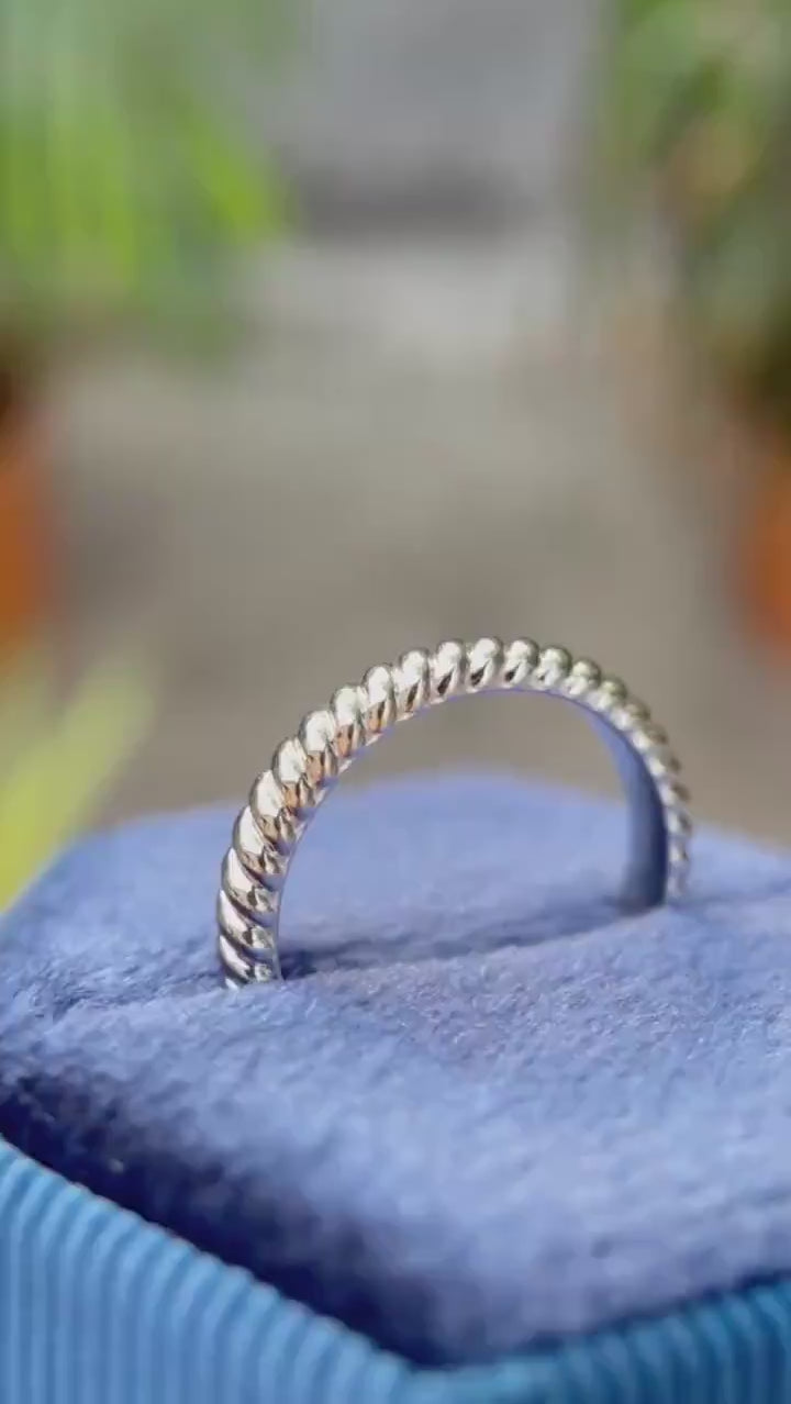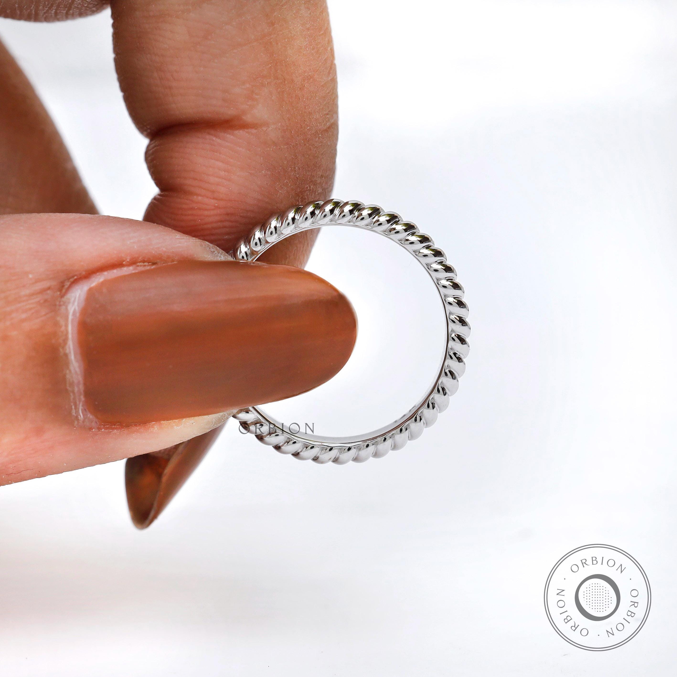 Rope Band Ring, White Gold Rope Ring, Full Eternity Band, Stacking Band, Stacking Gift Ring, Plain Gold Band, Unique Band Ring, 3 MM Band