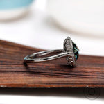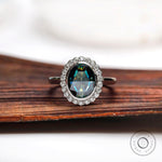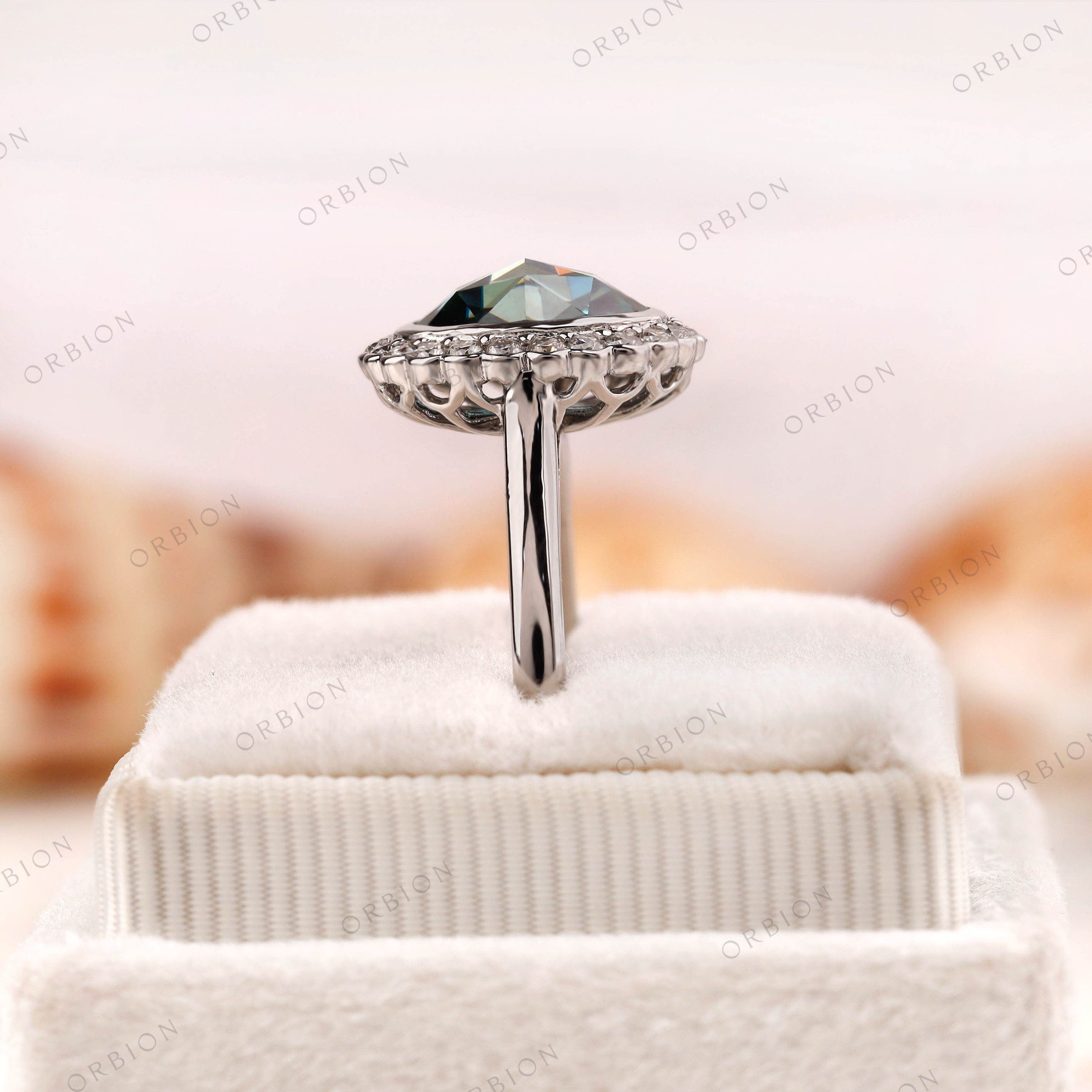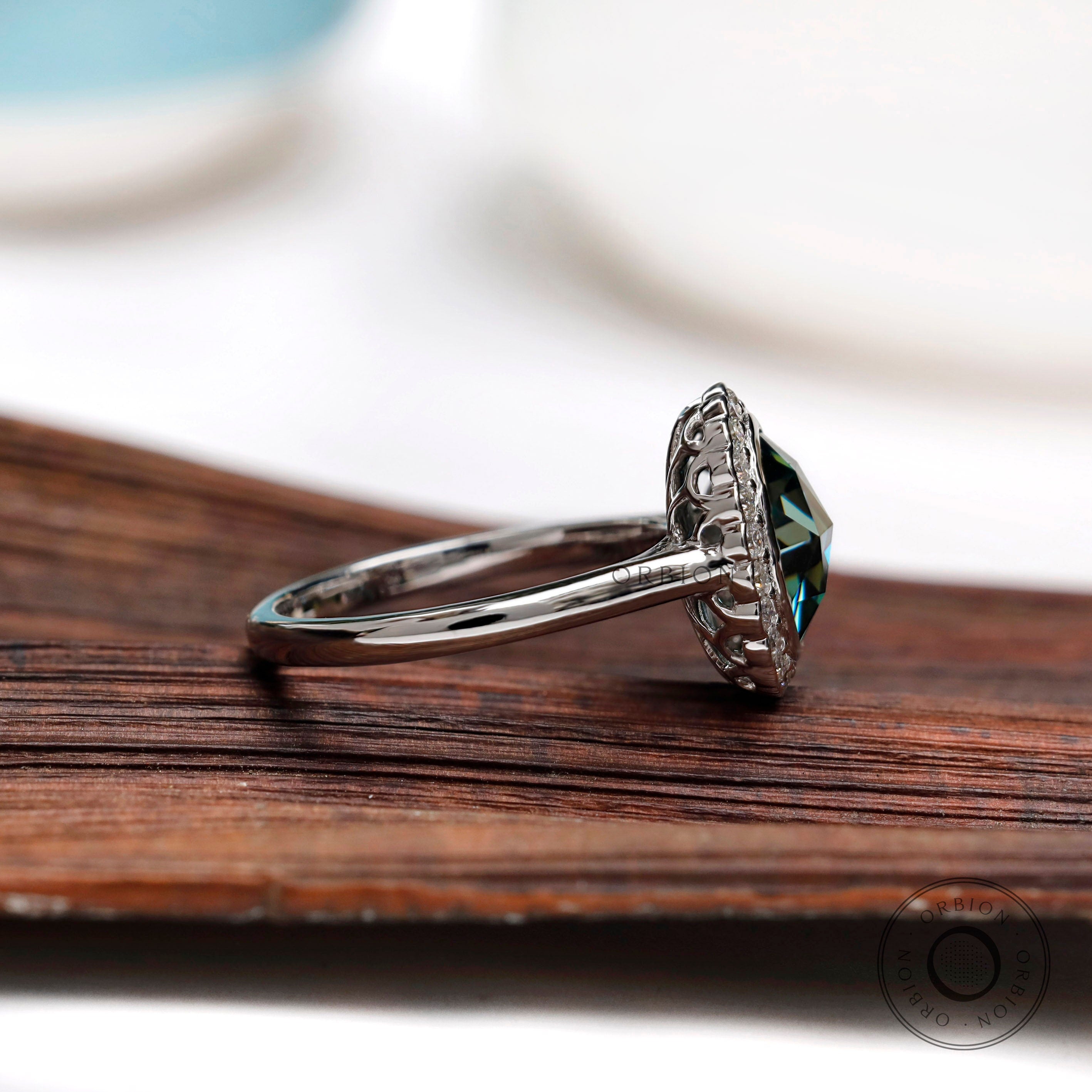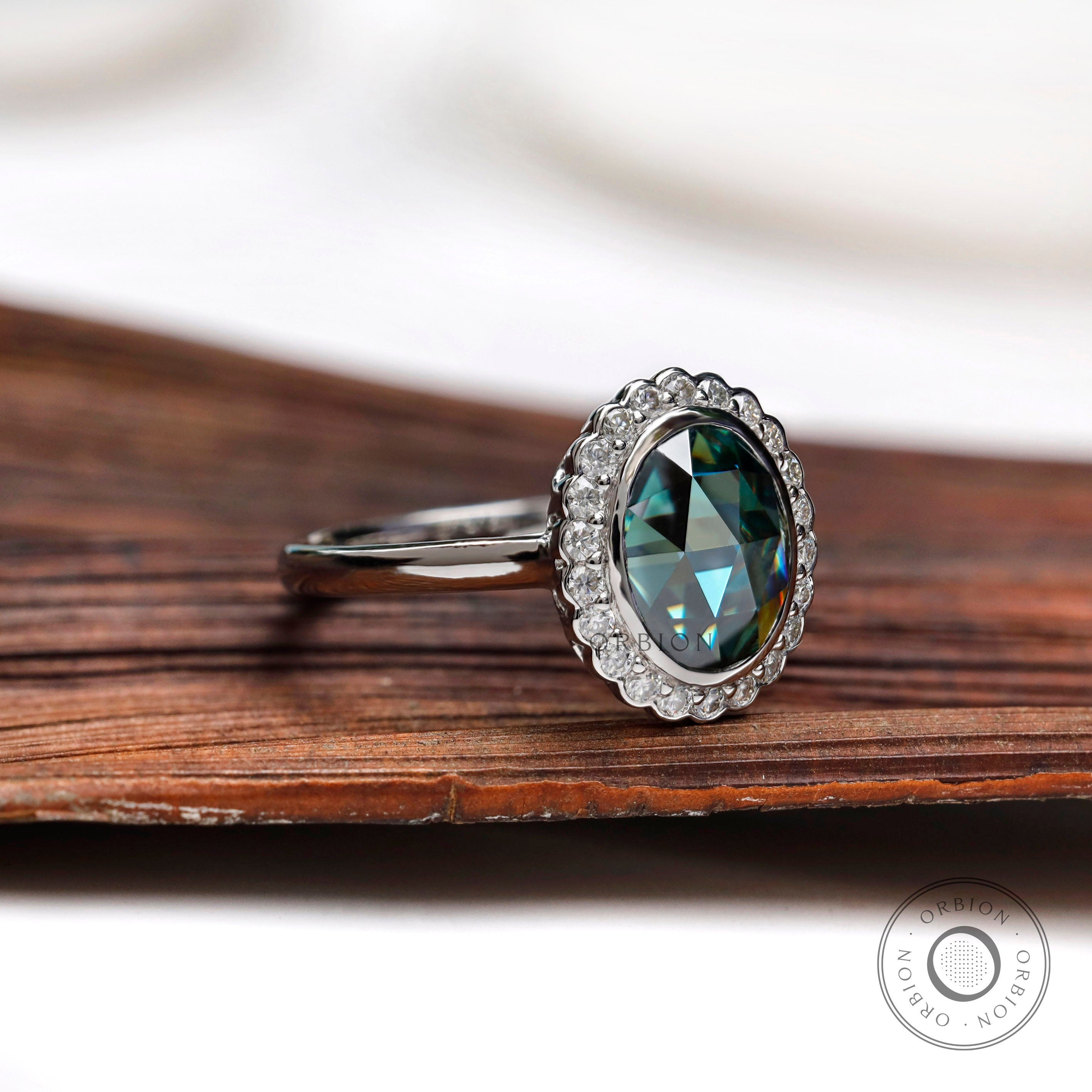 Rose Cut Blue Green Moissanite Engagement Ring Art Deco Oval Moissanite Halo Ring Statement Ring For Women Color Stone Rings Wedding Rings