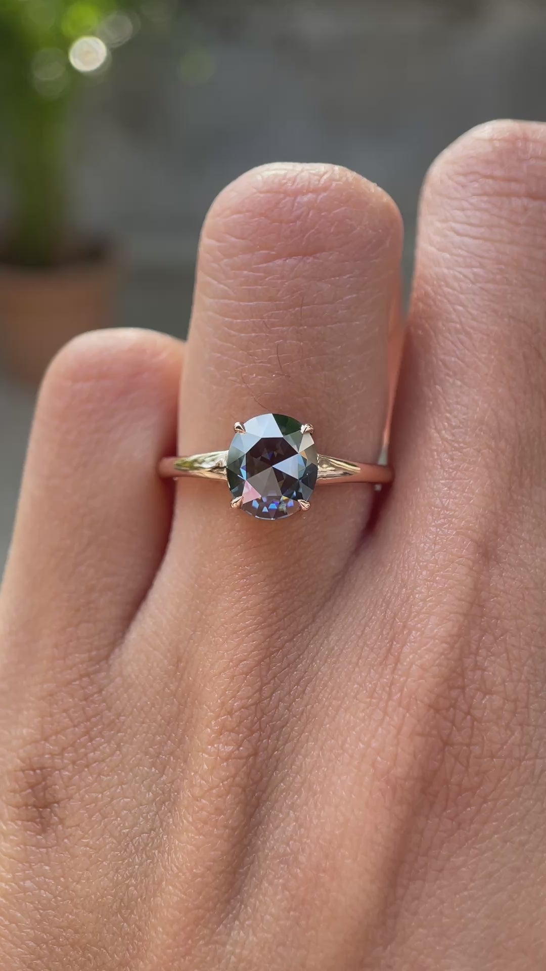 Rose Cut Oval Mystic Deep Blue Moissanite Ring, Oval Engagement Ring, 10k/14k/18k Rose Gold Ring, Promise Ring, Oval Blue Gemstone Ring