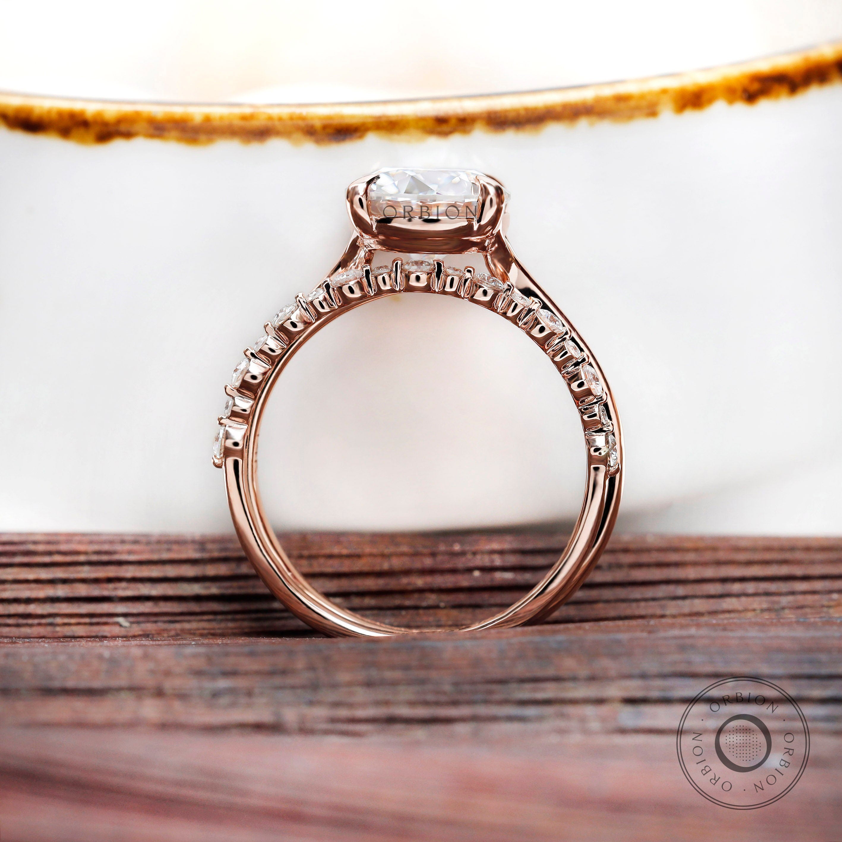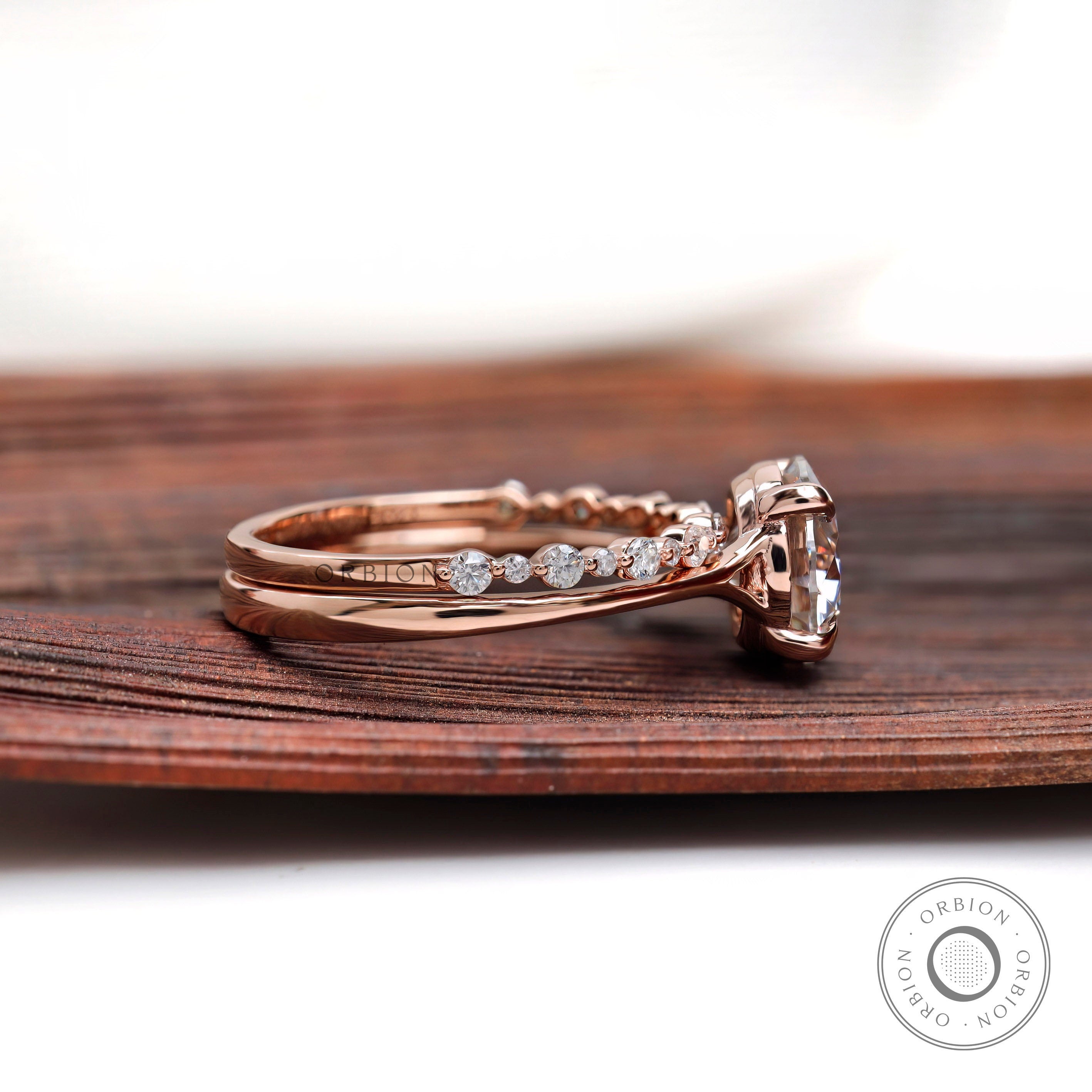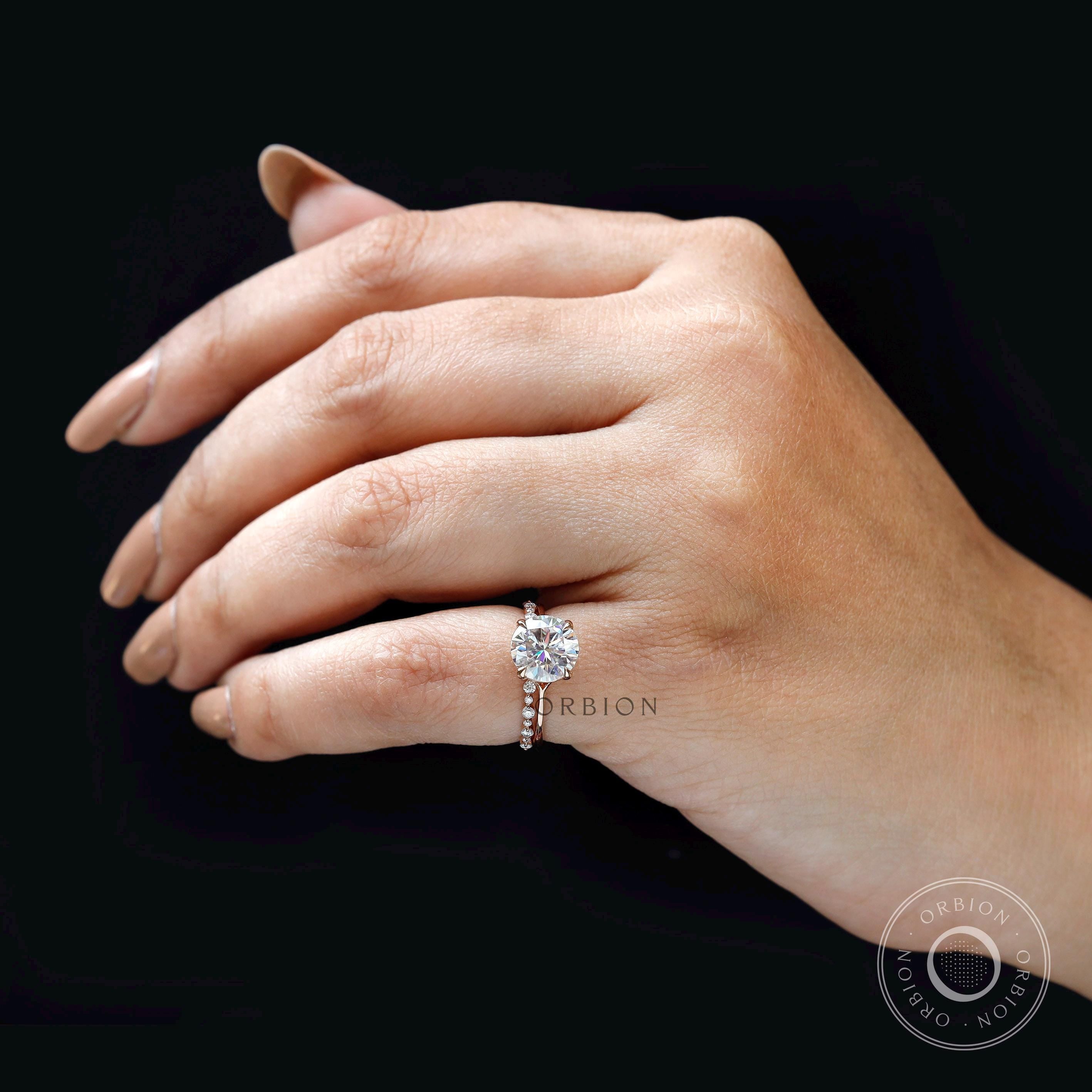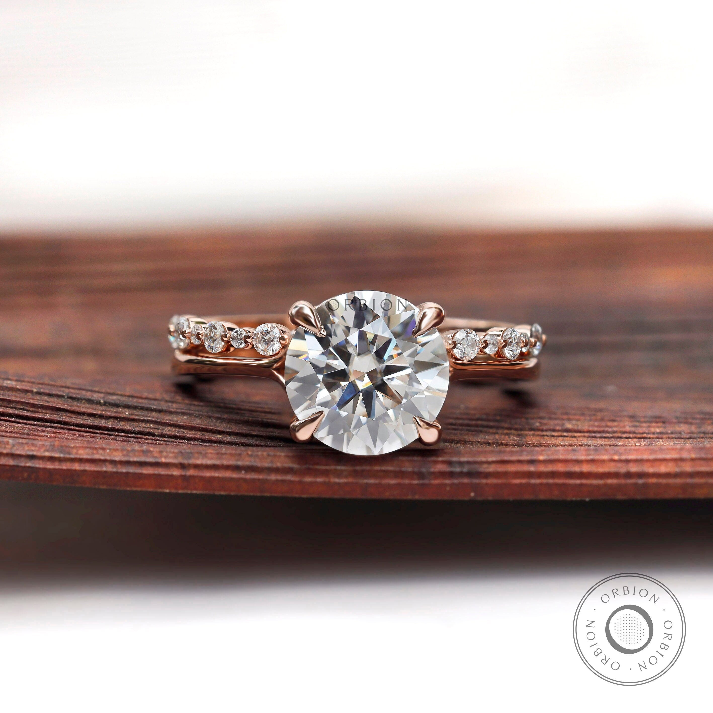 8 MM Round Brilliant Cut Moissanite Engagement Ring Set, Solid Rose Gold Bridal Ring Set For Women, Classic Half Eternity Matching Band, Wedding Ring Set, Unique Engagement Ring, Anniversary Gift Ring, 1 Year Anniversary Gift, Ring with a Matching Band.