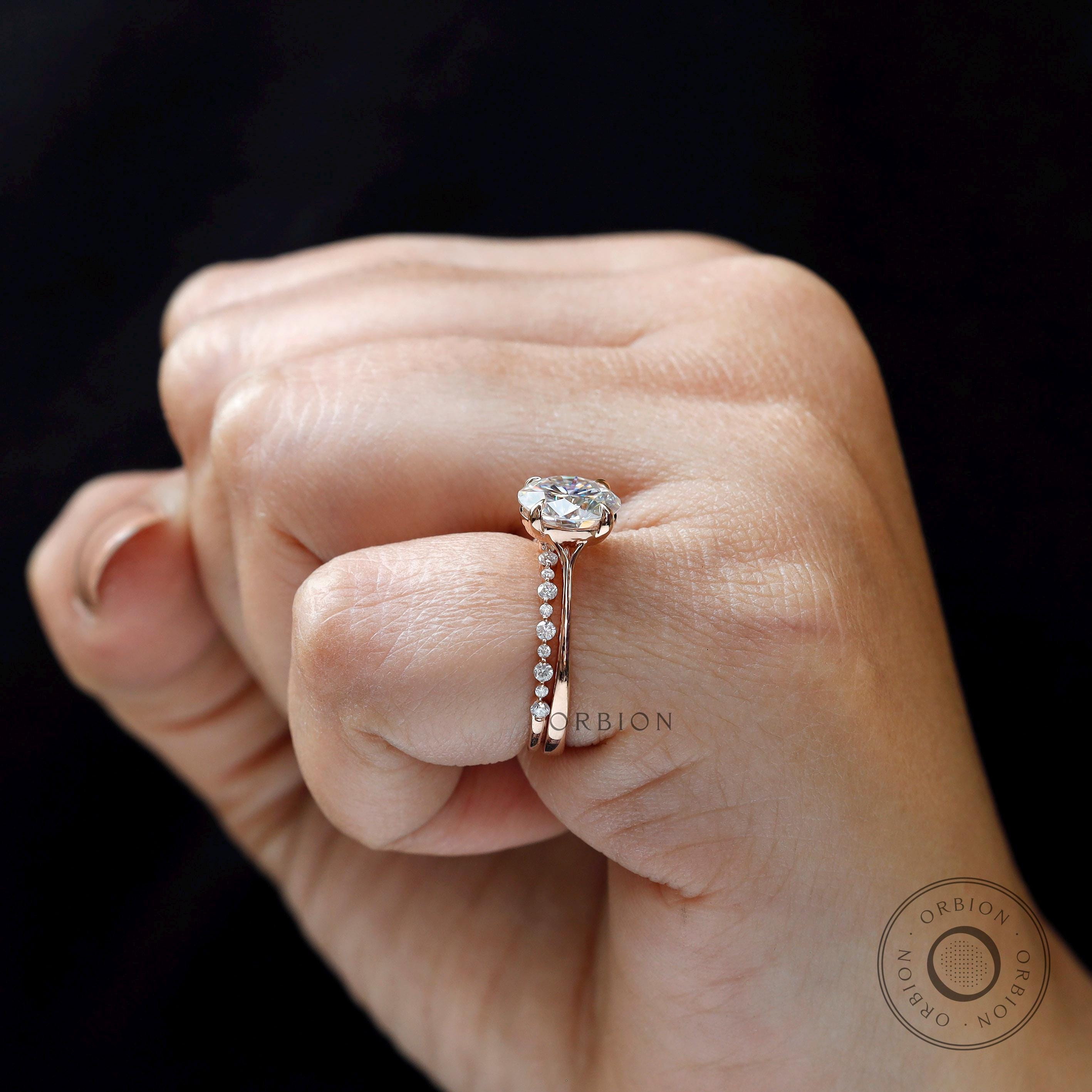Round Brilliant Cut Moissanite Ring With Matching Band, Engagement Ring Set, Bridal Ring Set, Wedding Ring Set, Half Eternity Bubble Band