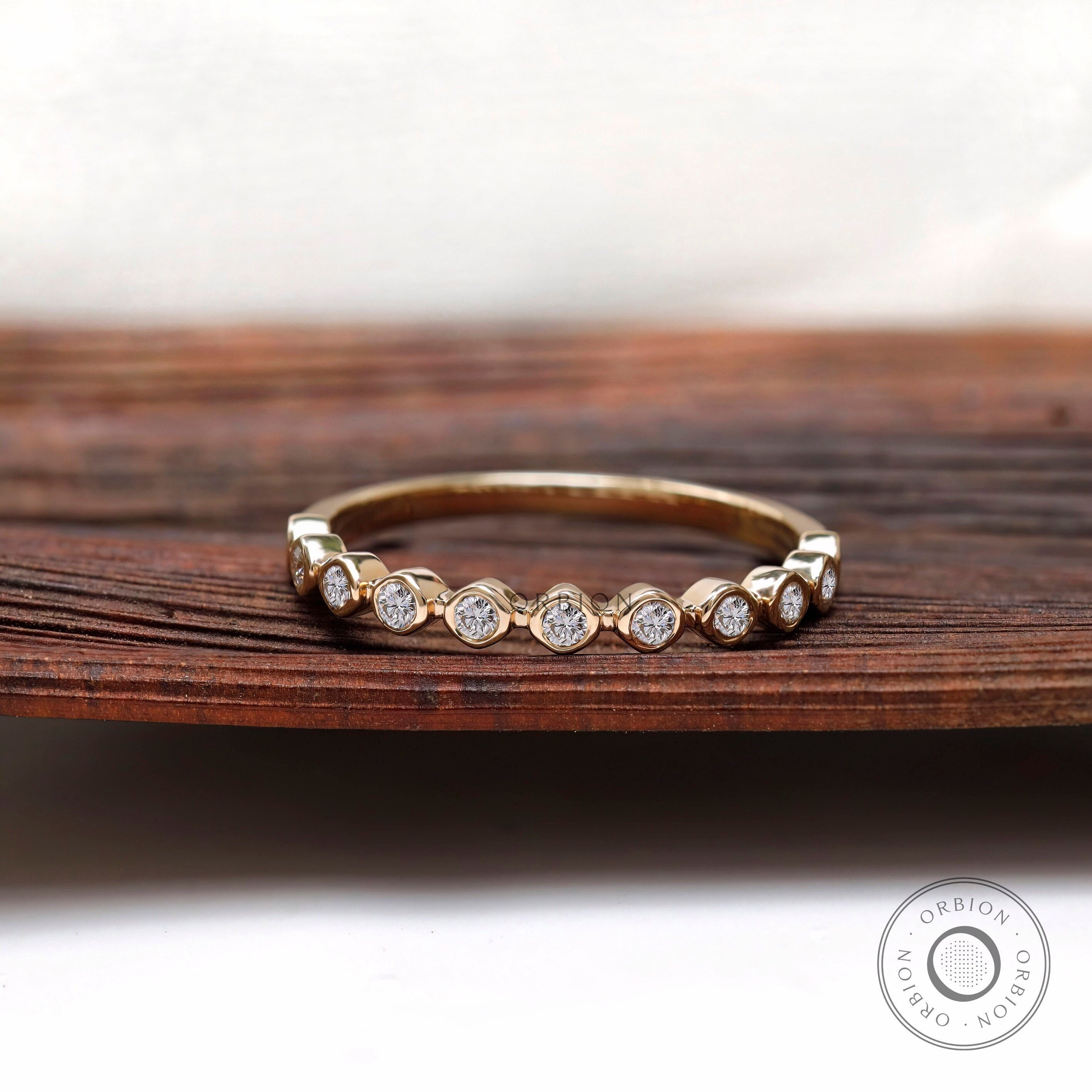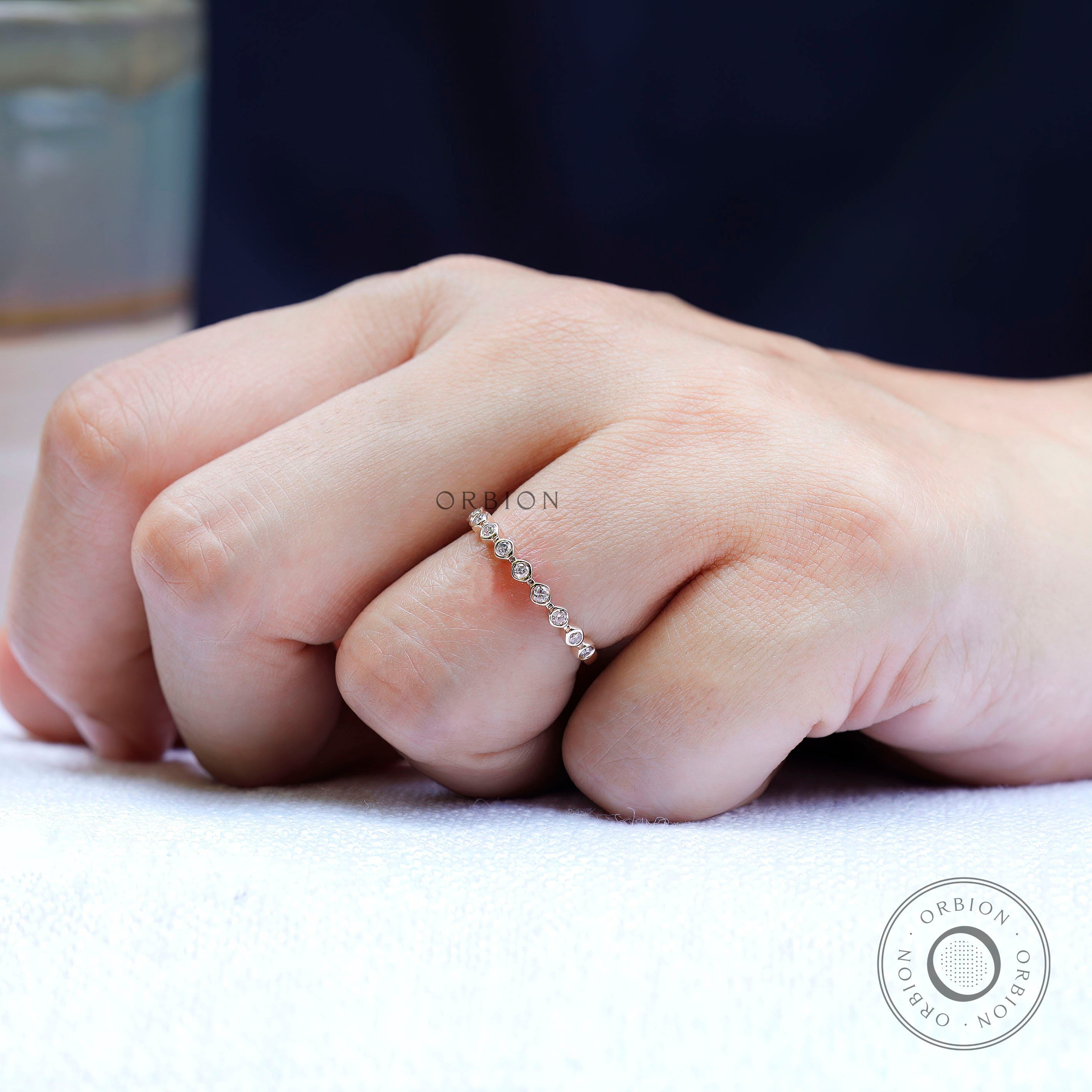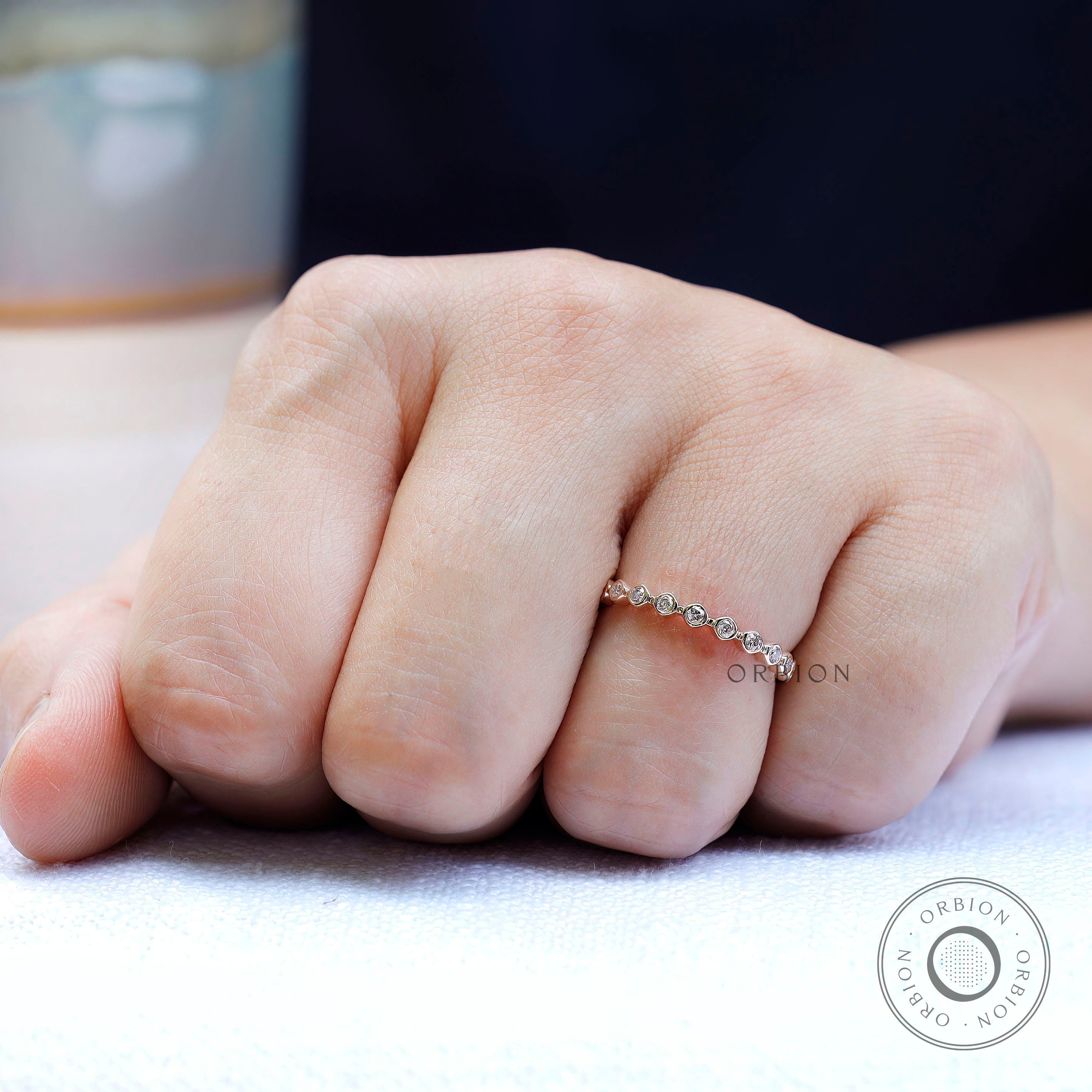 1.60 MM Bezel Set Round Moissanite Wedding Band, Unique Gold Half Eternity Wedding Band, Classic Stacking Band, Gift For Her, Women Wedding Band, Delicate Band, Anniversary Gift For Women, Dainty Eternity Band, Lab Grown Diamond Band, Stacking Jewelry