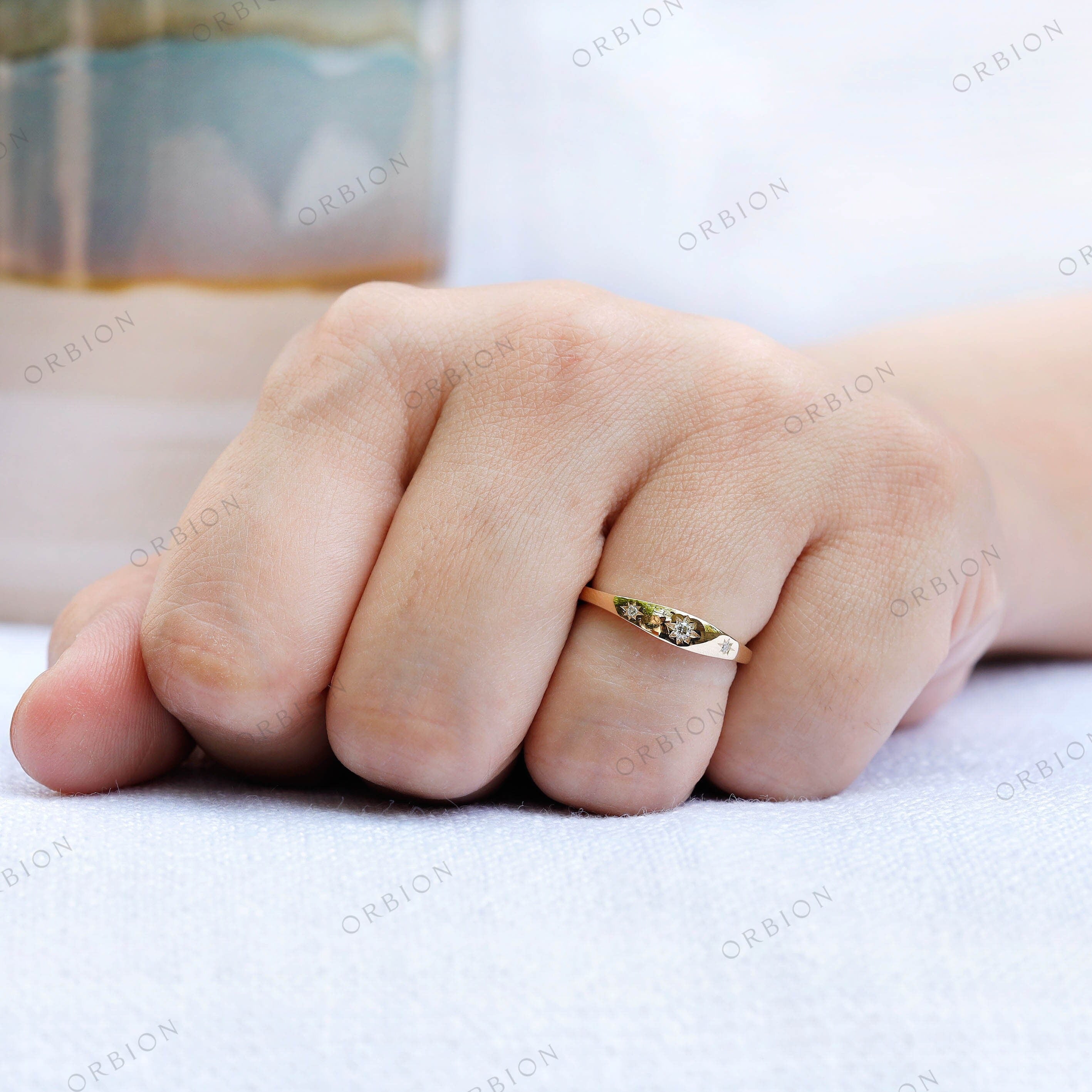 Round Starburst Lab Diamond Band, 14K Gold Wedding Band For Her, Signet Diamond Ring, North Star Celestial Ring, Fine Jewelry, Lab Grown Diamond Ring, Small Signet Ring, Solid Gold Ring, Polaris Diamond Ring, Celestial Wedding Band, Diamond Starburst Ring, Minimalist Band, Gift for her