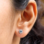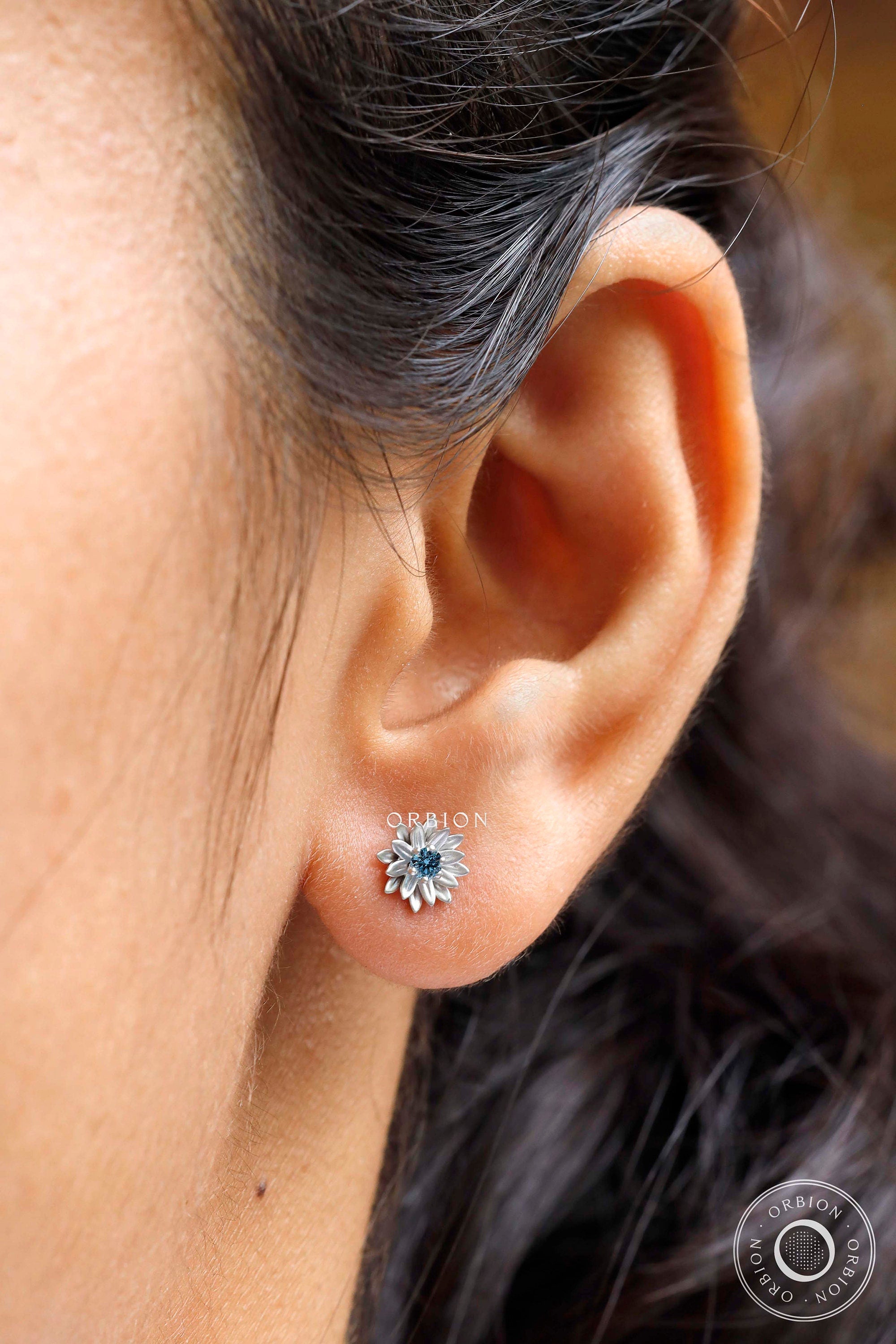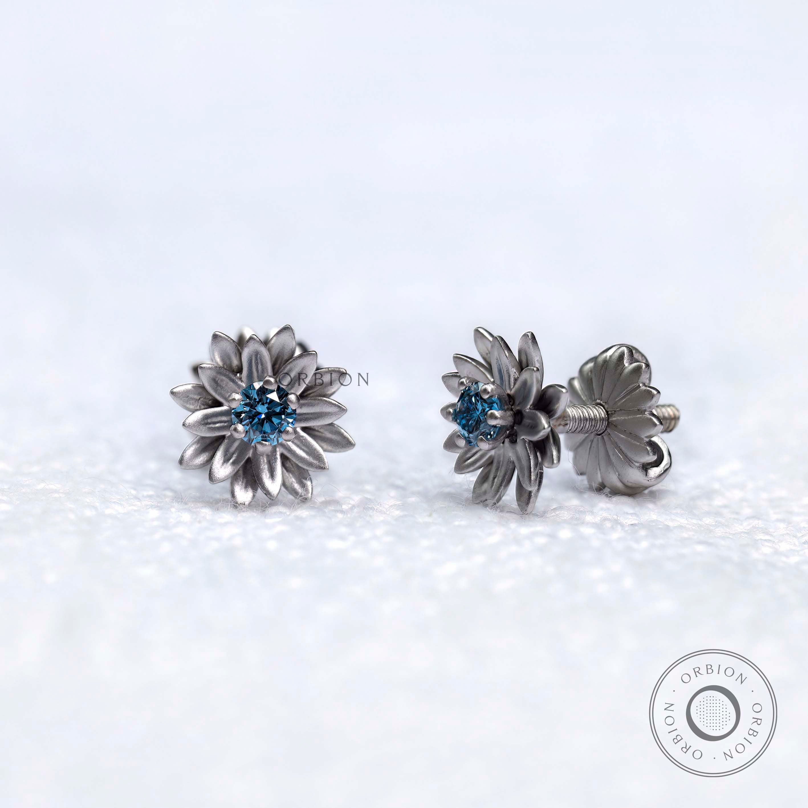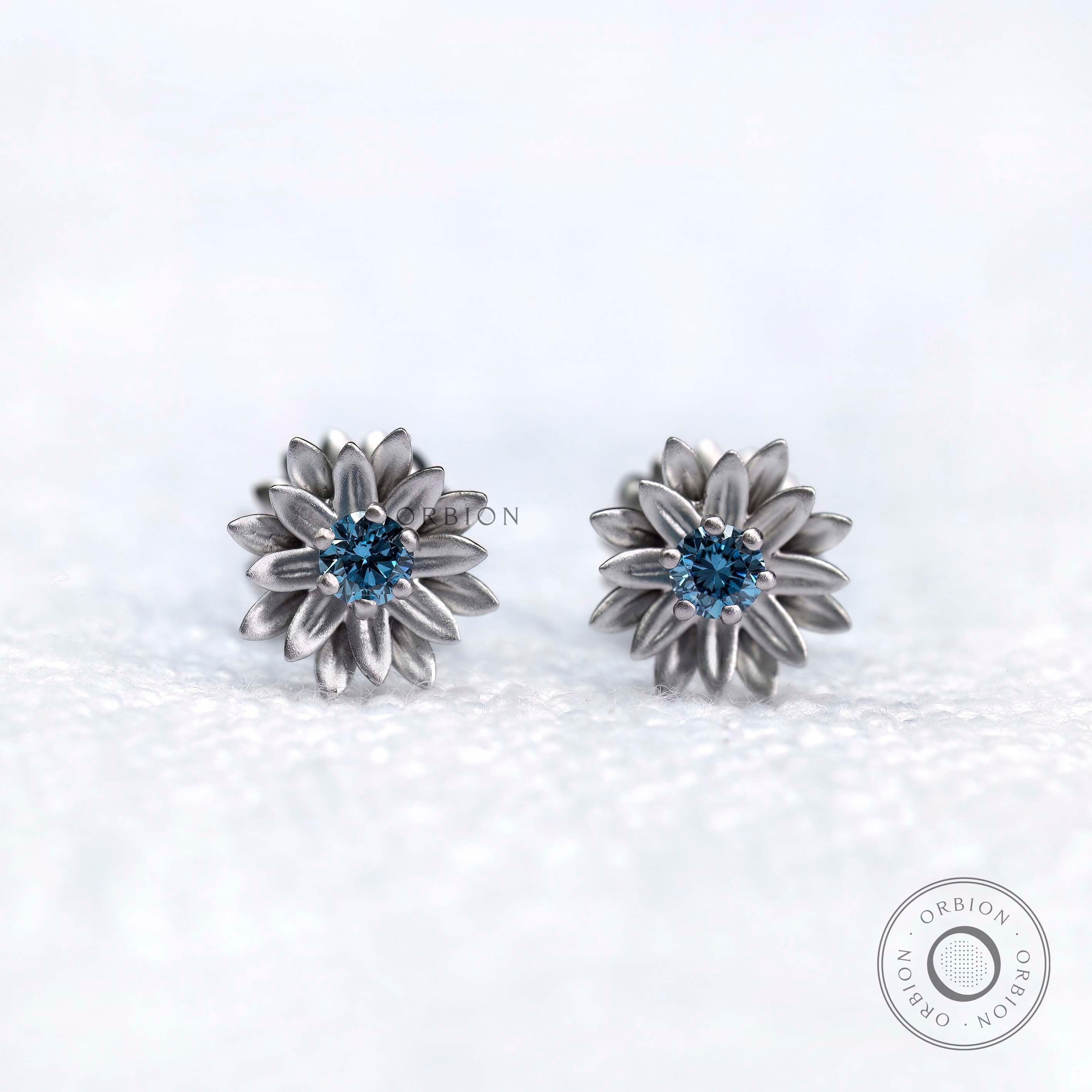Sophisticated Floral Jewelry: Lotus Inspired Lab Diamond Earrings with a Touch of Blue, Inspired by the Majestic Lotus Bloom