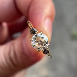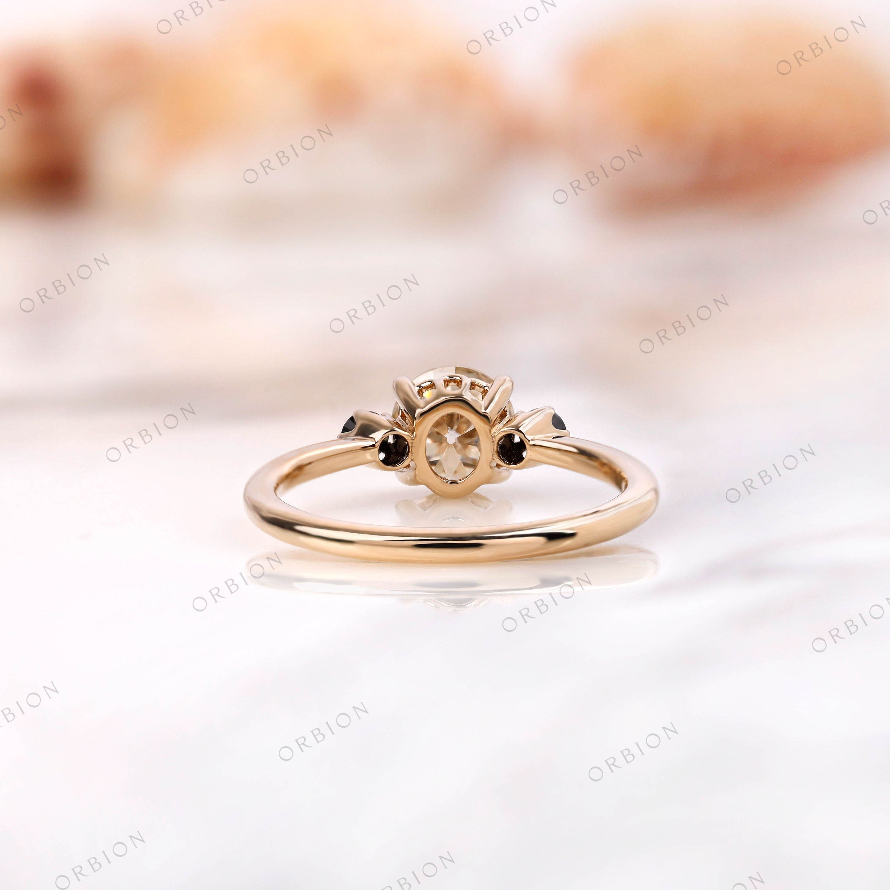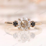 Three Stone Engagement Ring, Three Stone Moissanite Ring, OEC Moissanite Ring, Black And White Stone Ring, 14k Gold Vintage Ring