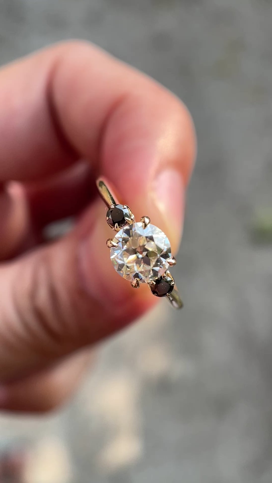 1 CT Old European Cut Three Stone Moissanite Ring, Old Cut Moissanite Ring, 10k/14k/18k Solid Gold Ring, Vintage Wedding Ring, Handmade Jewelry, Claw Prong Set Ring, Three Stone Ring, Anniversary Gift, Gift for Her, Promise Ring, Proposal Ring, Round Moissanite Side Stone, Black Moissanite, Off white Moissanite, Black & White Moissanite Ring
