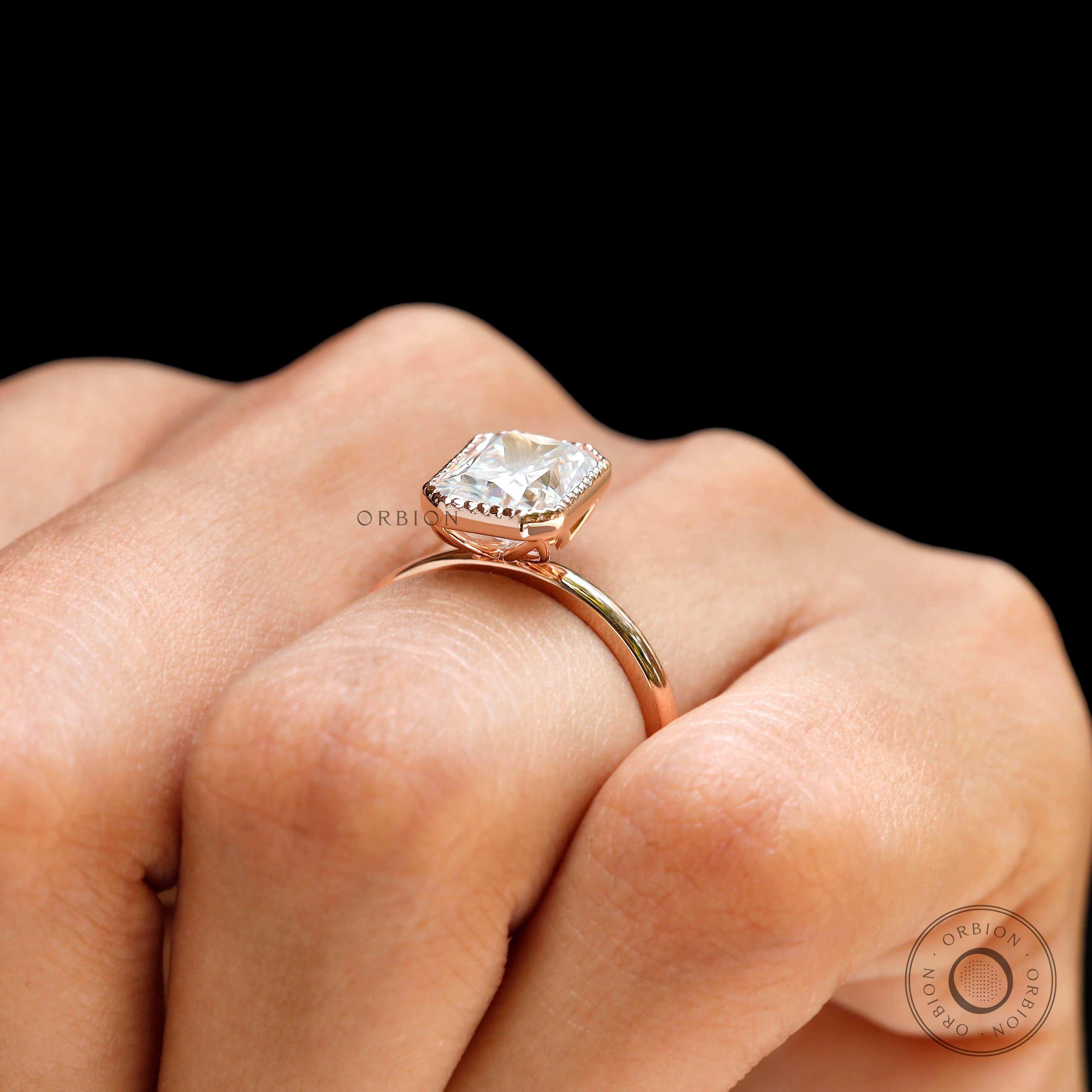 2.8 CT Brilliant Cut Bezel Set Radiant Moissanite Engagement Ring, Vintage Style Tulip Set Milgrain Solitaire Ring, Heirloom Jewelry, Heirloom Engagement Rings, Proposal Ring, Vintage Engagement Ring, Art Deco Ring, 14k Rose Gold Ring, Antique Solitaire Ring, Promise Ring For Her, Anniversary Ring, Handmade Jewelry
