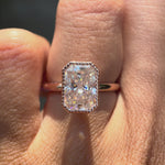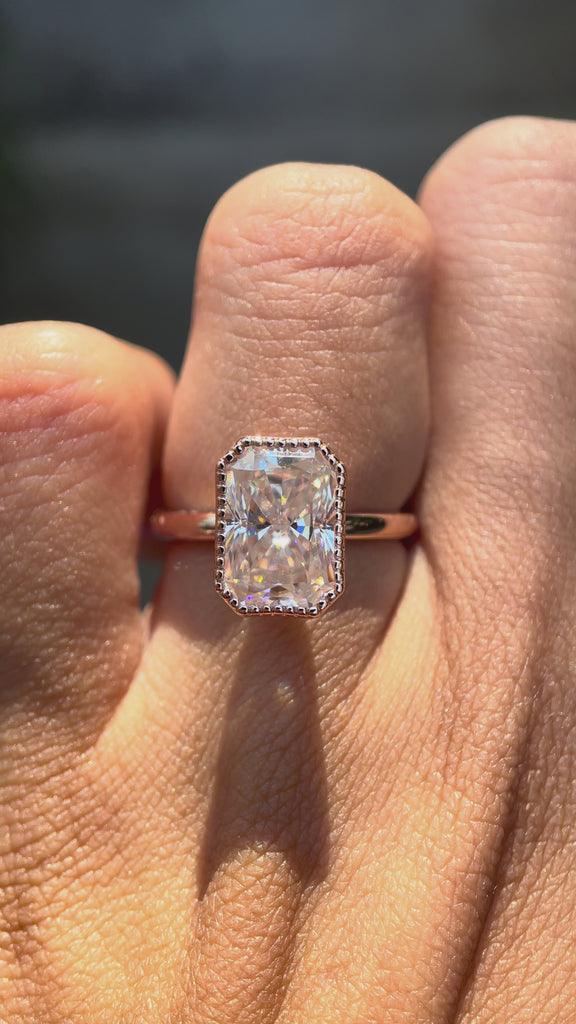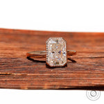 Timeless Elegance: Rose Gold Vintage Engagement Ring with Radiant Cut Moissanite, Art Deco Solitaire Ring with Milgrain Bezel Setting