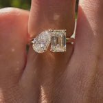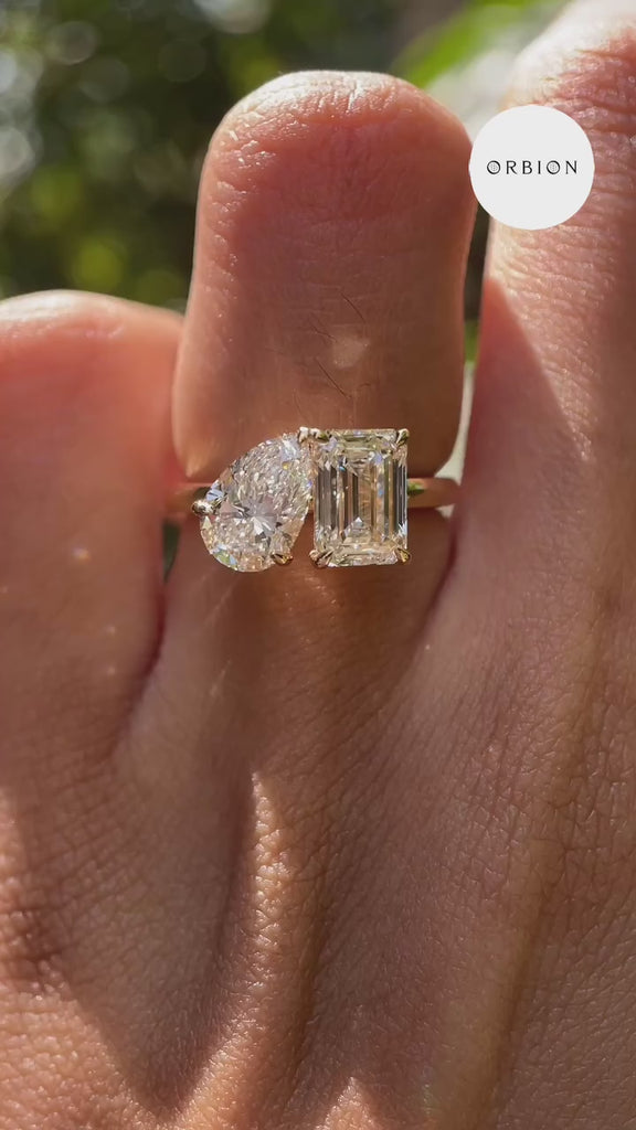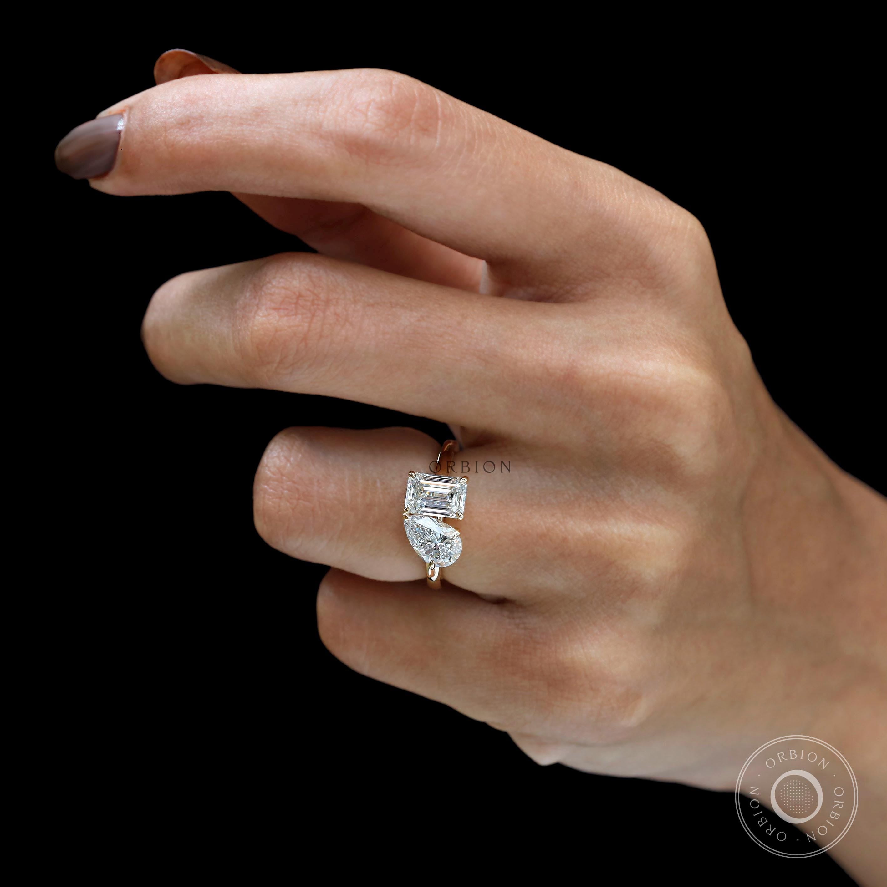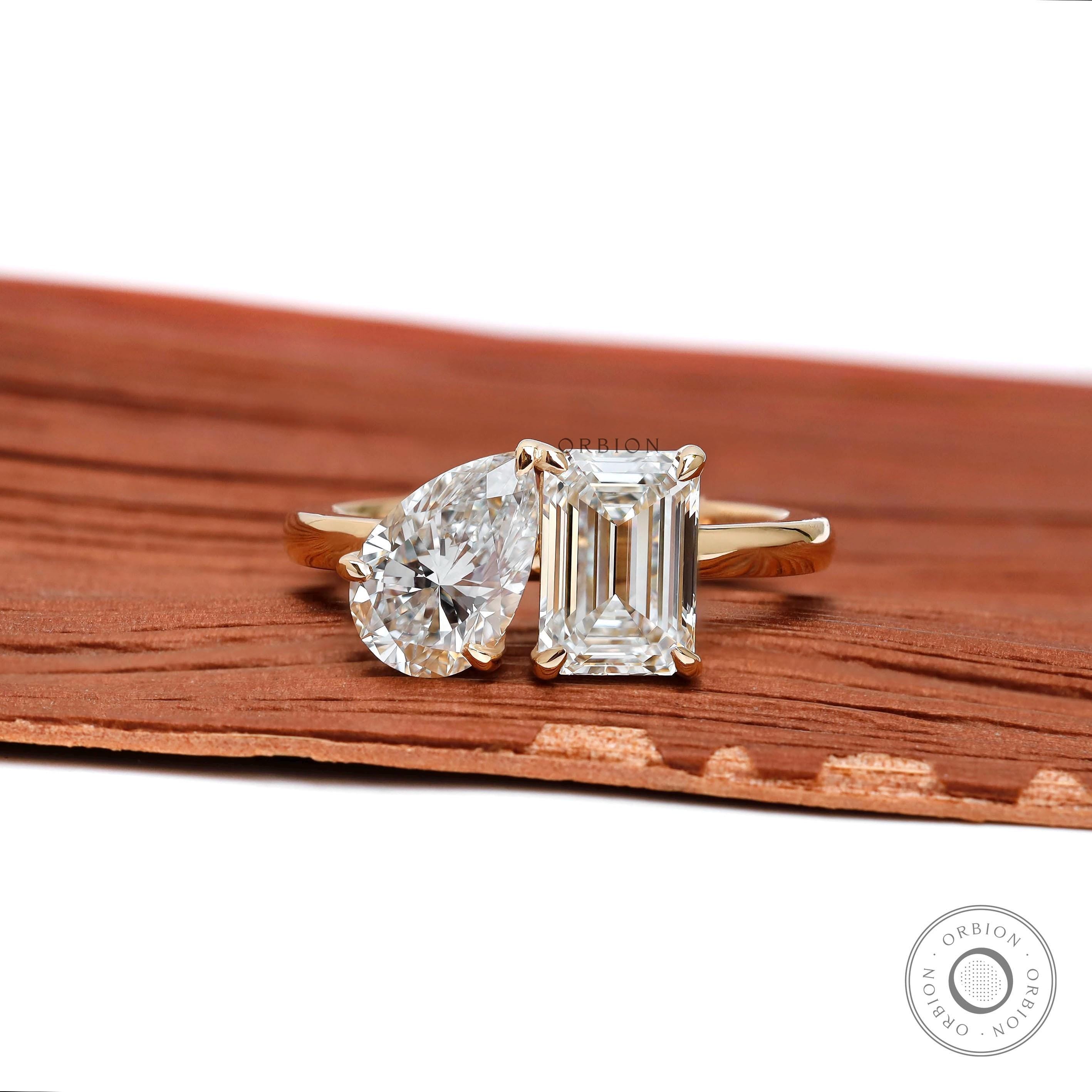 Toi Et Moi Two Stone Engagement Ring Pear & Emerald Shaped Lab Grown Diamond Double Stone Ring You And Me Wedding Bridal Ring