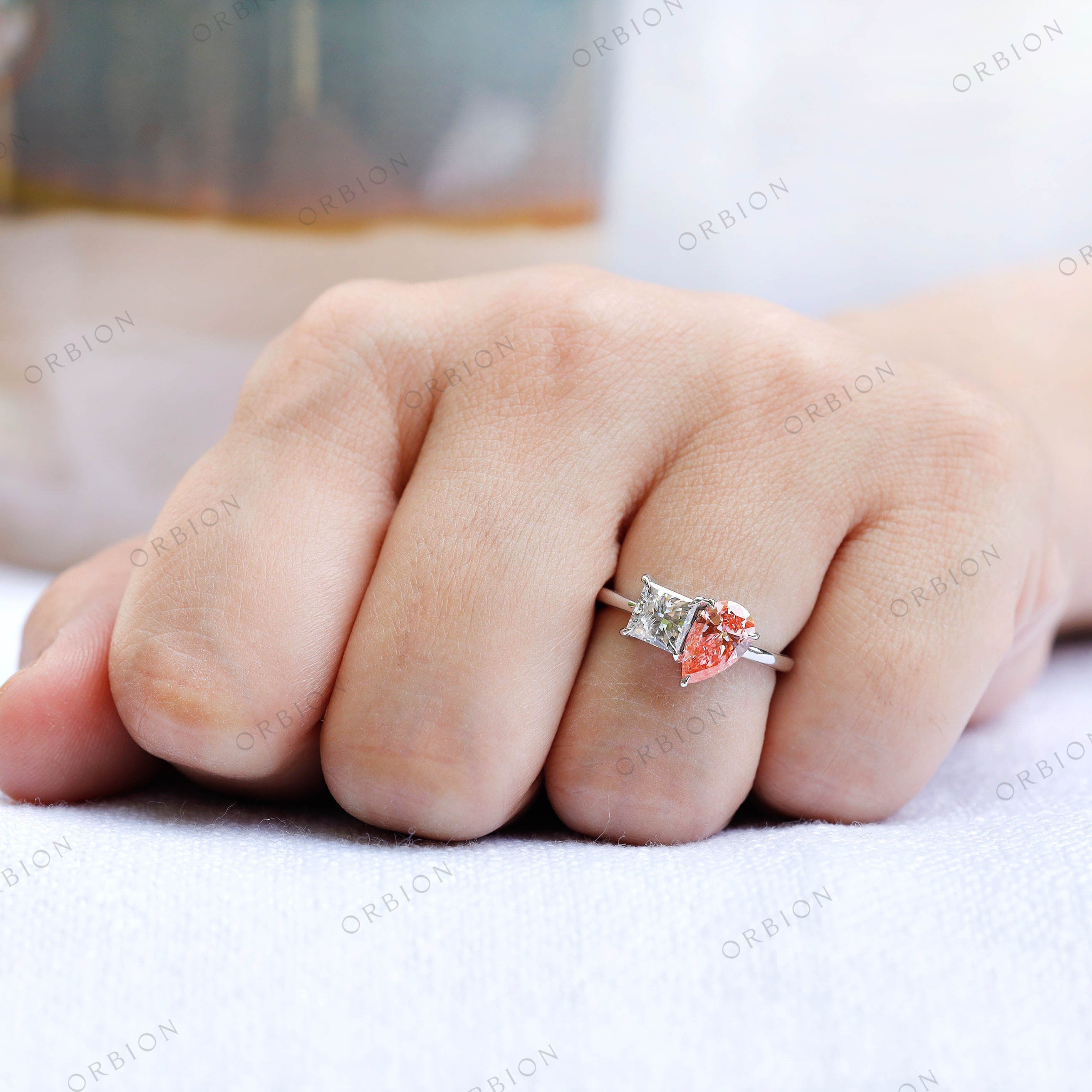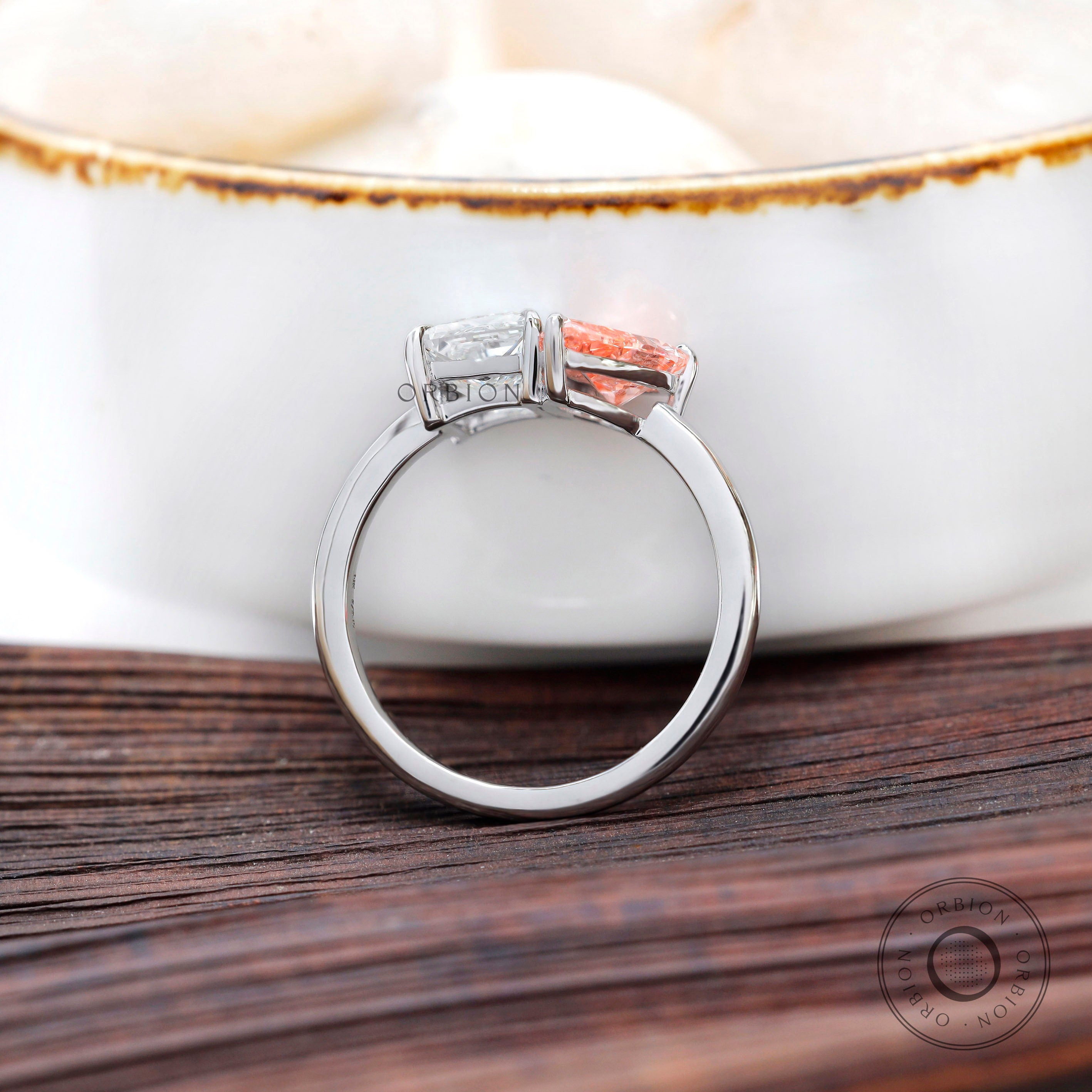 Toi Et Moi Engagement Ring Lab Diamond Double Stone Ring Real Lab Grown Diamond Ring Pear & Princess Ring, Elegant Color Diamond Ring