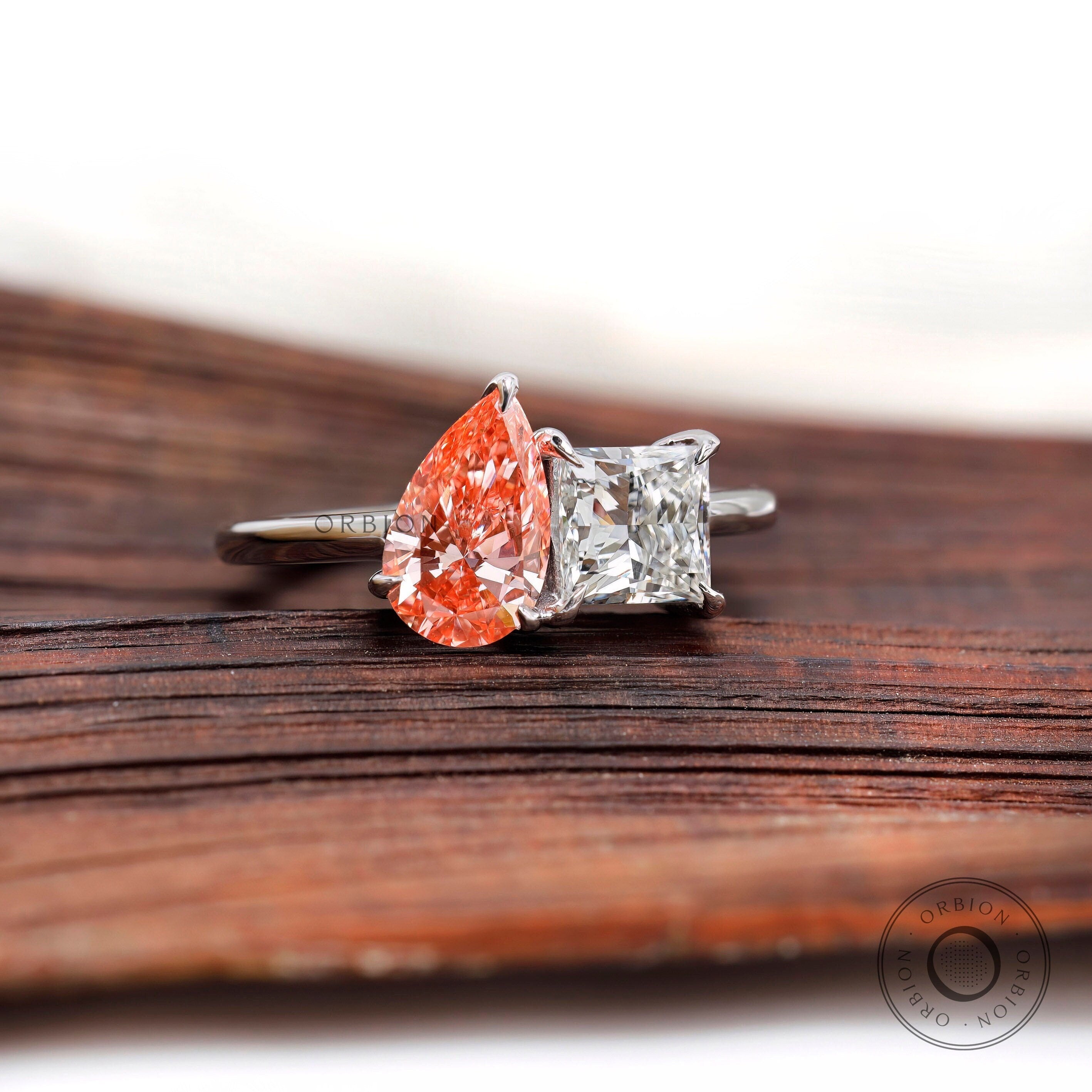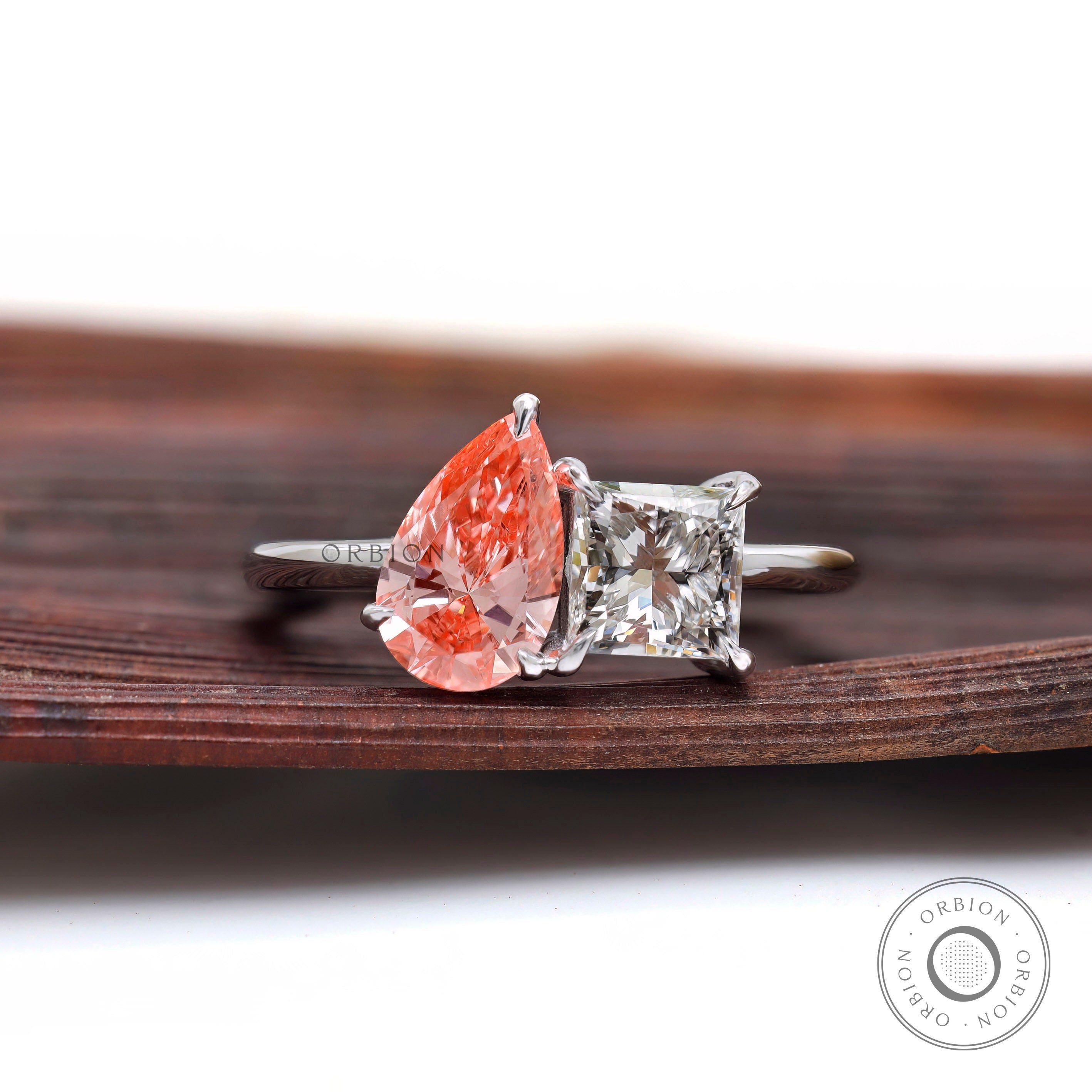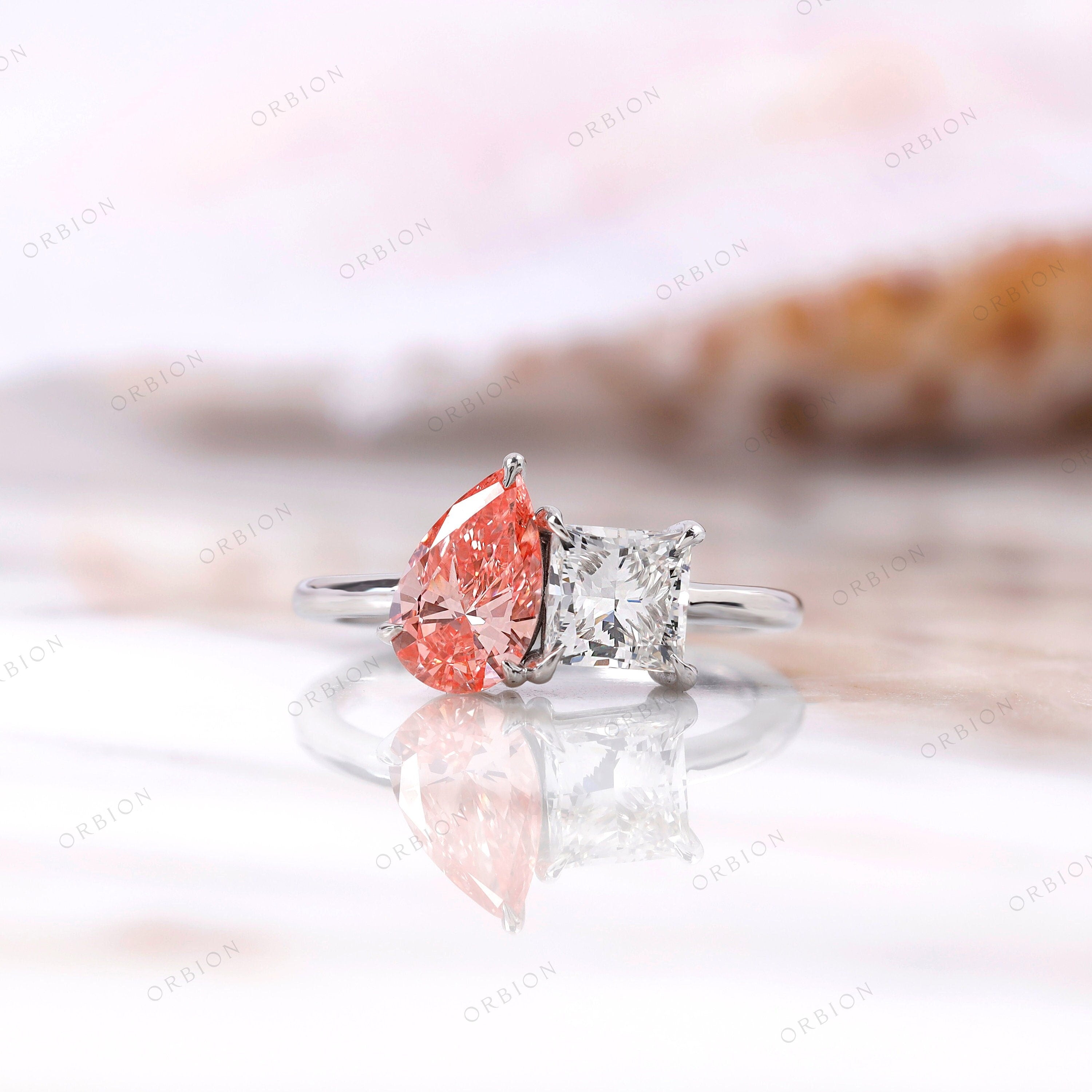 Fancy Vivid Pink Pear & Princess Cut Lab Diamond Ring, Engagement Ring, Solitaire Ring, Wedding Ring, Diamond Ring for Her, Bridal Ring, CVD Diamond Ring, Lab Grown Diamond Ring, Diamond Engagement Ring, Anniversary Gift Ring, Anniversary Diamond Ring, Gold Ring, Toi Et Moi Ring, Pink Diamond Ring.