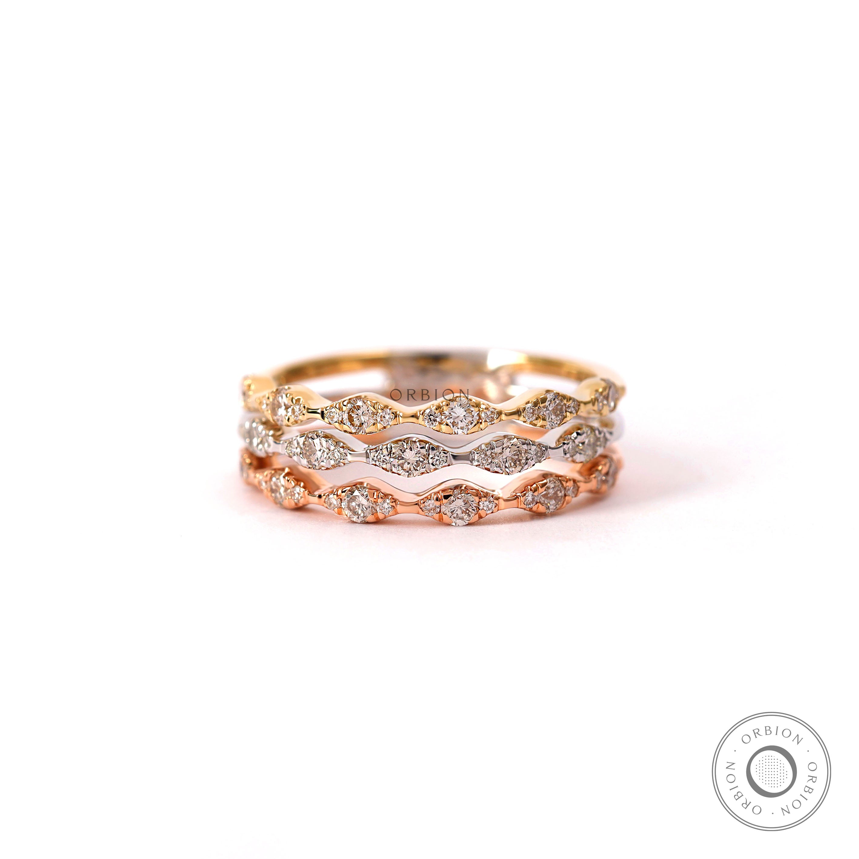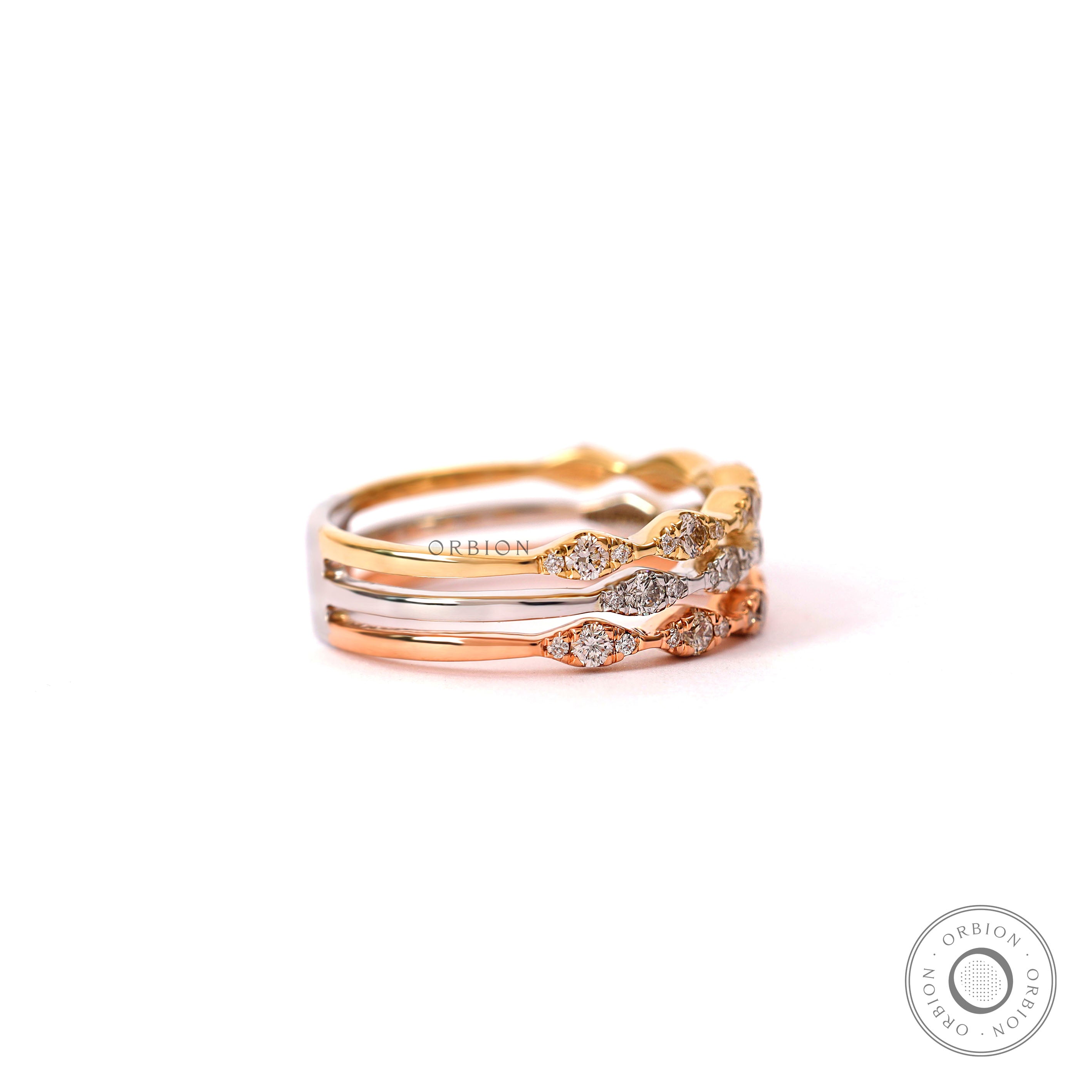 Tri color ring, Tri color gold wave rings, Tri color diamond band, Multitone diamond ring, Three tone ring, Wedding engagement rings, 10k/14k/18k Solid gold band, Unique wedding ring, Round diamond ring, Stacking diamond ring, Anniversary gift, Half eternity ring, Statement ring for women, Stackable ring for women, Wide band ring, Women wide band, Cocktail diamond ring