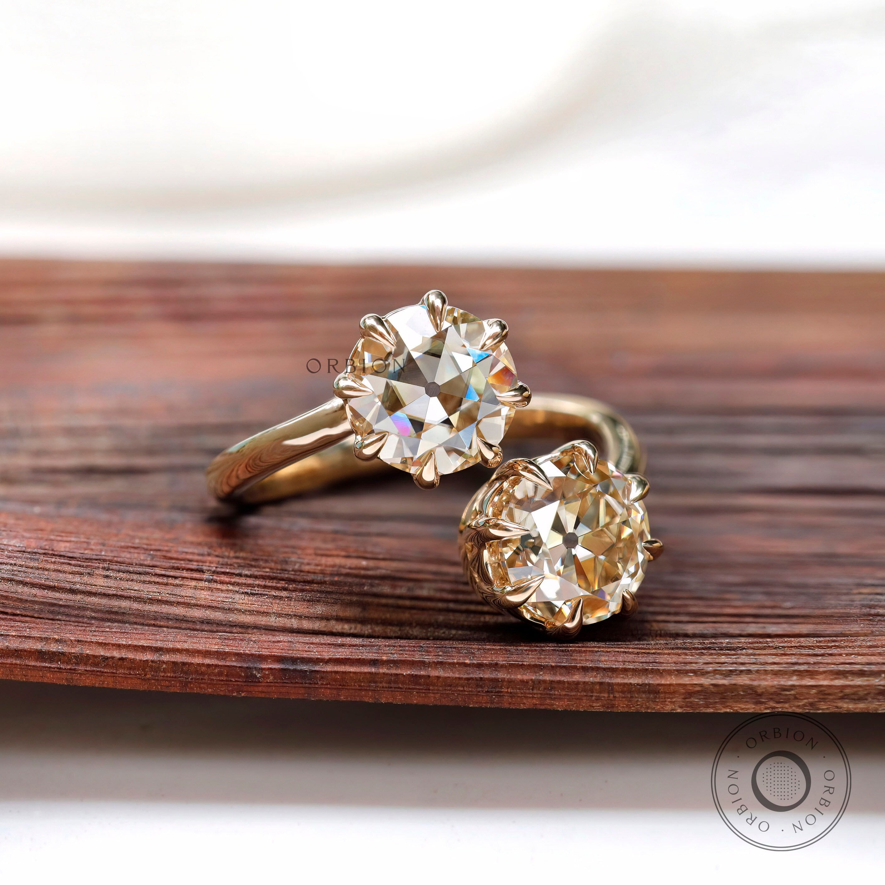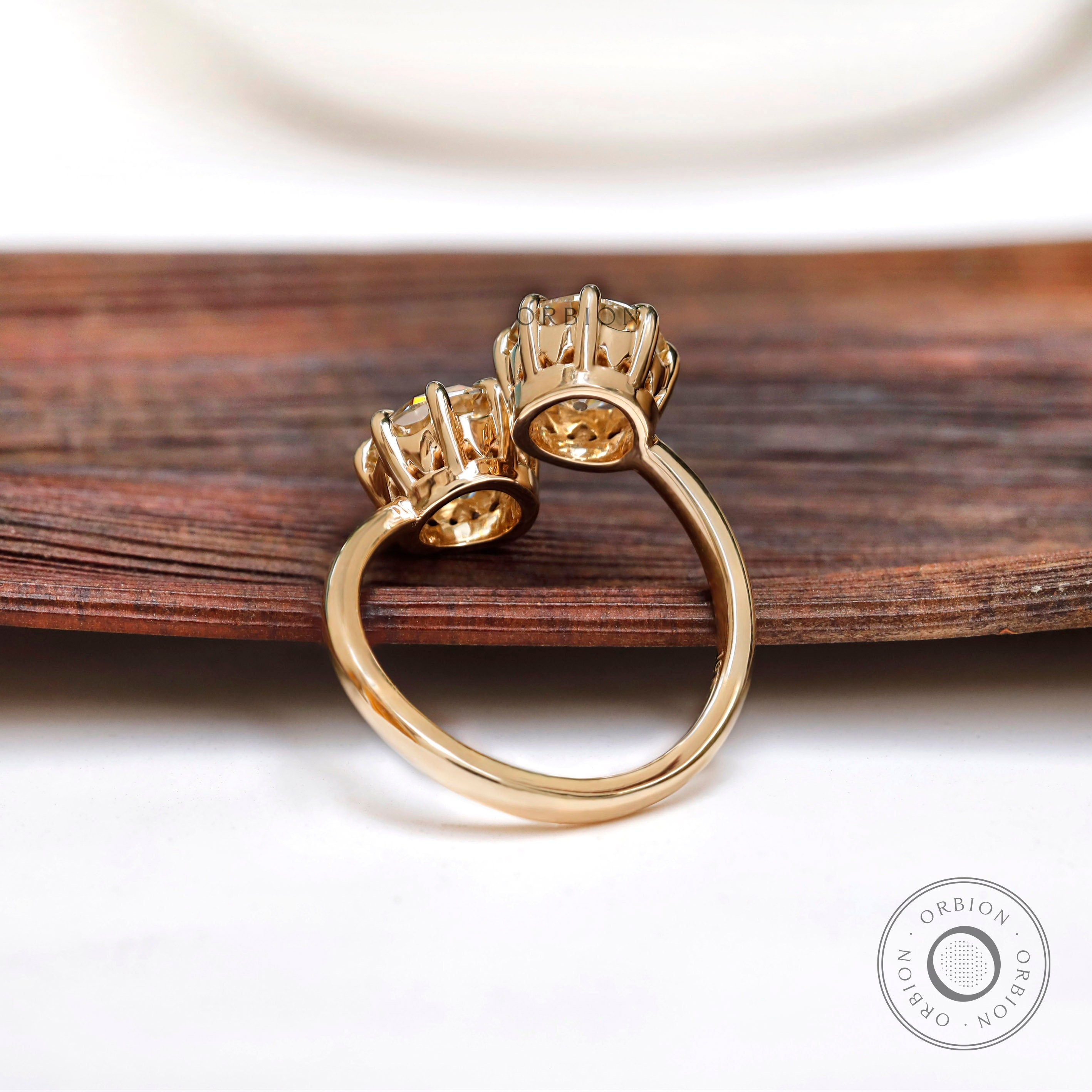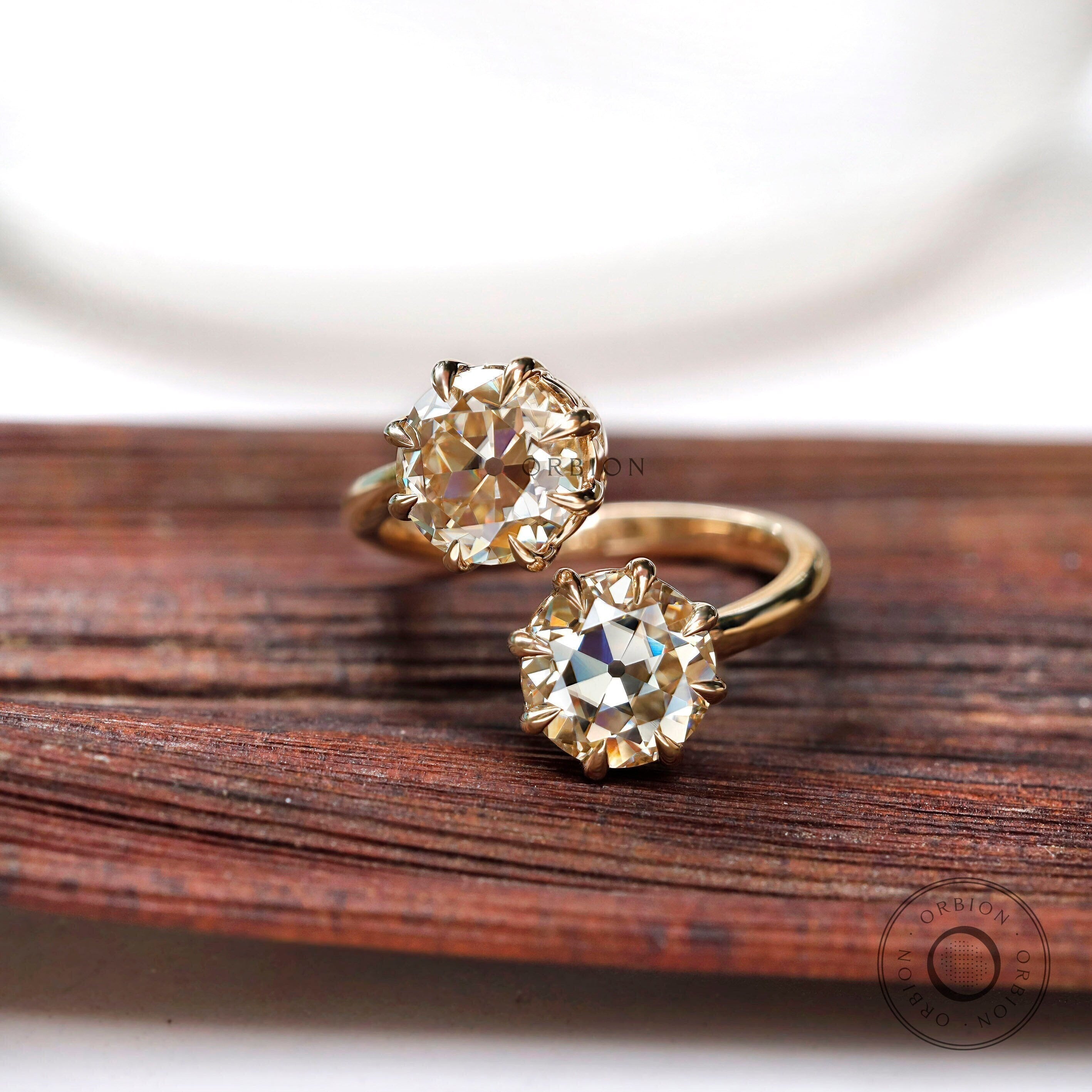 Round OEC Champagne Moissanite Toi Et Moi Ring, Made For Each Other, Unique Claw Prong Georgian Ring, Champagne Ring Gold, Old European Cut Moissanite Engagement Ring For Her, Edwardian Ring, Vintage Style Ring, Antique Cut Ring, Old Cut Ring, Fancy Color Moissanite Ring, 10k/14k/18k Solid Gold Ring, Toi et Moi Open Ring, Hand Made Ring, Two Stone Ring, Double Stone Ring