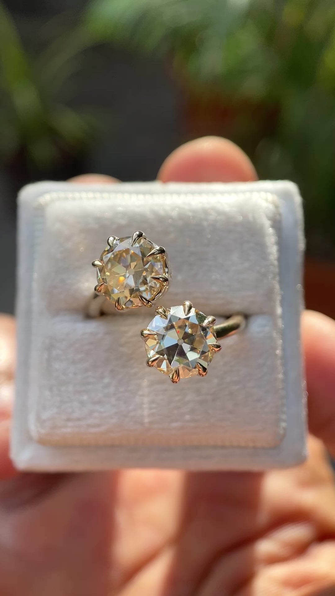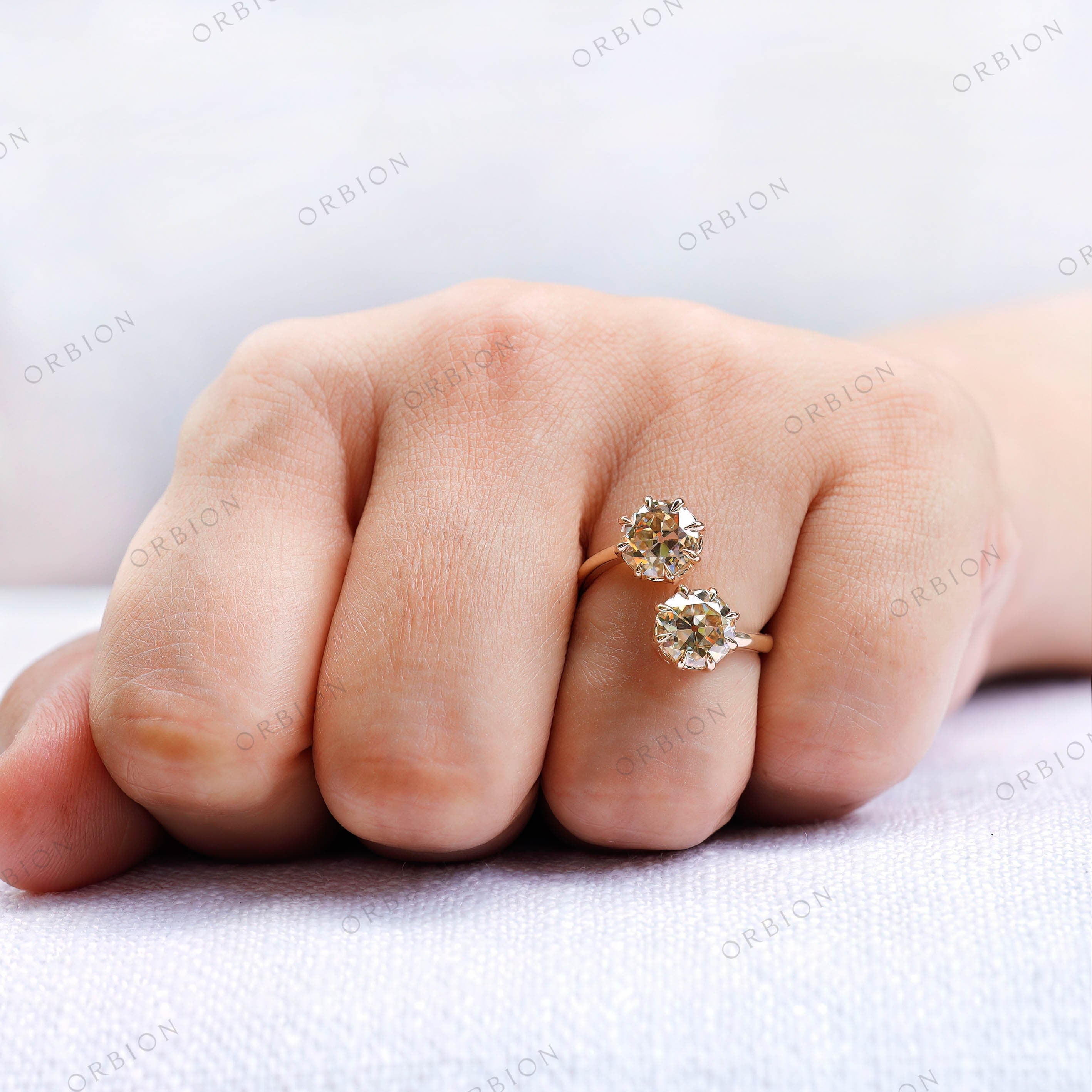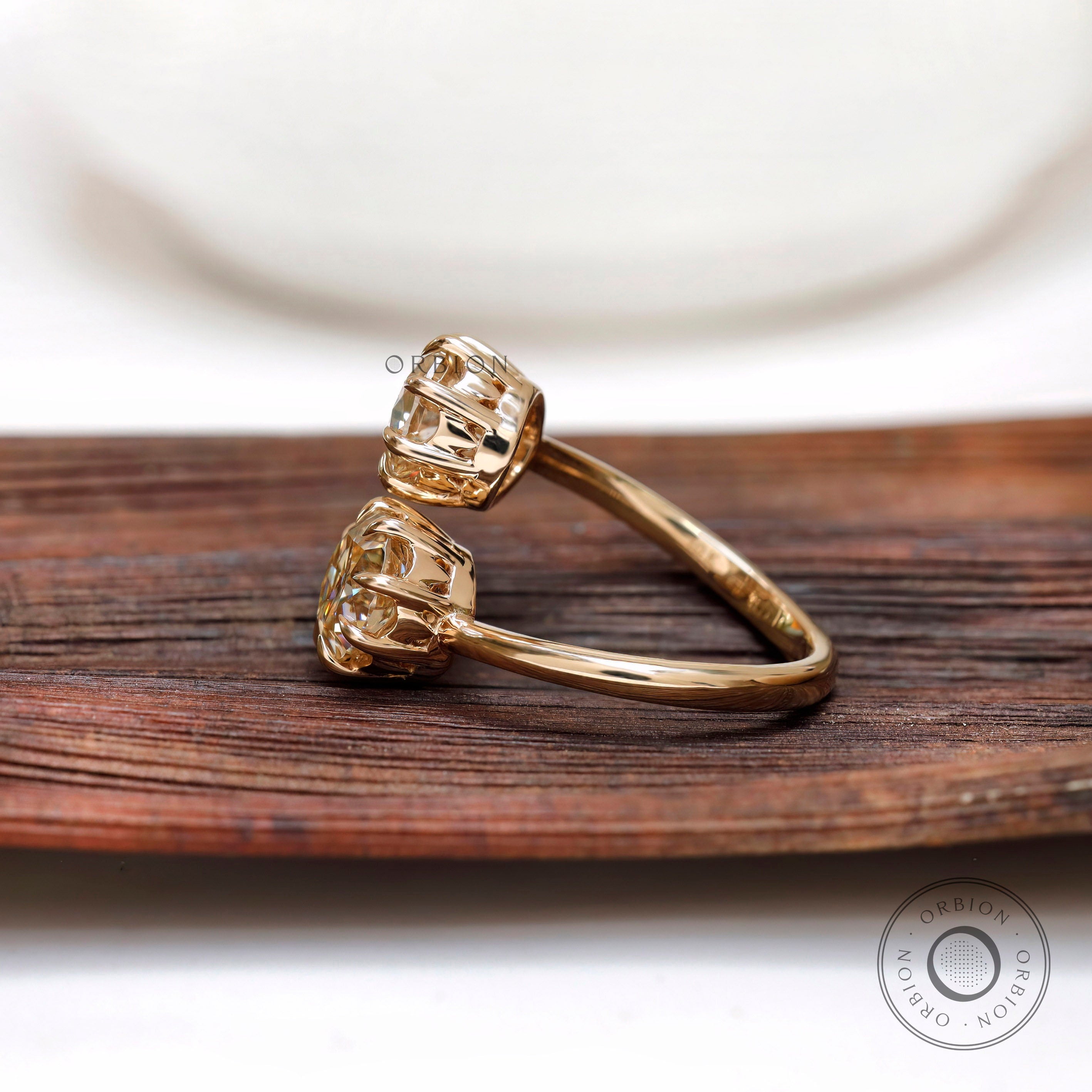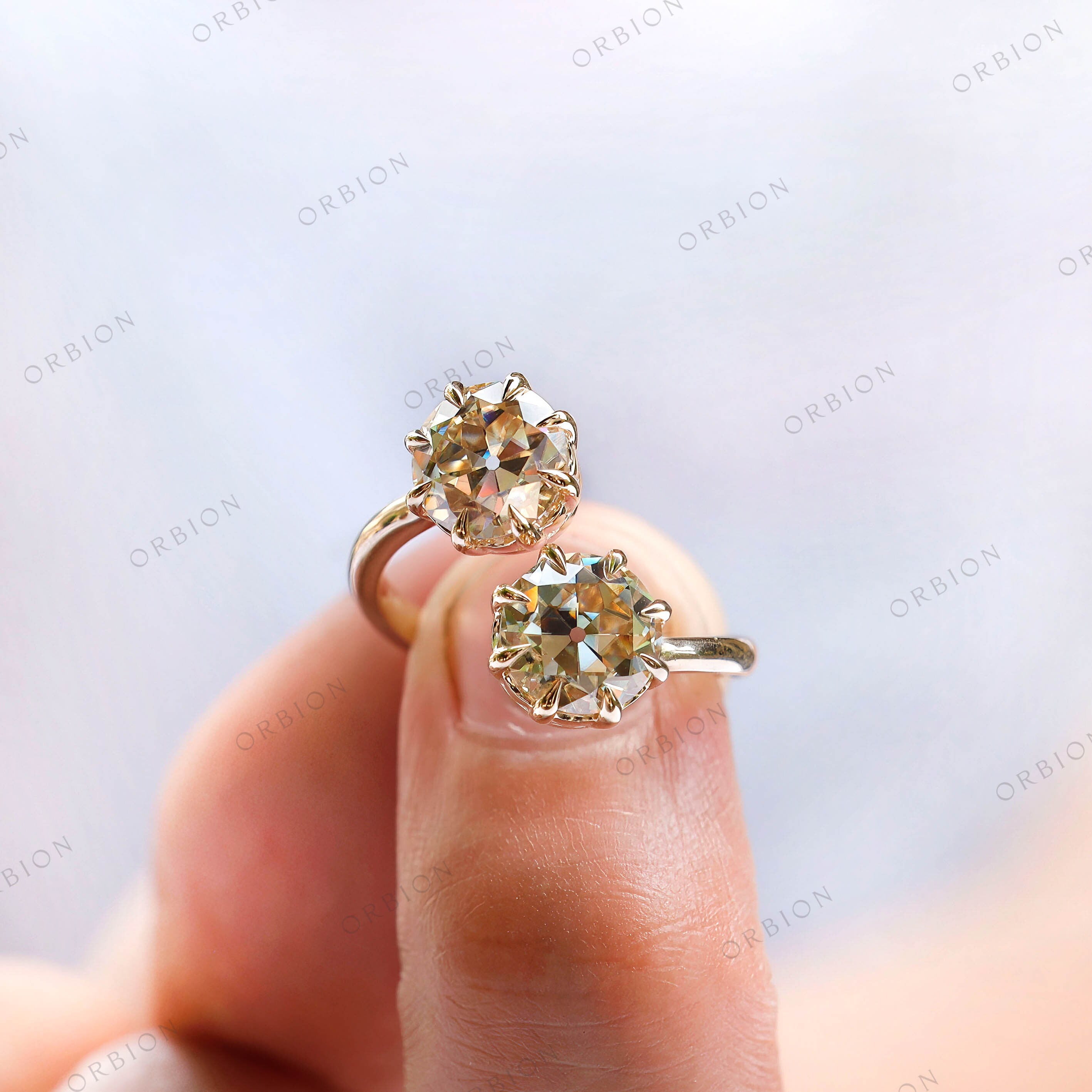 Round OEC Champagne Moissanite Toi Et Moi Ring, Made For Each Other, Unique Claw Prong Georgian Ring, Champagne Ring Gold, Old European Cut Moissanite Engagement Ring For Her, Edwardian Ring, Vintage Style Ring, Antique Cut Ring, Old Cut Ring, Fancy Color Moissanite Ring, 10k/14k/18k Solid Gold Ring, Toi et Moi Open Ring, Hand Made Ring, Two Stone Ring, Double Stone Ring