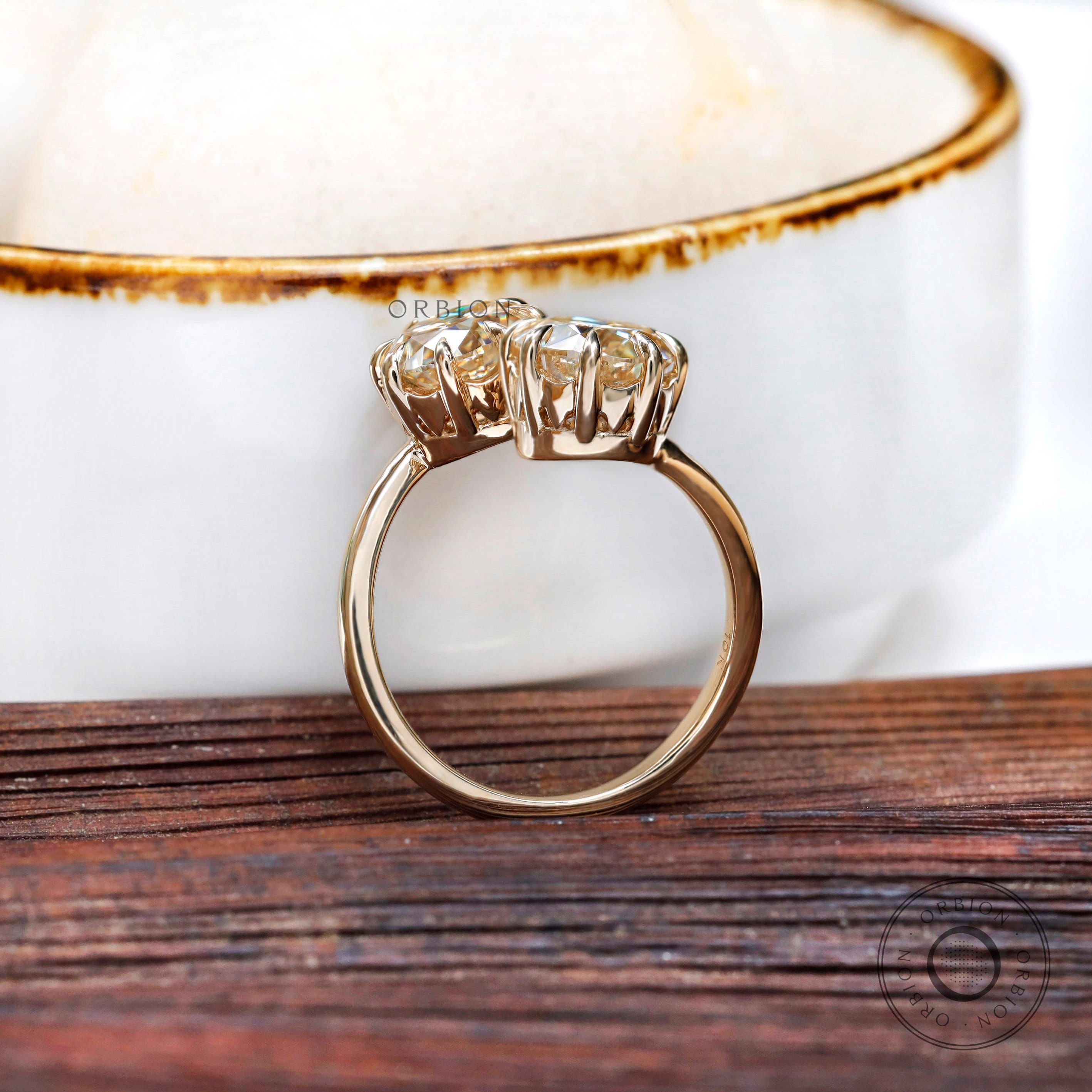 Two Stone Engagement Ring, Champagne Moissanite Ring, OEC Moissanite Ring, Toi Et Moi Ring, Georgian Ring, Double Stone Ring, Gold Rings