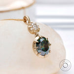 14K Solid Gold Dark Green Old Cut Oval Moissanite Pendant, Vintage Style Claw Prong Two Stone Pendant, Bezel Set Cushion Cut Pendant, Satin Matte Finish Edwardian Pendent, Solitaire Pendant, Georgian Pendant, Classic Pendant, Victorian Style Pendant, Custom Pendant, OMC Moissanite Pendant, Promise Gift For Her, Teal Green Oval Pendant, Anniversary Gift