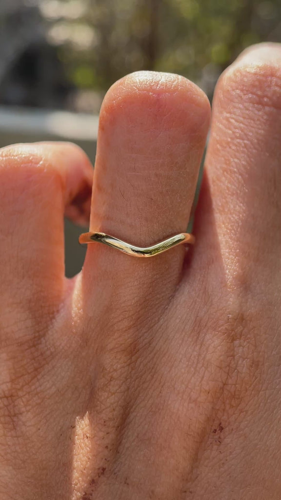 Unique curved wedding band solid gold minimalist ring pure gold wedding ring matching band stacking ring wedding band gift for her