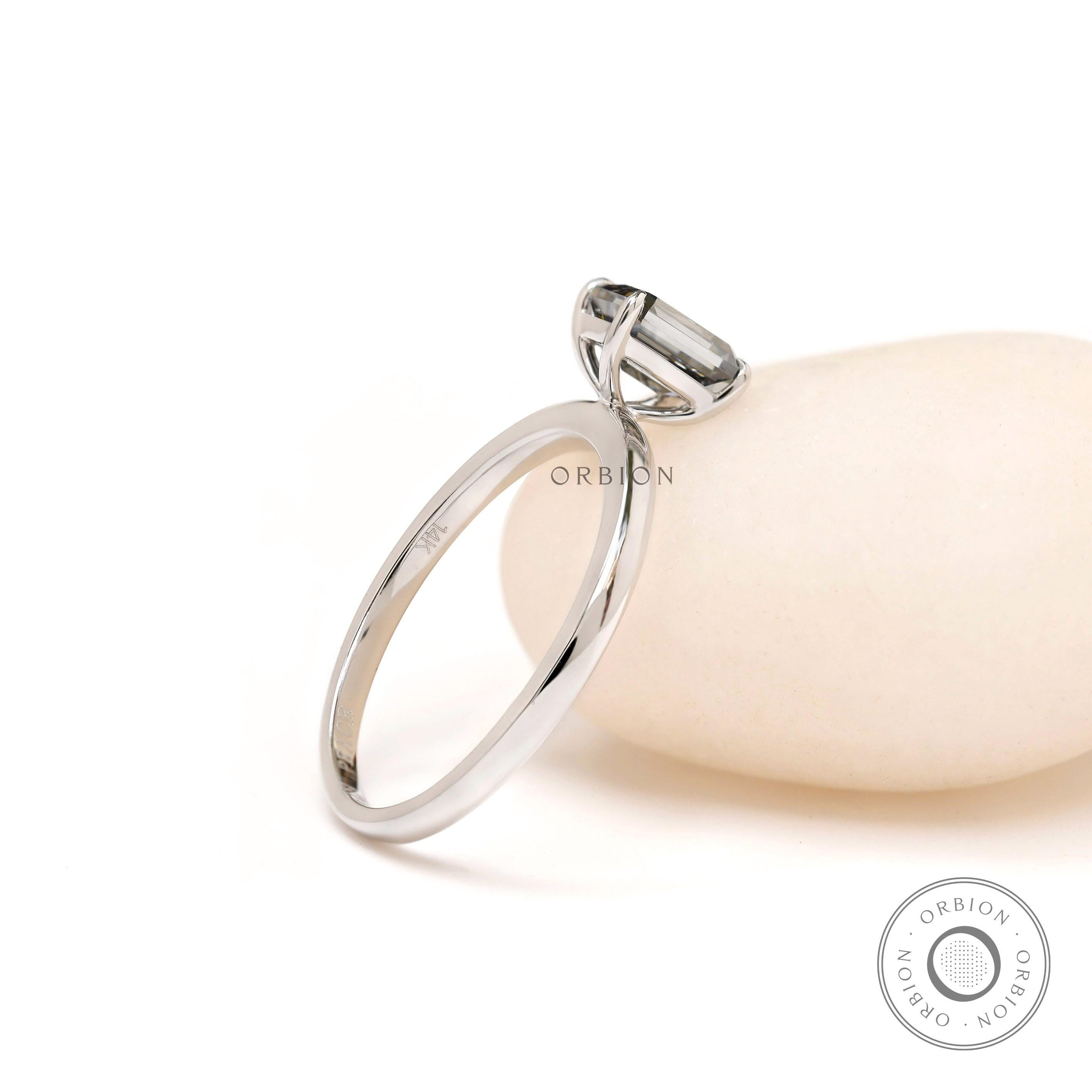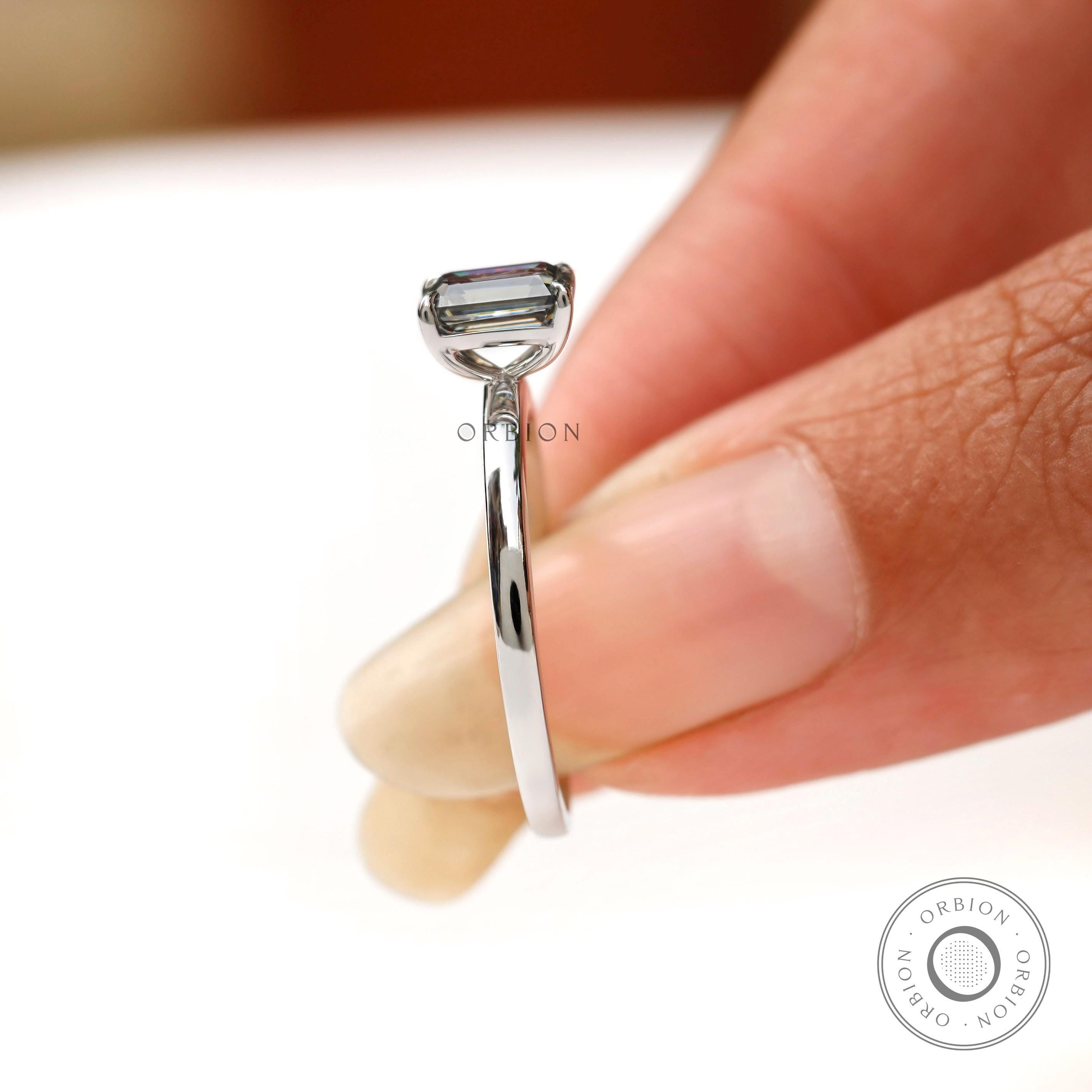 Dainty Emerald Cut Grey Moissanite Ring, Grey Stone Ring, Grey Stone Minimalist Ring, Delicate Moissanite Ring, 10k/14k/18k White Gold Ring, Fancy Color Stone Ring, Claw Prong Set Ring, Step Cut Engagement Ring, Promise Ring, Proposal Ring, Anniversary Gift, Delicate Ring For Young Girl, 1 Year Anniversary Gift, Gift For Wife, Gift For Mom.