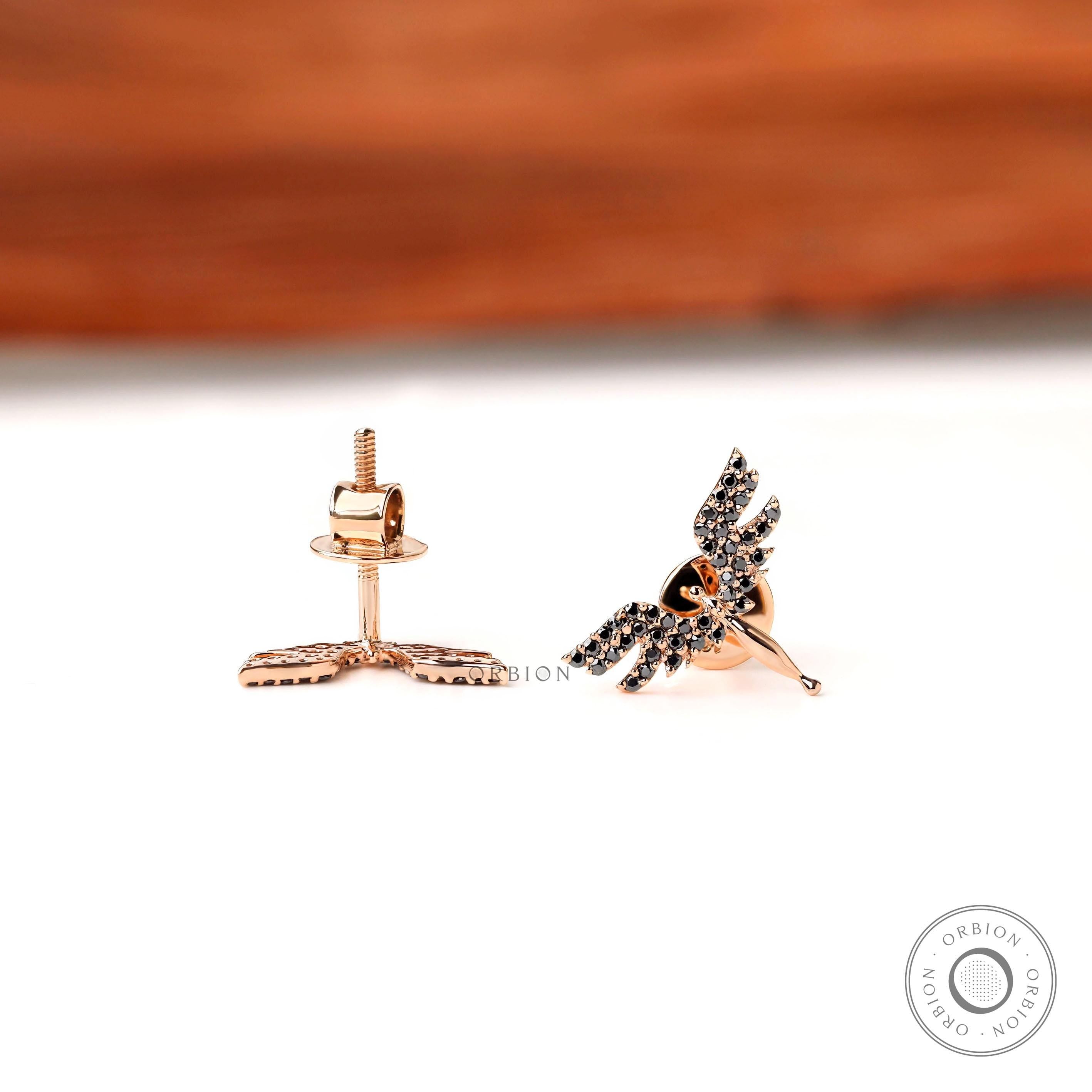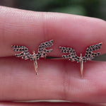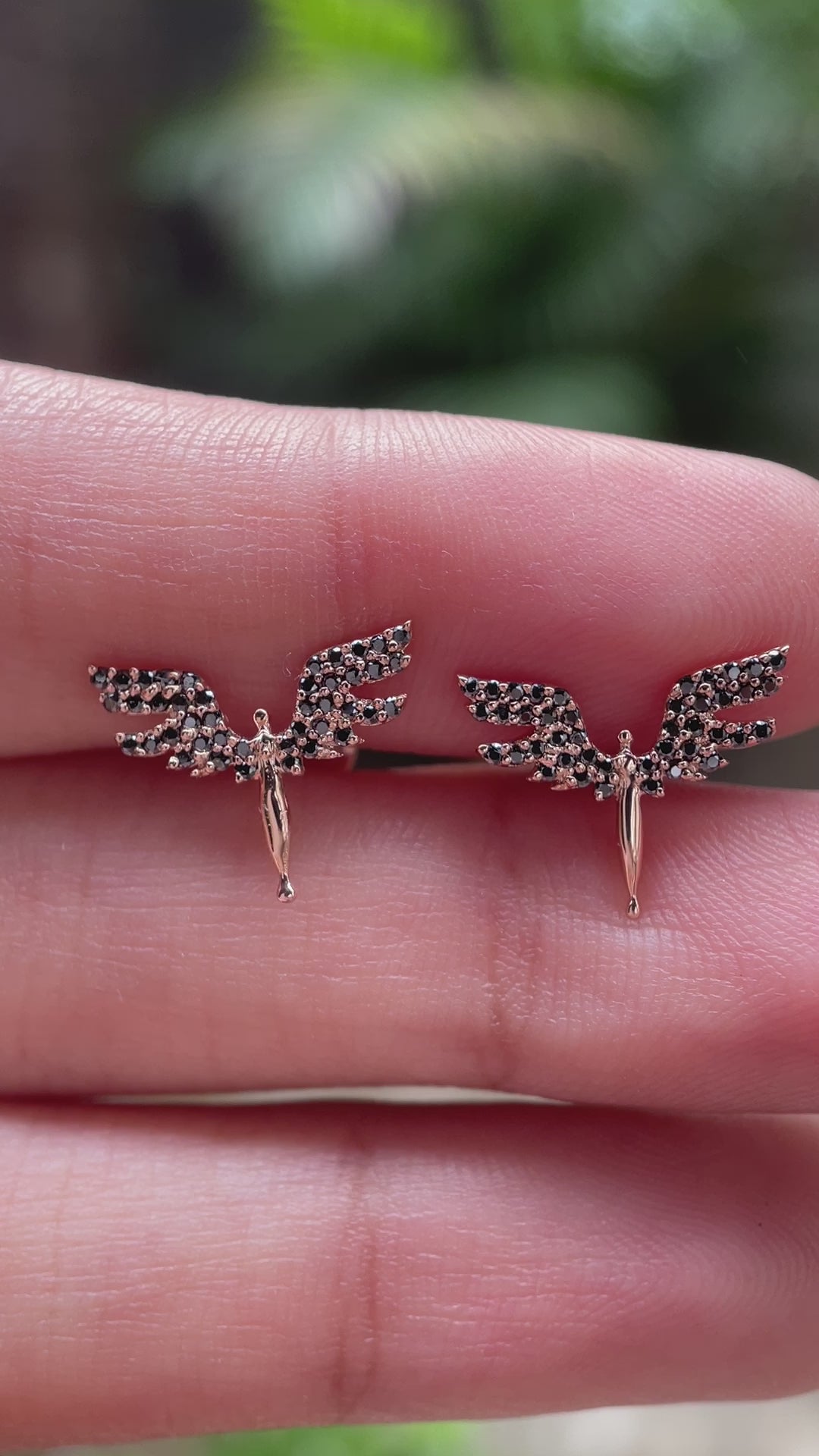 Valkyrie Stud Earrings, Flying Guardian Angel Earrings, Black Moissanite Earrings, Solid Gold Dainty Earrings, Earrings For Young Girl