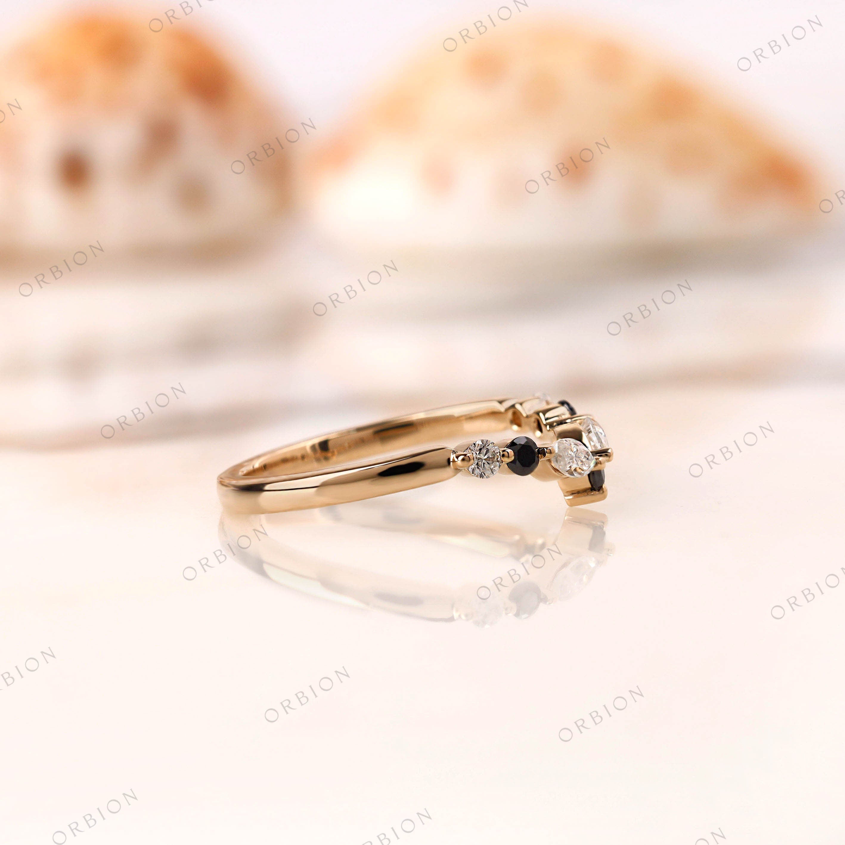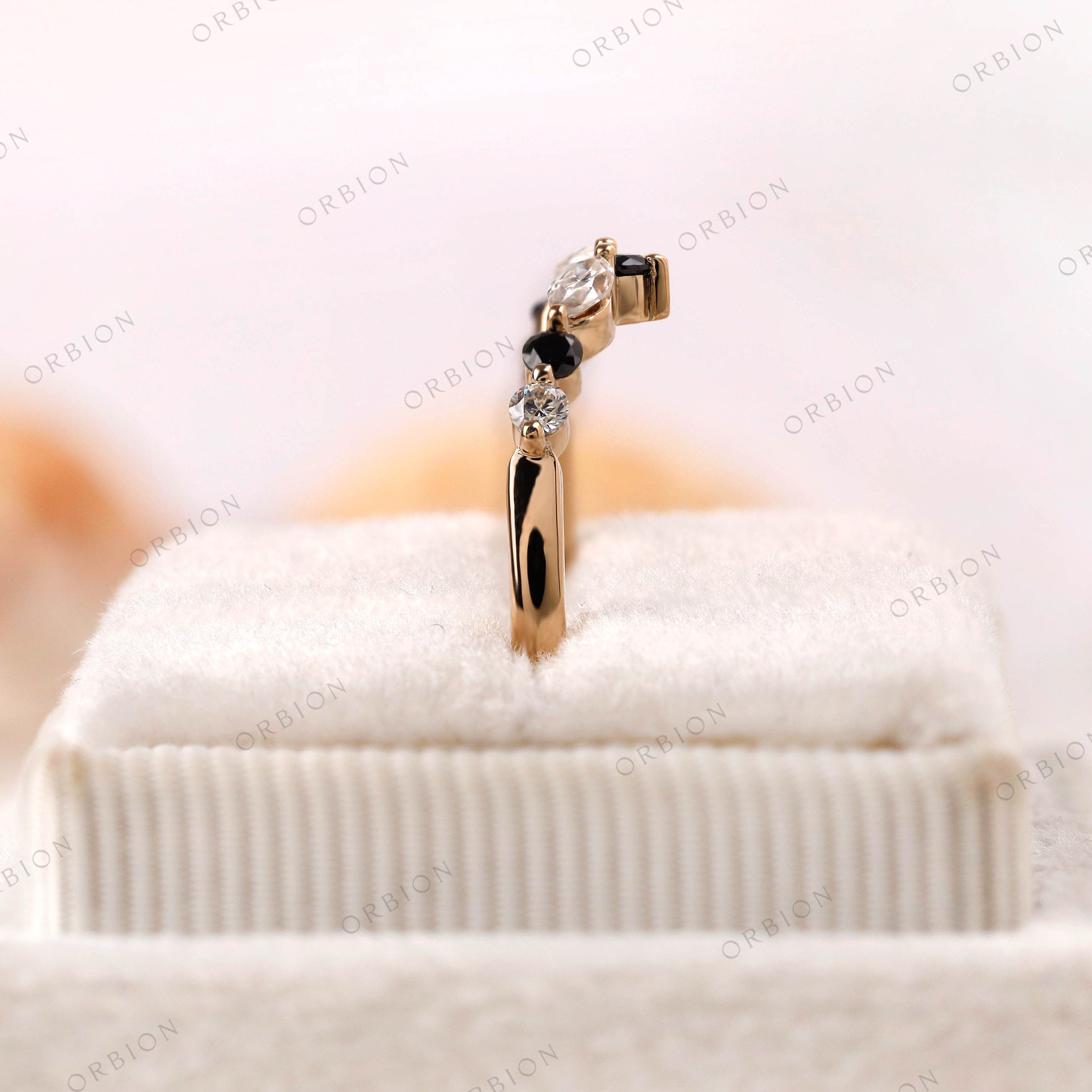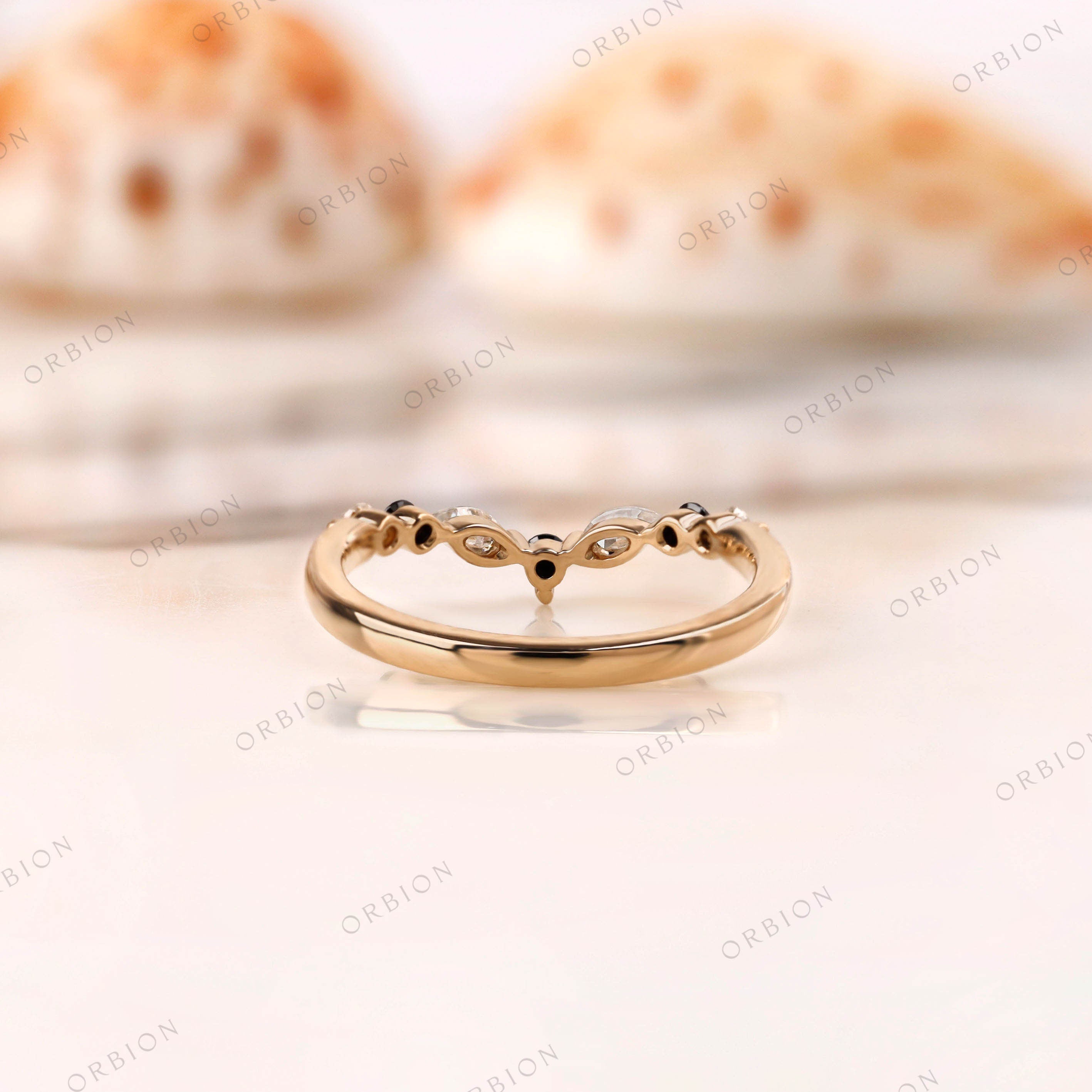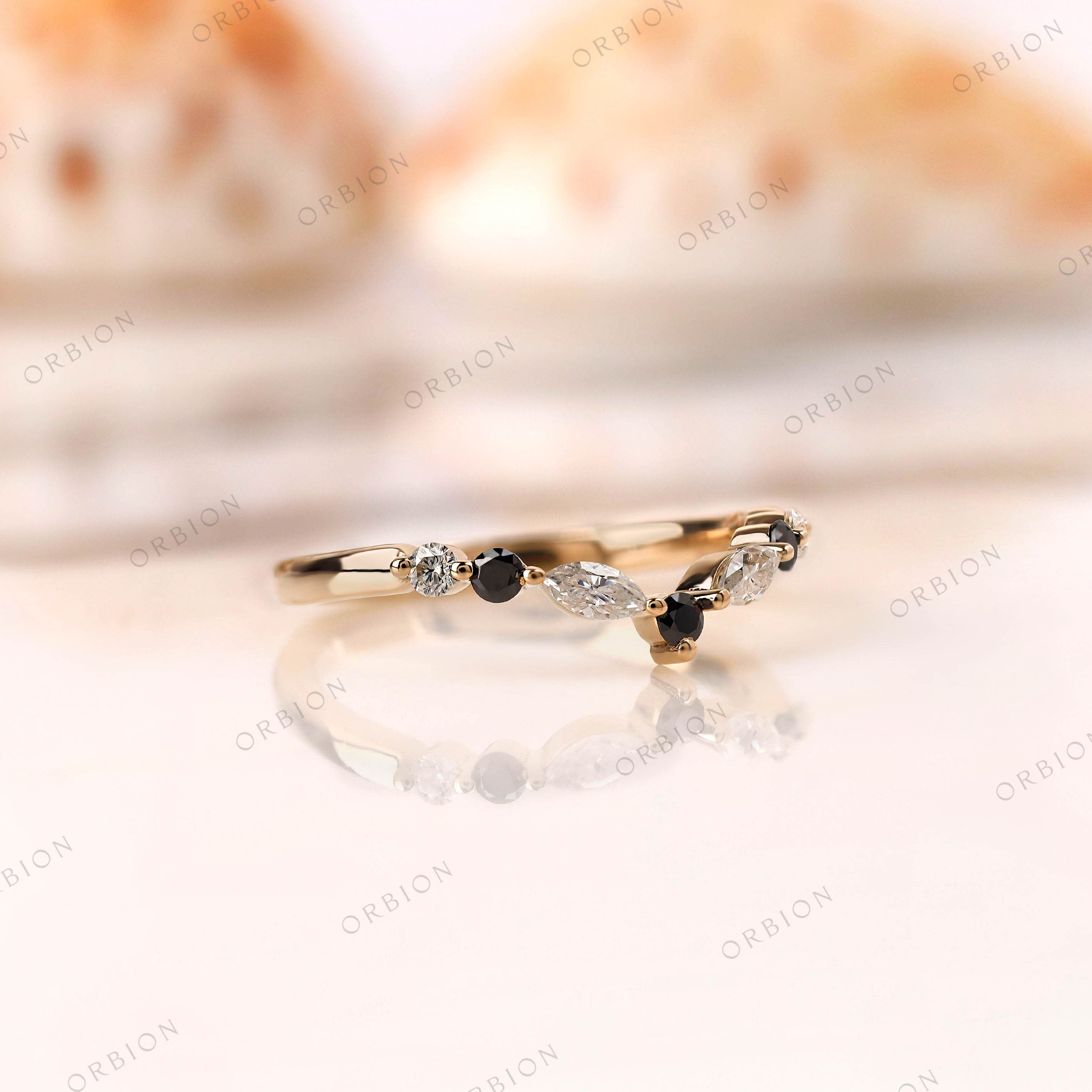0.32 TW Black And Colorless Round & Marquis Cut Moissanite Wedding Band, Chevron Matching Band, Curved Stacking Ring, Custom Band For Bridal Ring Set, Moissanite Band, Fine Jewelry, Comfortable Band, Gift For Her, Gold Wedding Band, Unique Anniversary Band.