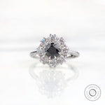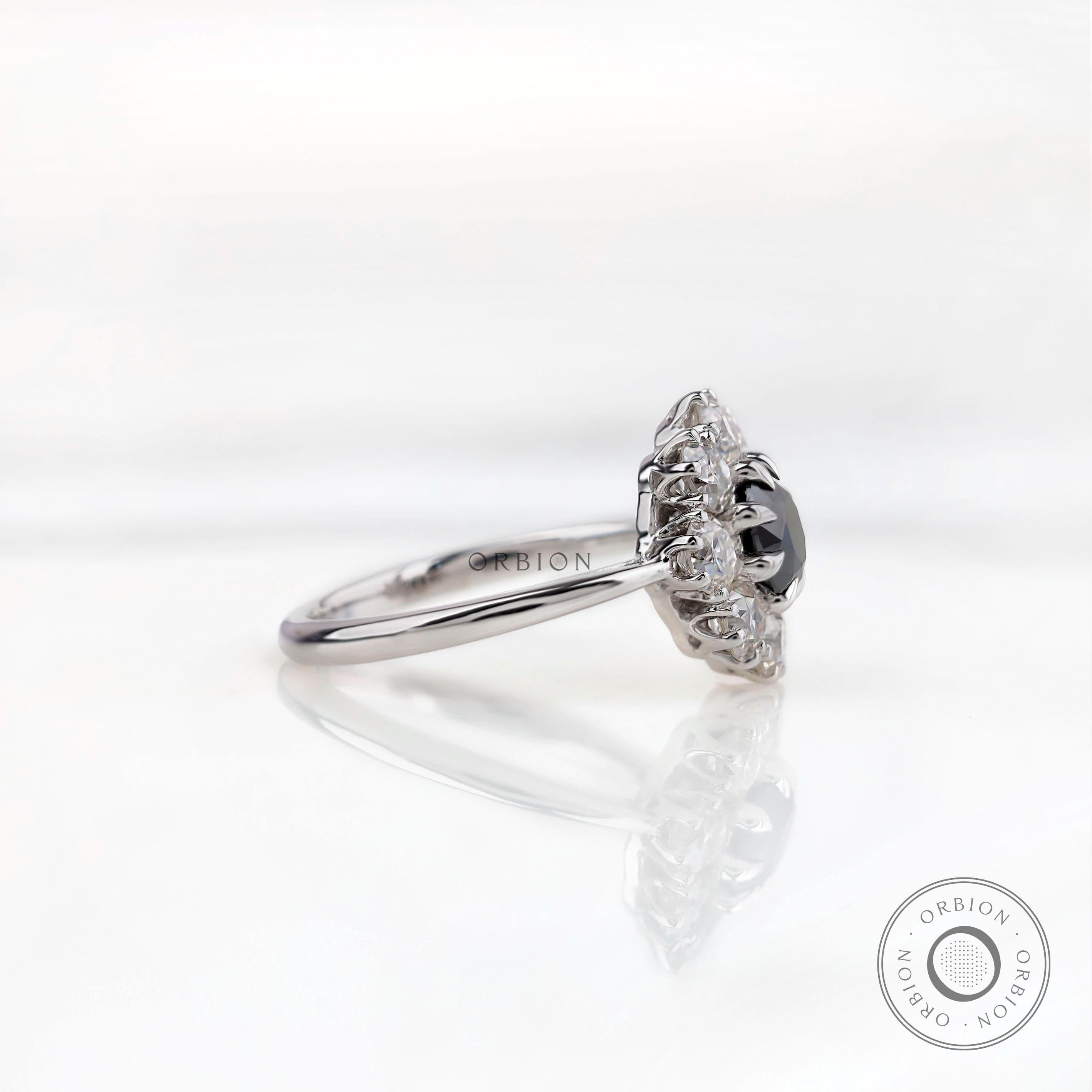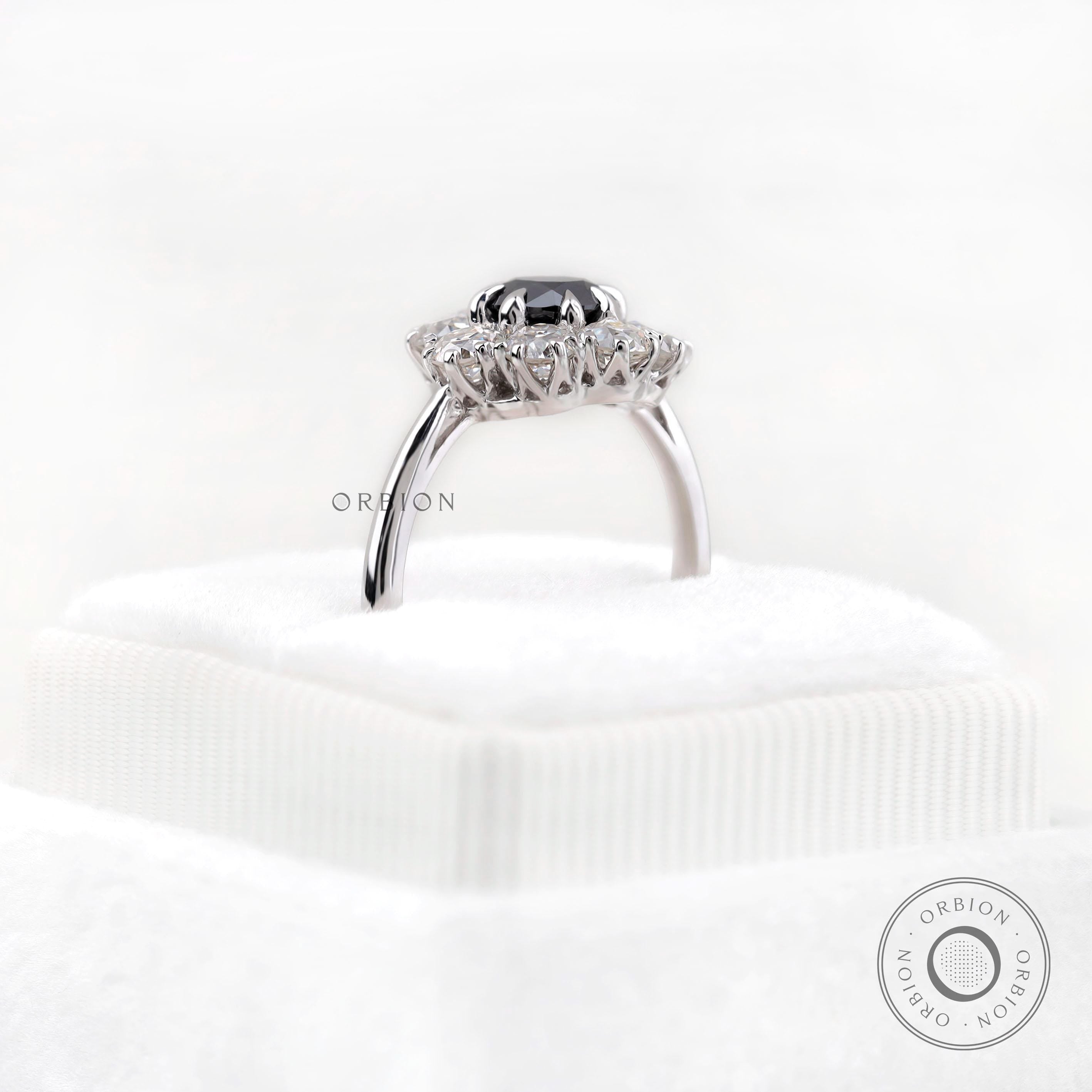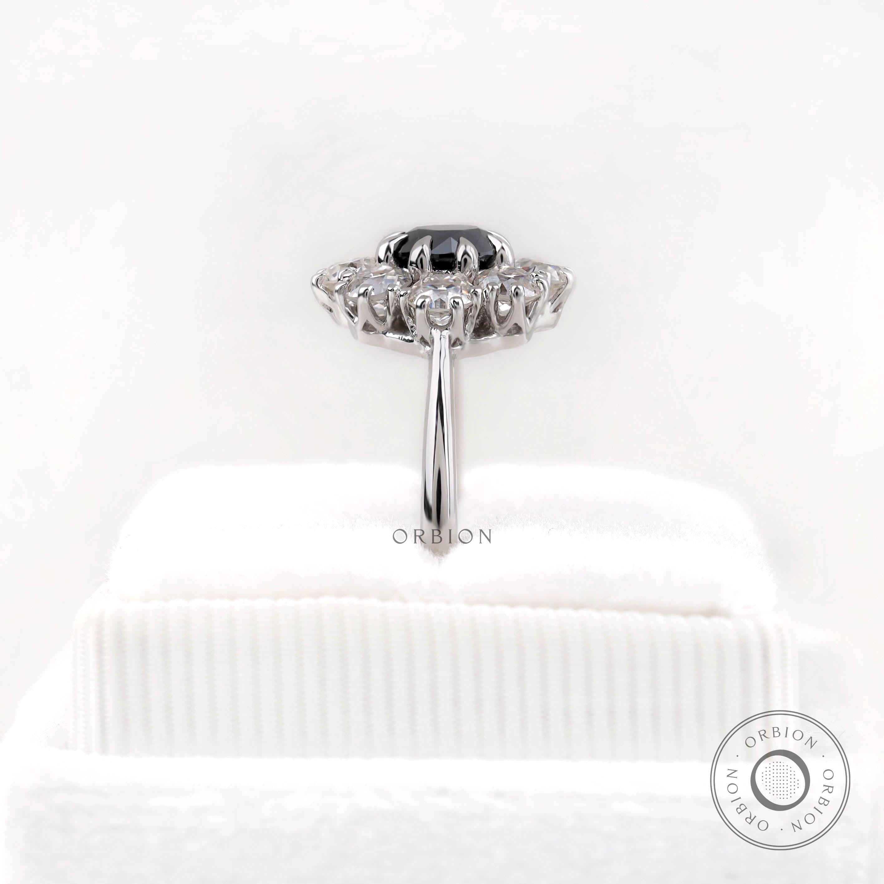 Vintage Black Moissanite Cluster Ring - Art Deco Style in 14K White Gold, 5.5MM Old European Cut, Unique Halo Engagement Ring, Promise Ring