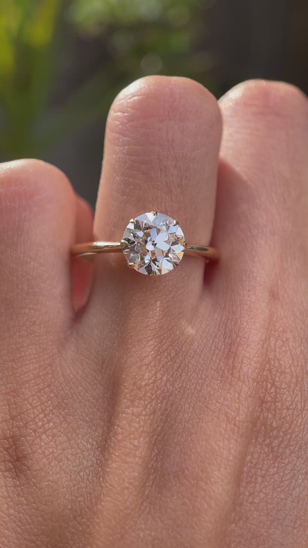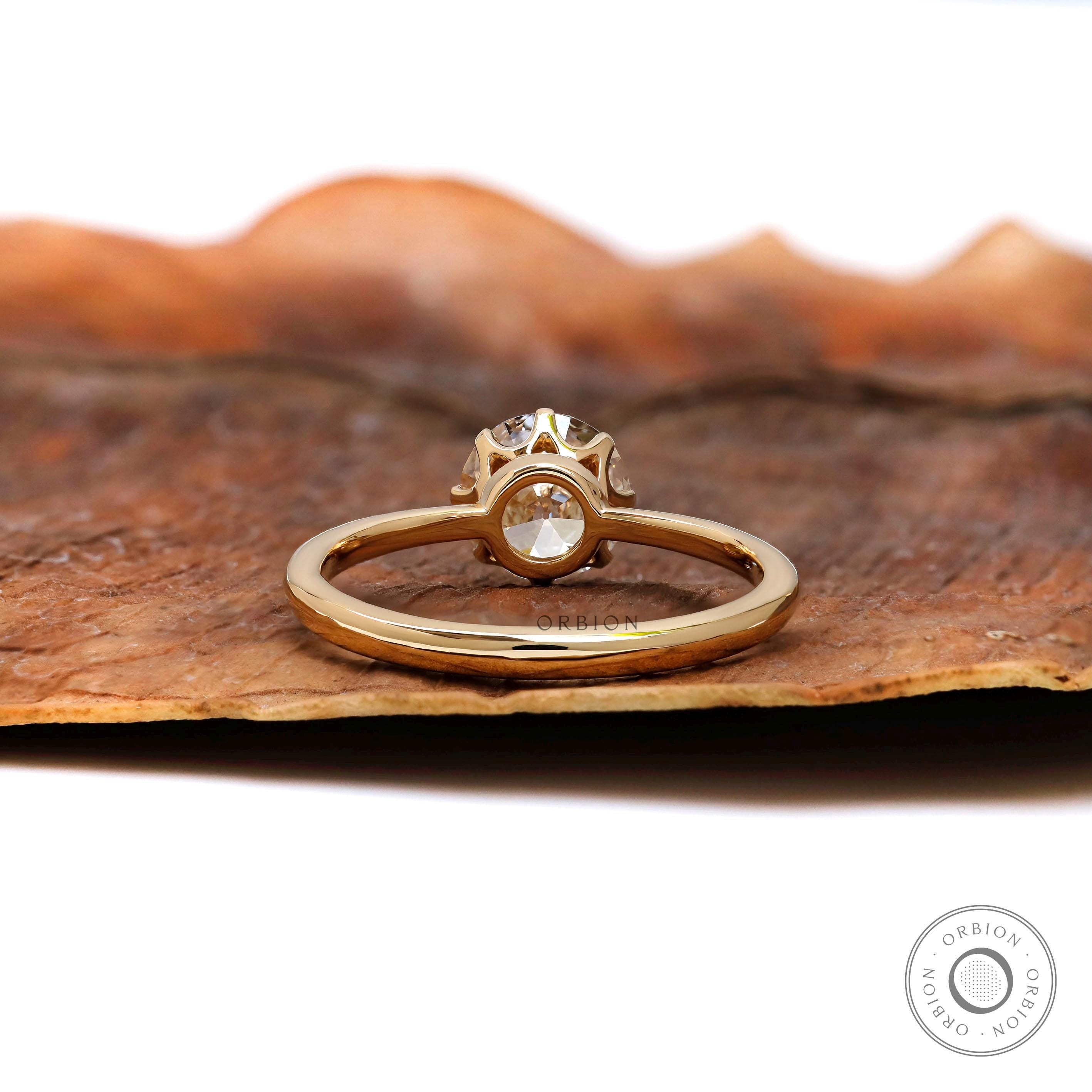 Vintage Elegance 2 Carat Round OEC Lab Grown Diamond/Moissanite Ring, Yellow Gold 8 Prong Solitaire Engagement Ring, Moissanite Vintage Ring