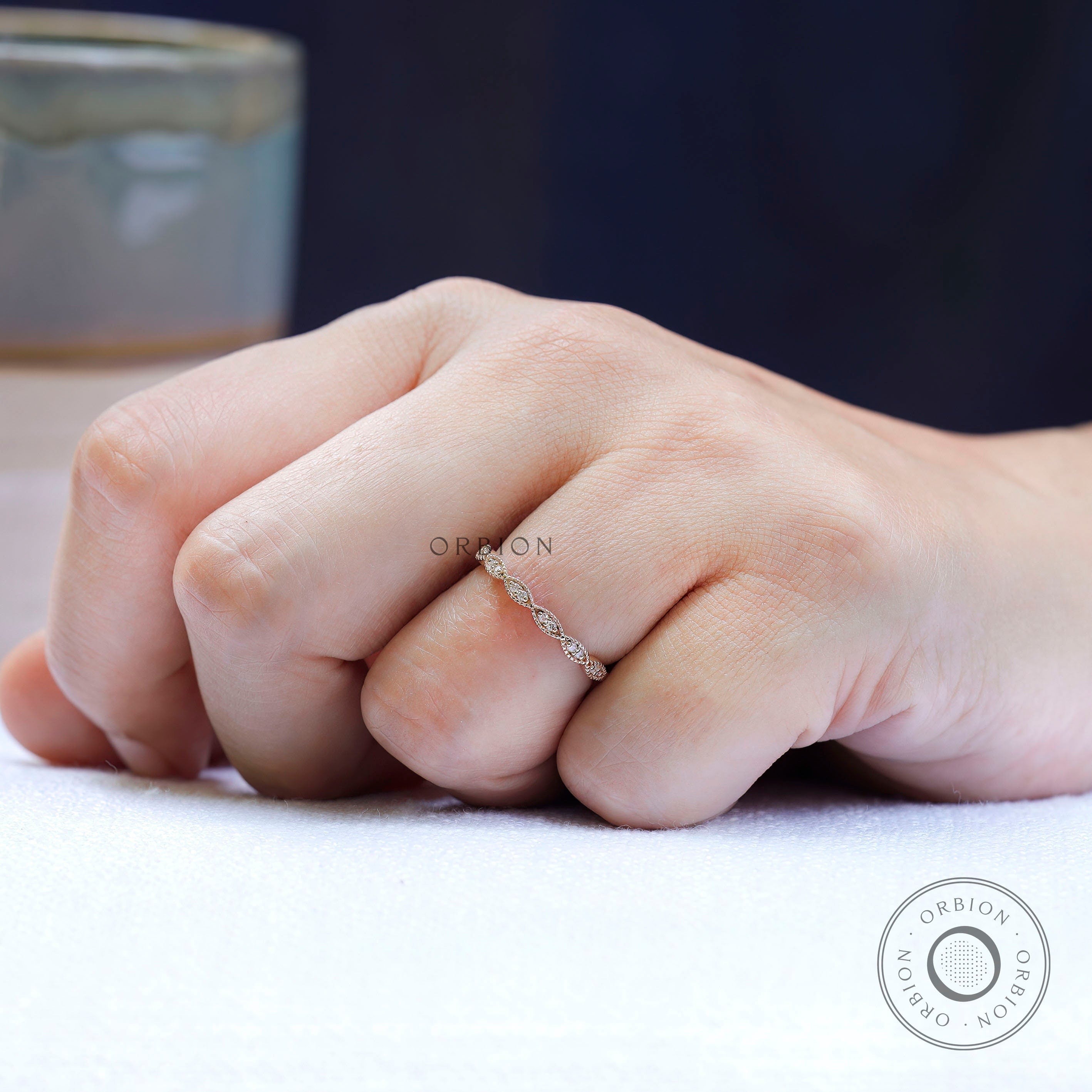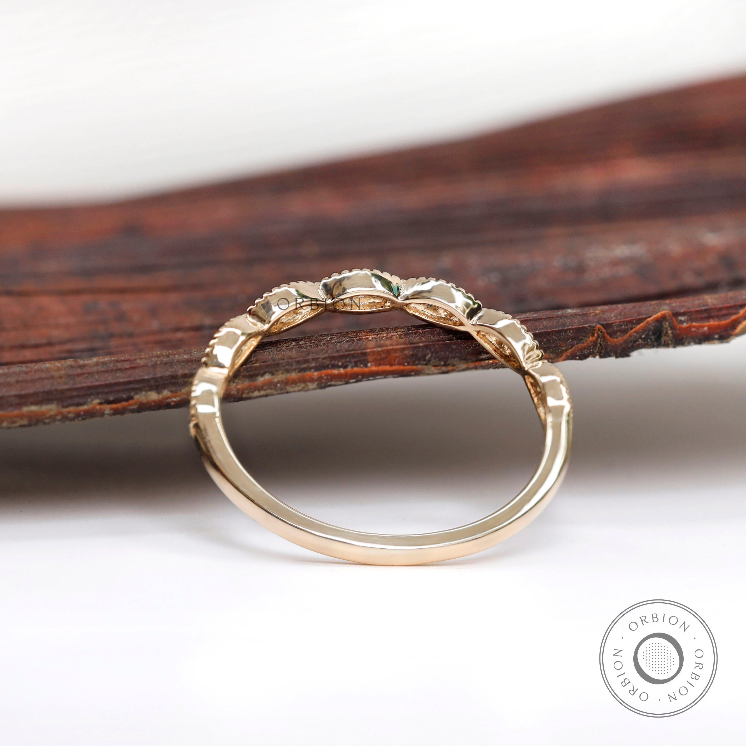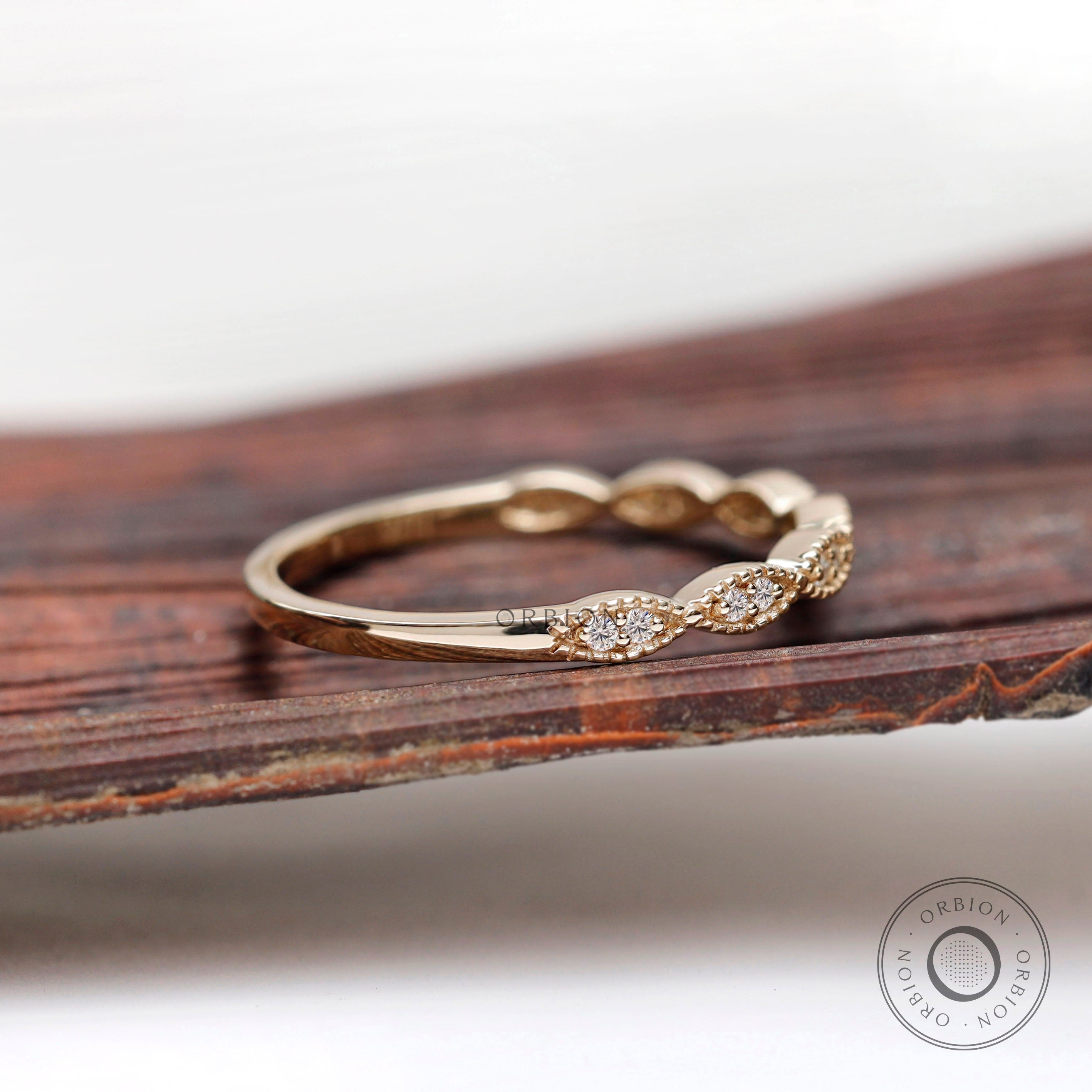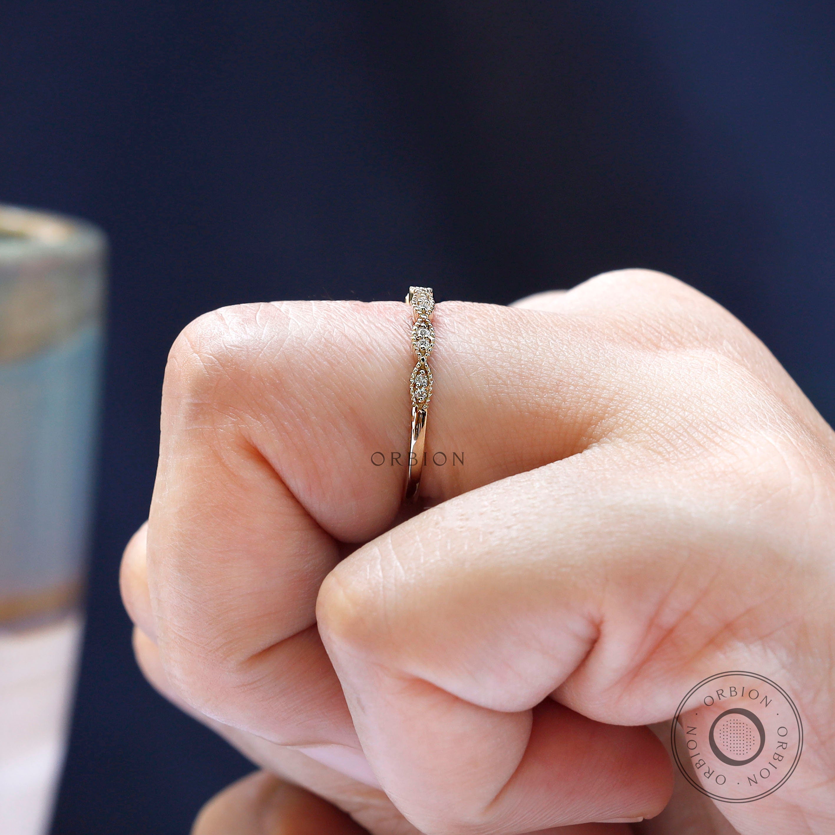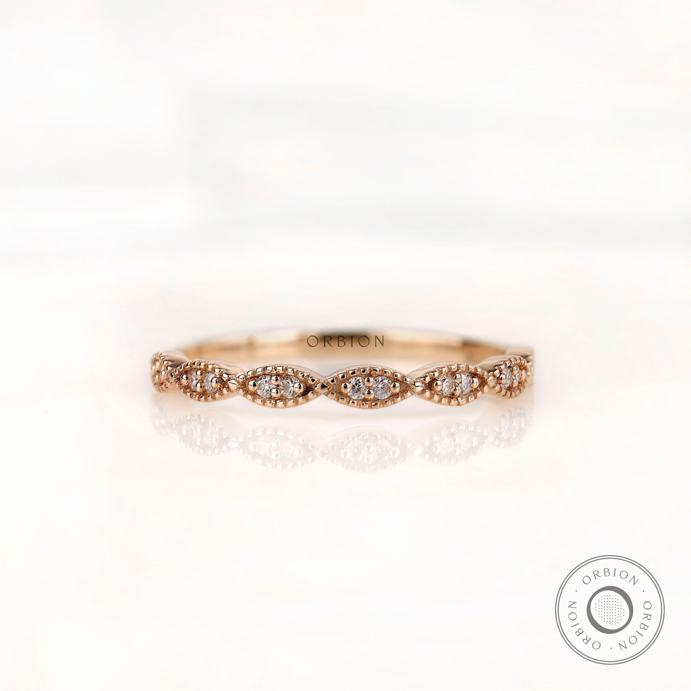 14K Gold Moissanite Wedding Band, Marquise Shaped Art Deco Milgrain Wedding Band, Dainty Half Eternity Stacking Band, Vintage Wedding Band, Solid Gold Band, Thin Gold Band, Unique Band, Delicate Wedding Band, Minimalist Band, Lab Diamond Band
