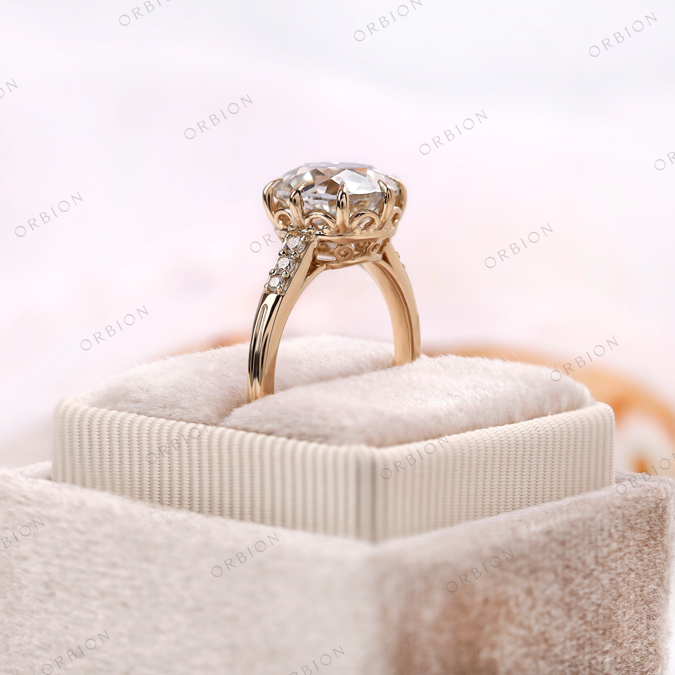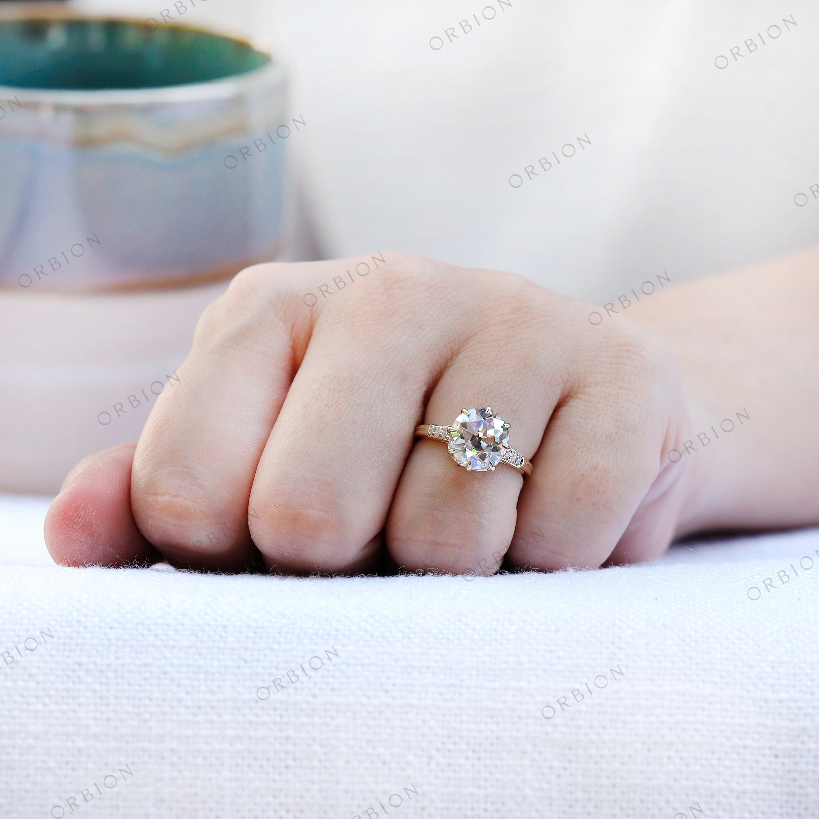 Vintage inspired Old European Cut Round Shape Moissanite Engagement Ring 18K Yellow Gold Wedding Ring Anniversary Promise Gift Ring For Her
