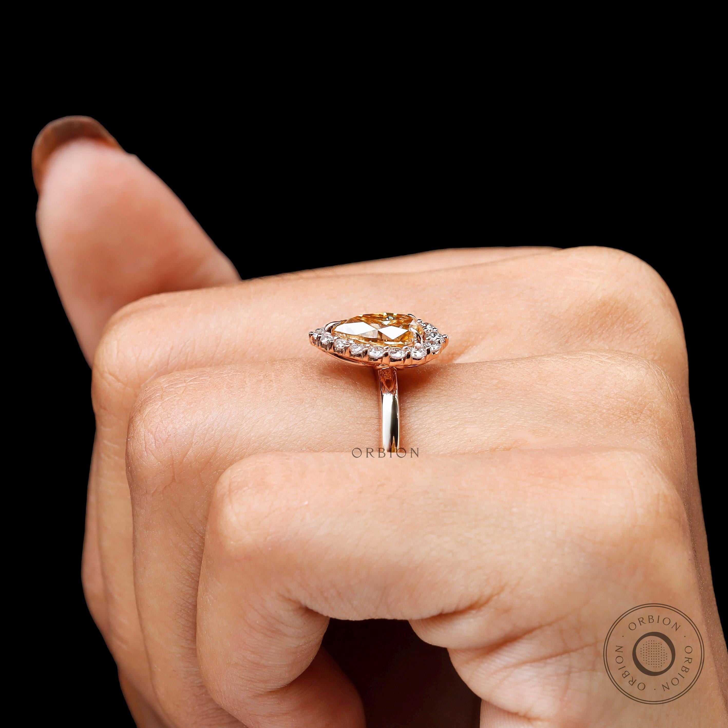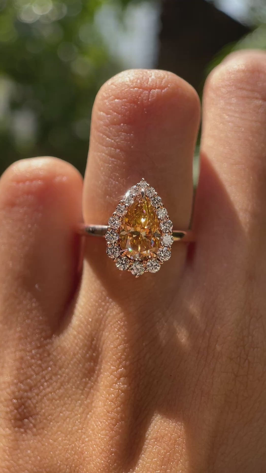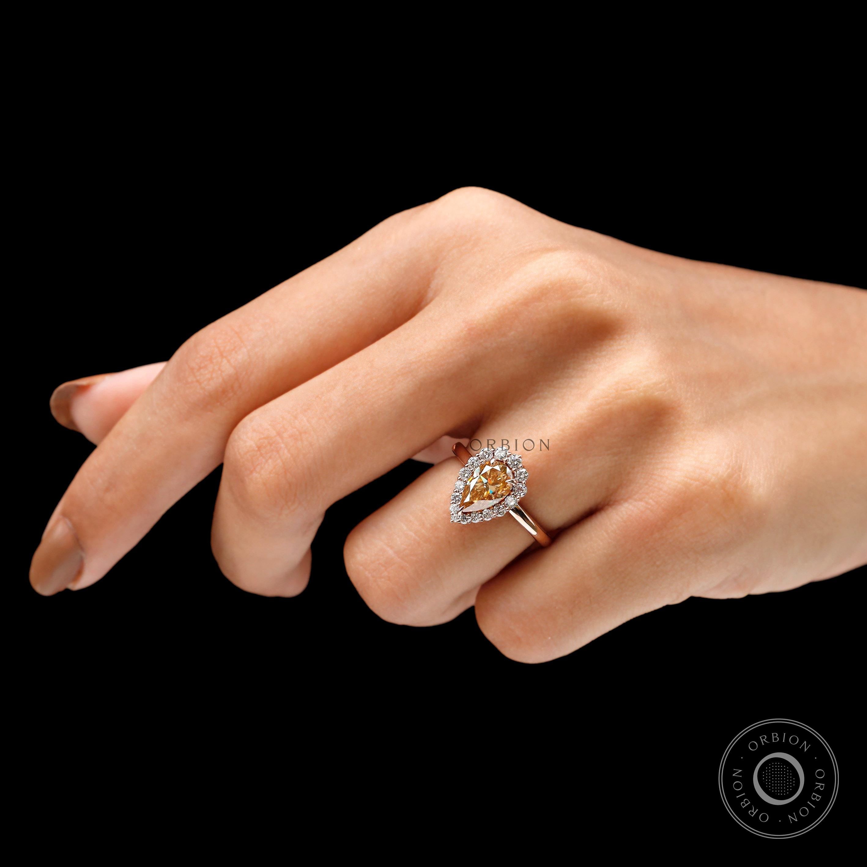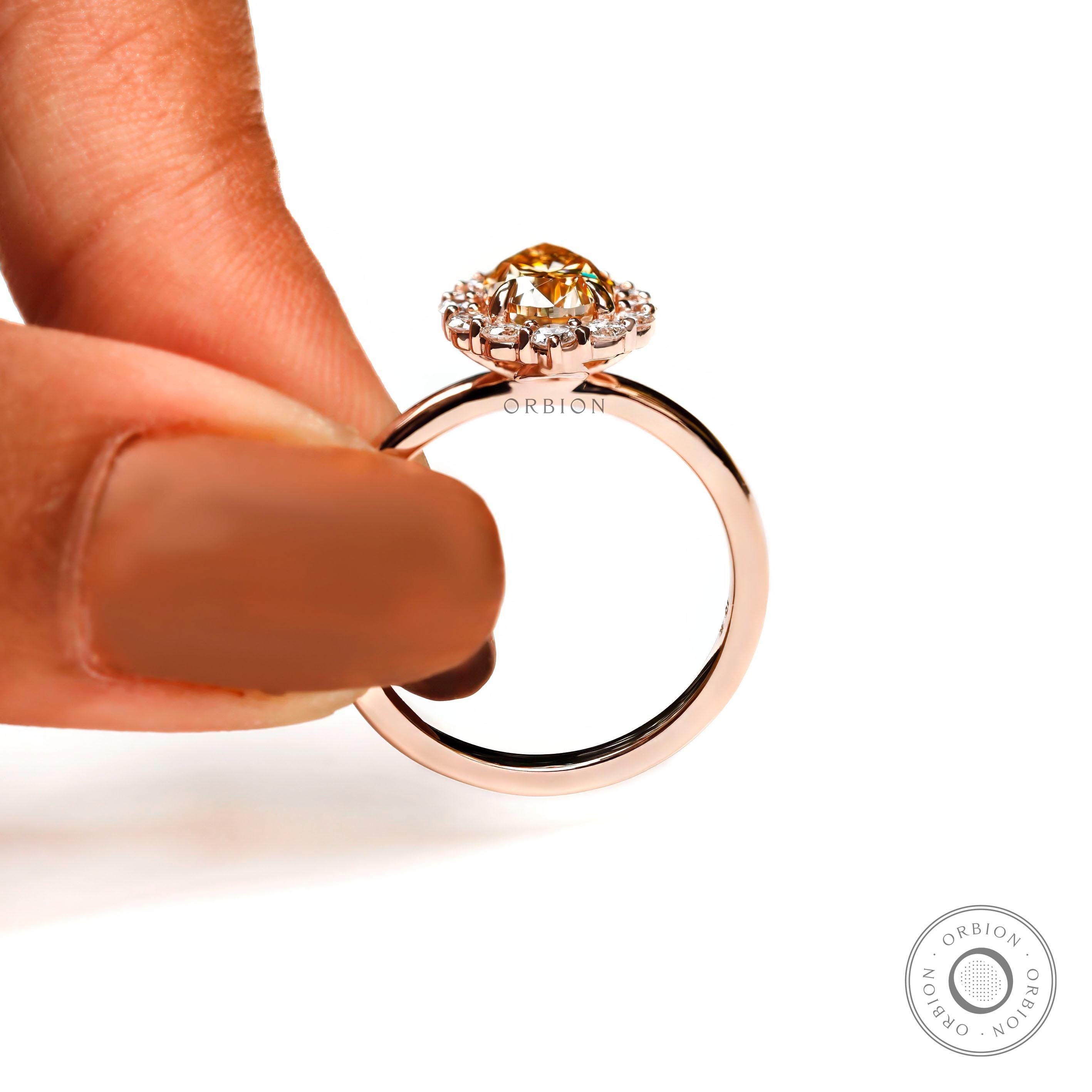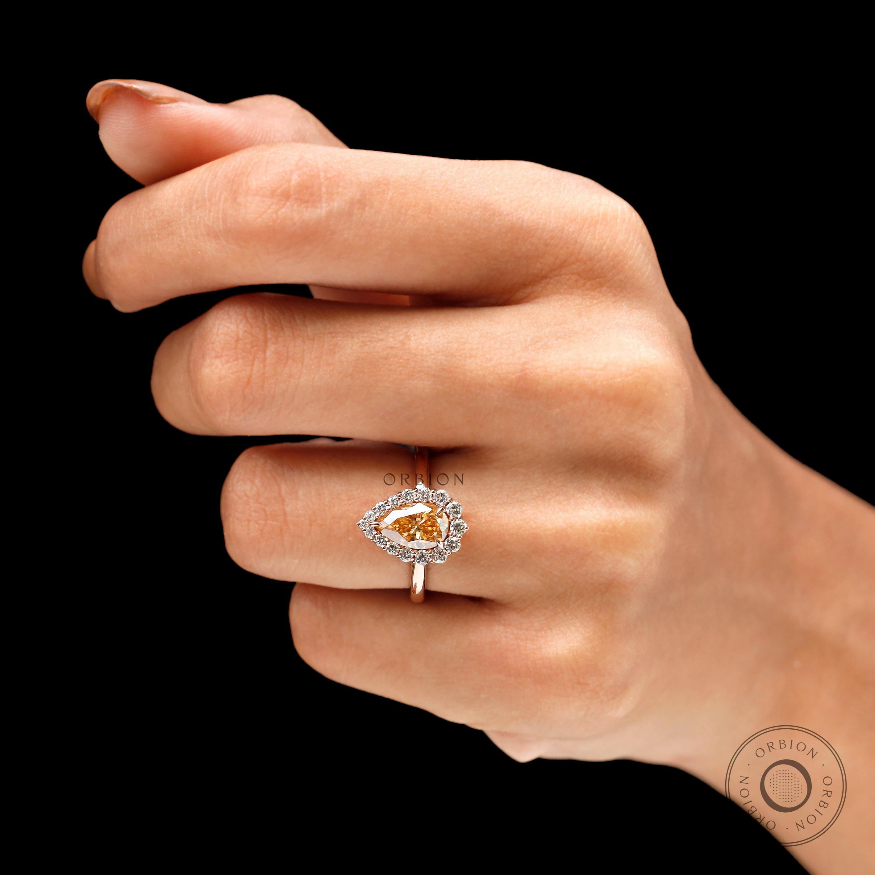 Pear Cut Brownish Champagne Moissanite Ring, Champagne Engagement Ring, Halo Wedding Ring, 10k/14k/18k Solid Rose Gold Ring, Unique Bridal Ring, Gemstone Anniversary Ring, Brown Moissanite Ring, Women Statement Ring, Teardrop Ring For Her, Anniversary Gift, Gift For Her