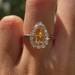 Pear Brownish Champagne Moissanite Halo Engagement Ring Unique Color Stone Wedding Ring Teardrop Bridal Ring Solid Rose Gold Promise Ring