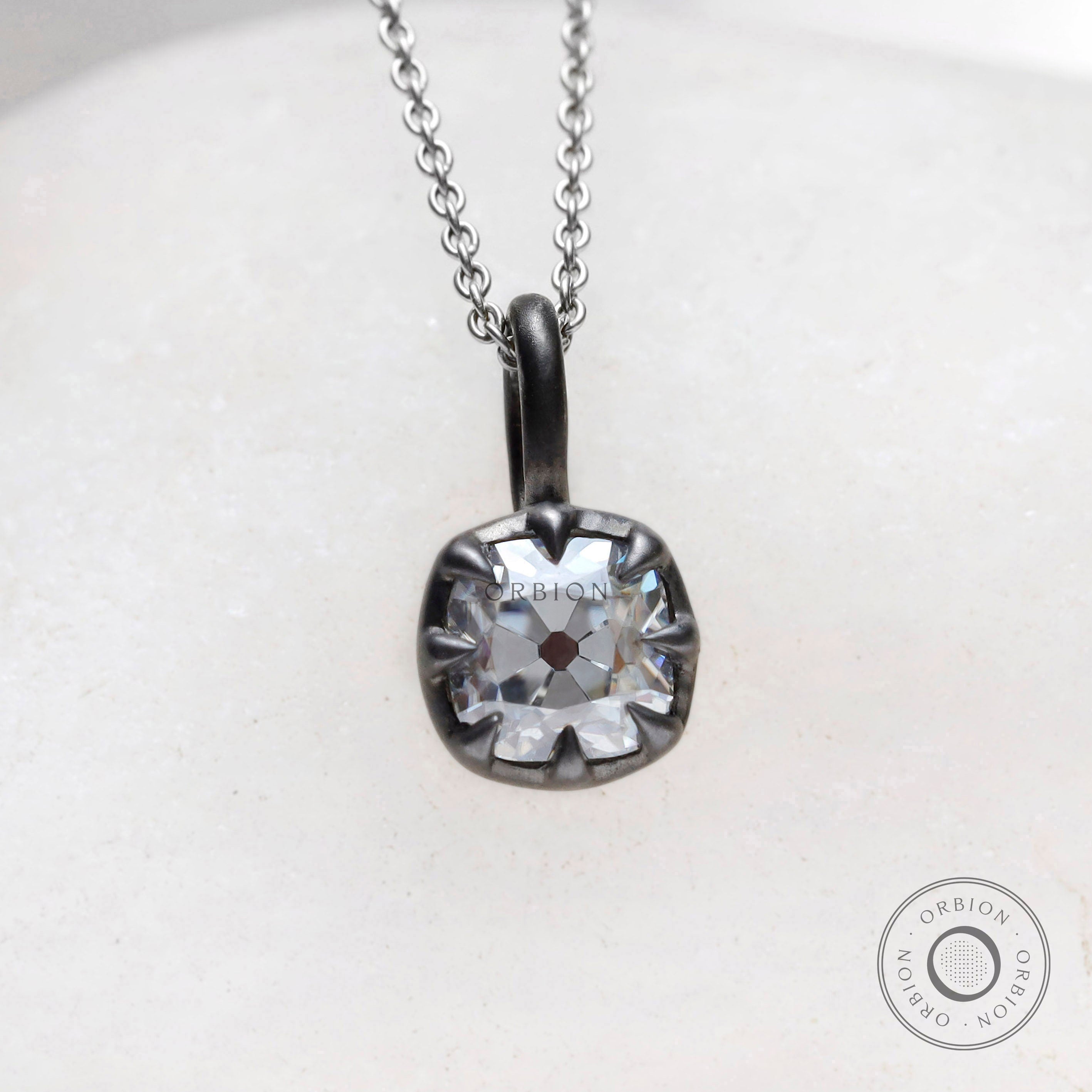 6 MM Old Mine Cushion Cut Moissanite Pendant, Vintage Oxidized Finish Edwardian Pendent, Antique Claw Prong OMC Solitaire Pendant For Women, Georgian Bezel Set Cushion Pendant, Vintage Style Pendant, 14K Gold Pendant, Classic Pendant, Victorian Style Pendant, Custom Pendant, OMC Moissanite Pendant, Promise Gift For Her
