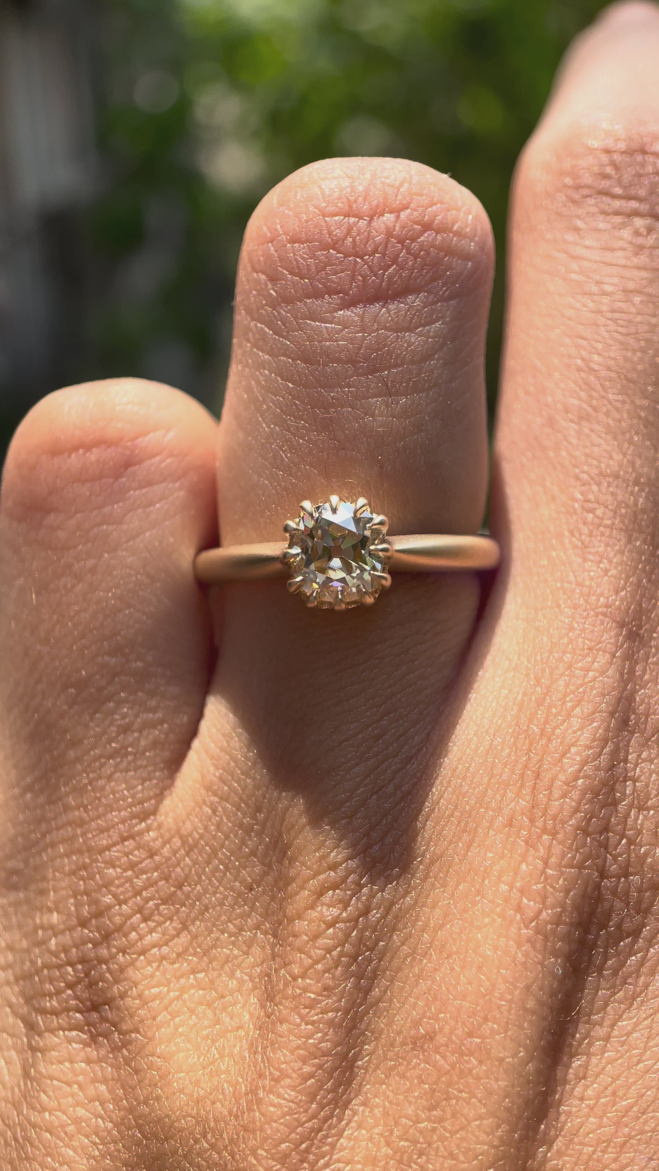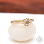 Whimsical Champagne Moissanite Ring - Vintage Inspired, Unique Matte Yellow Gold Band, Old European Cut, Dainty Antique Style